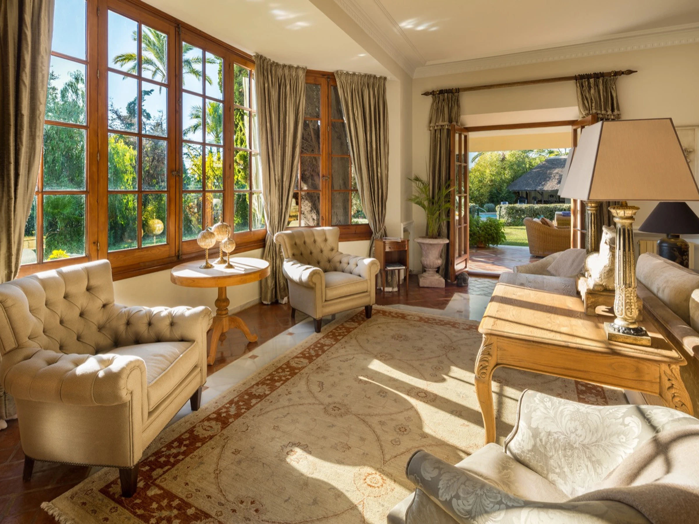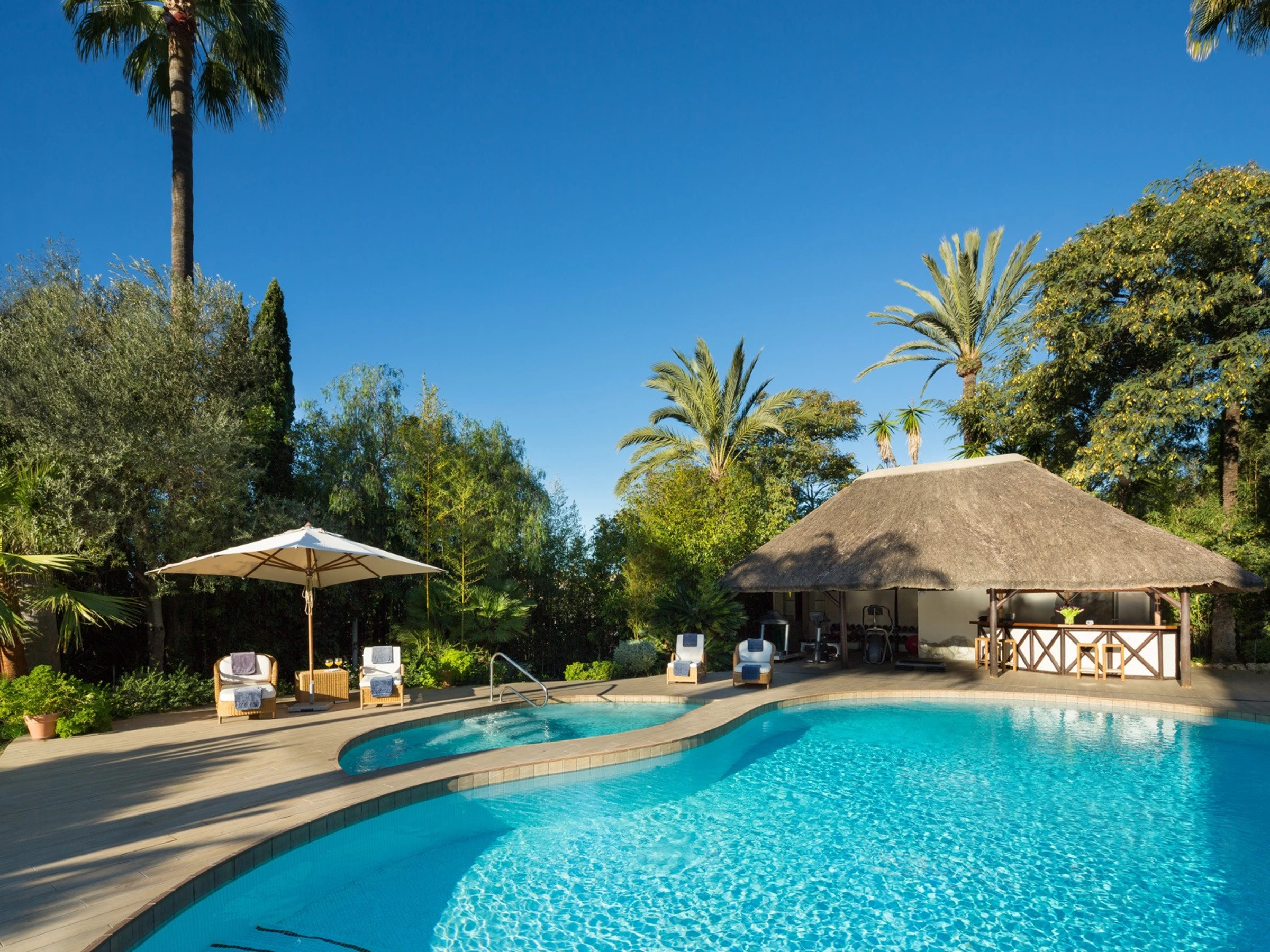 Disfruta de instalaciones exclusivas diseñadas para vivir el lujo al máximo: una piscina privada rodeada de vegetación y zonas de sombra para tus momentos de descanso, una pista de pádel exclusiva para el ocio activo y una sauna privada para relajarte a tu ritmo. Los amplios salones con chimenea y grandes ventanales permiten vistas inigualables al jardín, mientras el comedor para 15 comensales es el espacio ideal para celebraciones y reuniones memorables. Además, la cocina totalmente equipada ofrece la opción de servicio de catering personalizado para que no tengas que preocuparte por nada durante tu estancia. 🍽️🎾🔥