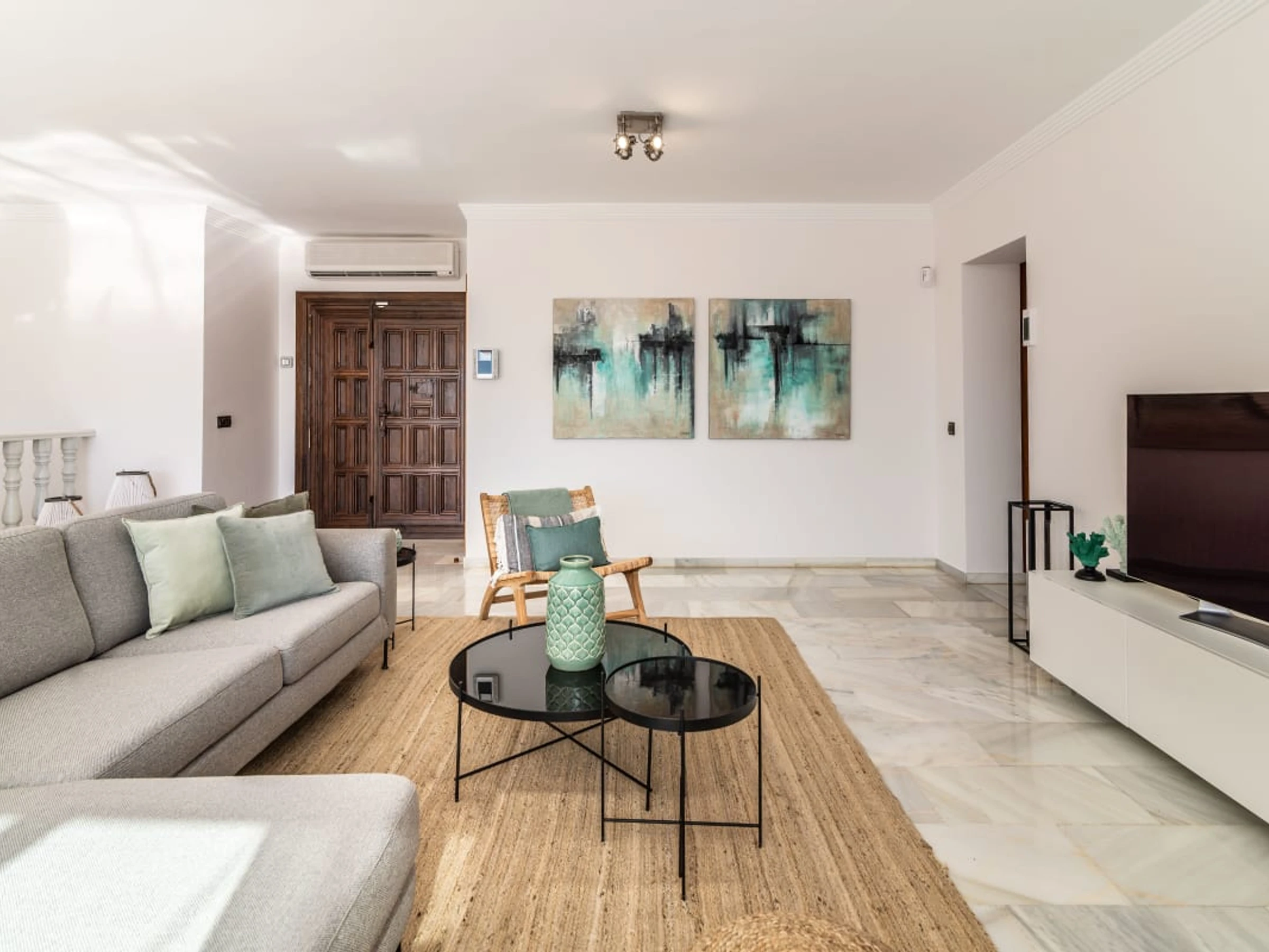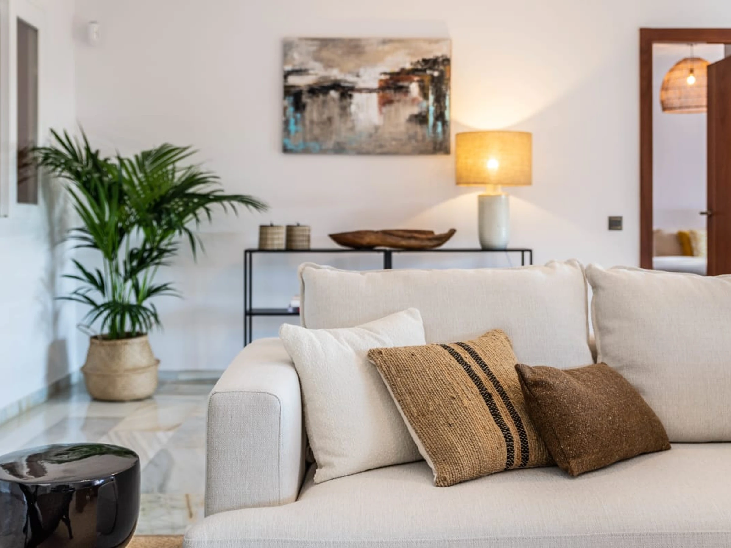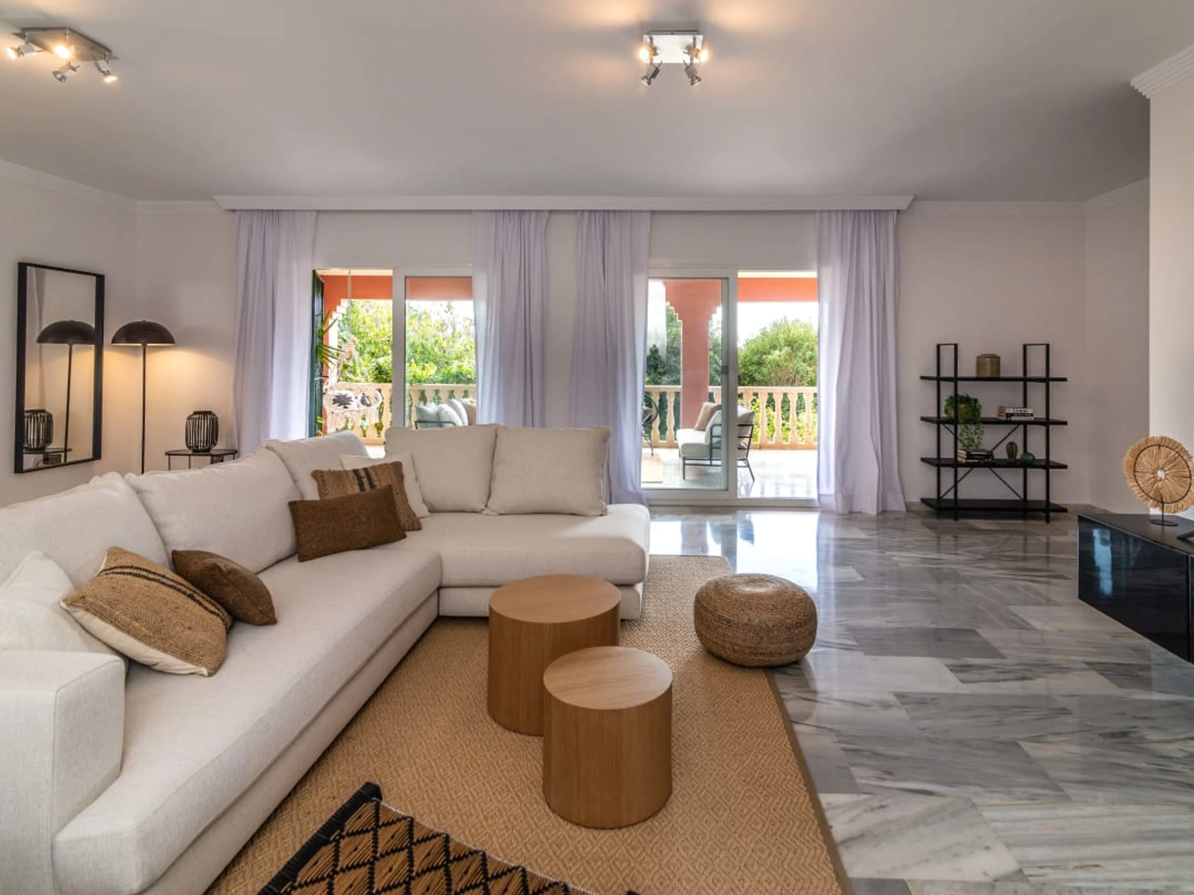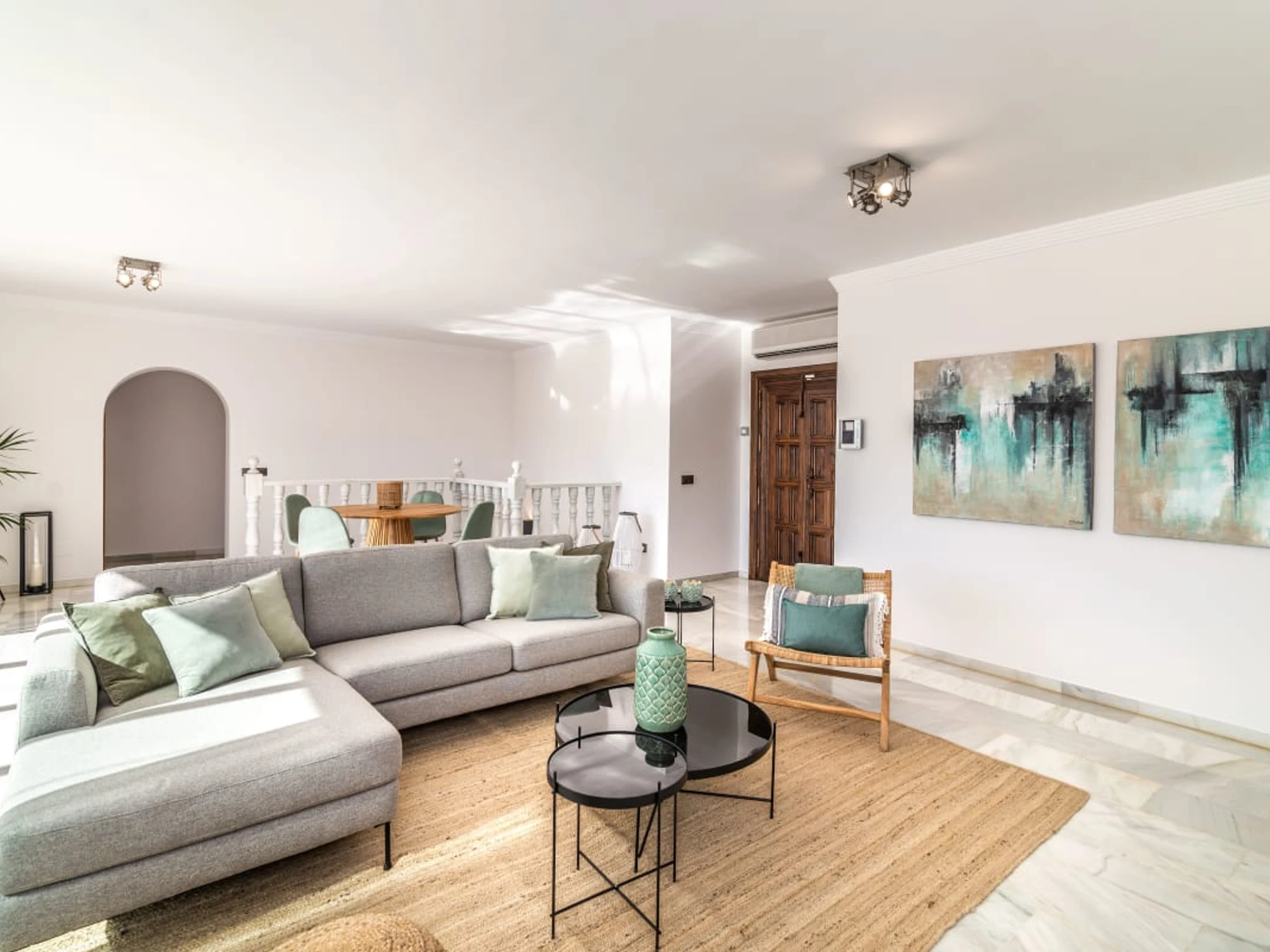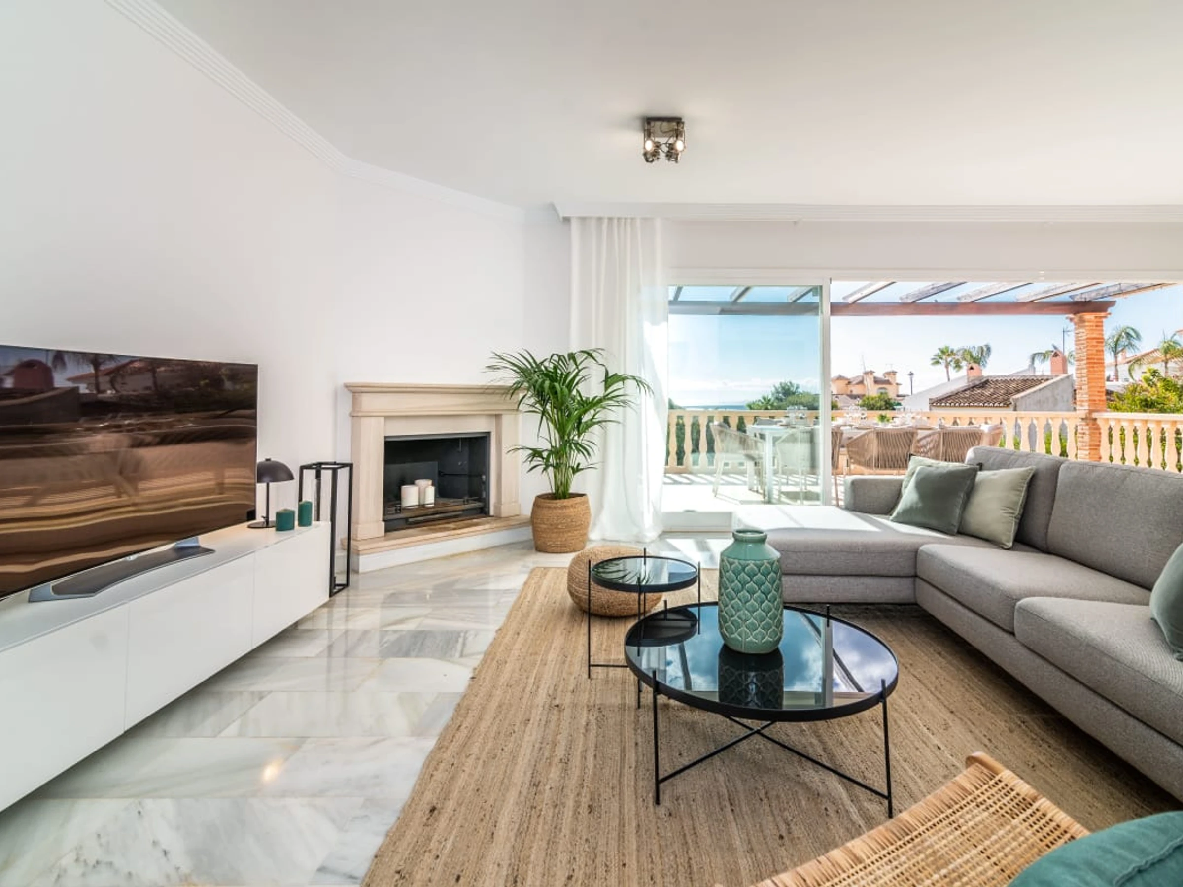 La villa cuenta con dos acogedoras salas de estar, que brindan amplio espacio para relajarse y disfrutar. Cada sala está decorada con buen gusto, con cómodos muebles, cálida decoración y grandes ventanales que llenan los espacios de luz natural.