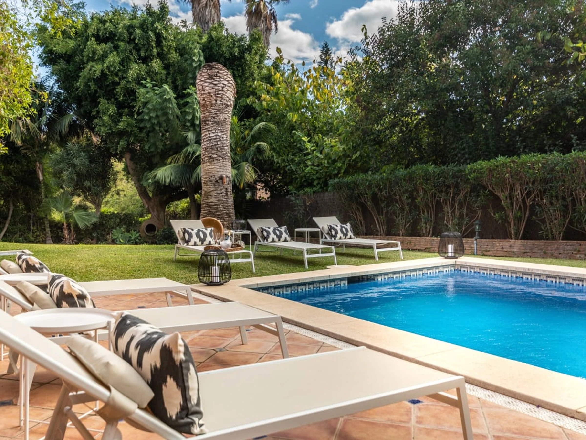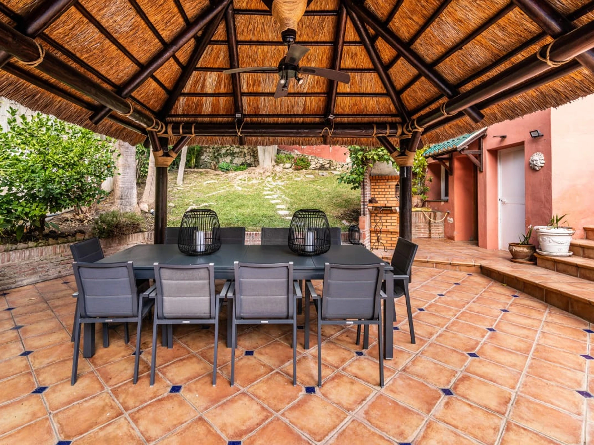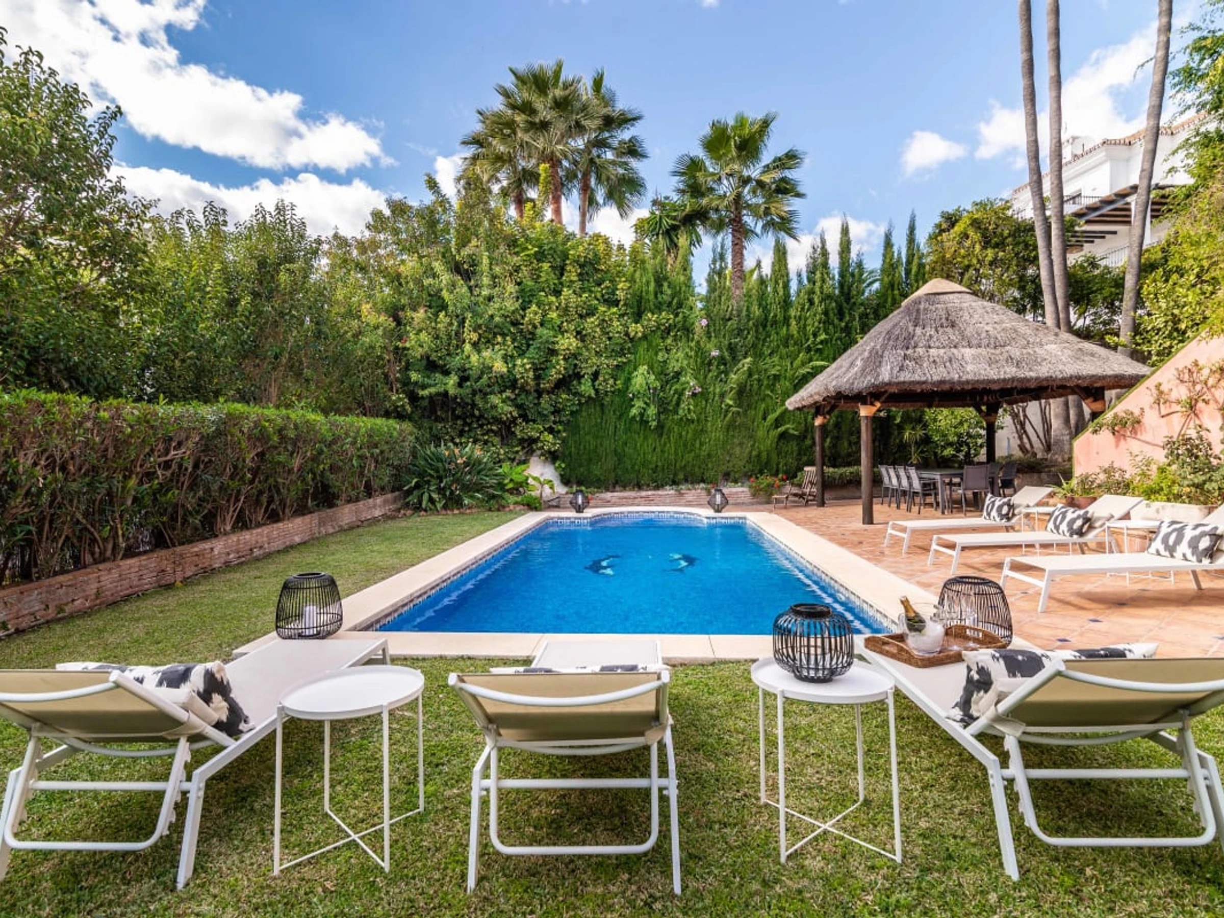 Al salir al exterior, descubrirás una piscina privada rodeada de un exuberante jardín maduro. El jardín ofrece un ambiente sereno, perfecto para descansar y disfrutar al aire libre. También encontrarás un encantador gazebo con zona de barbacoa, ideal para disfrutar de comidas al aire libre con familiares y amigos.