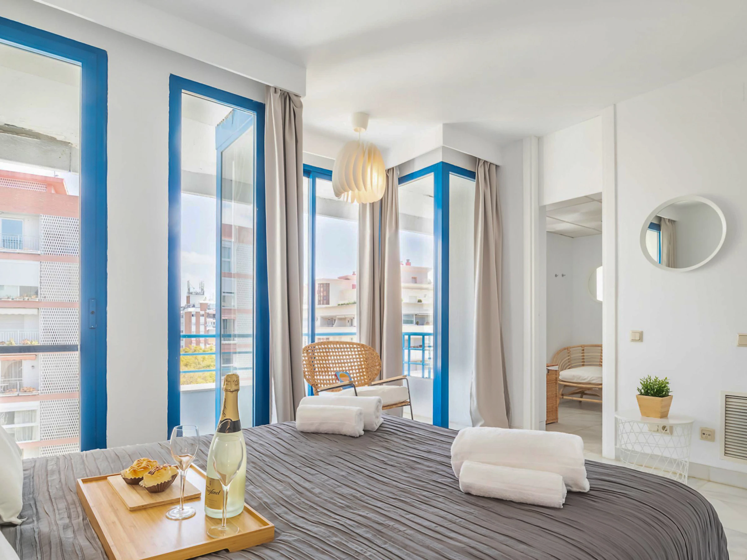 En el interior, el ático tiene aire acondicionado y ofrece 2 dormitorios luminosos con elegantes baños privados, perfectos para alojar hasta 4 personas. La sala de estar del alquiler está diseñada para brindar una experiencia única con la luz del sol iluminando los interiores y muebles como sofás, Smart TV y comedor interior, creando el espacio ideal para relajarse. Hay una cocina independiente, moderna y espaciosa con mesa de desayuno y todos los servicios esenciales para facilitar una estancia sin esfuerzo. Los huéspedes encontrarán lavavajillas, cafetera, tostadora, inducción y microondas, entre otros servicios.