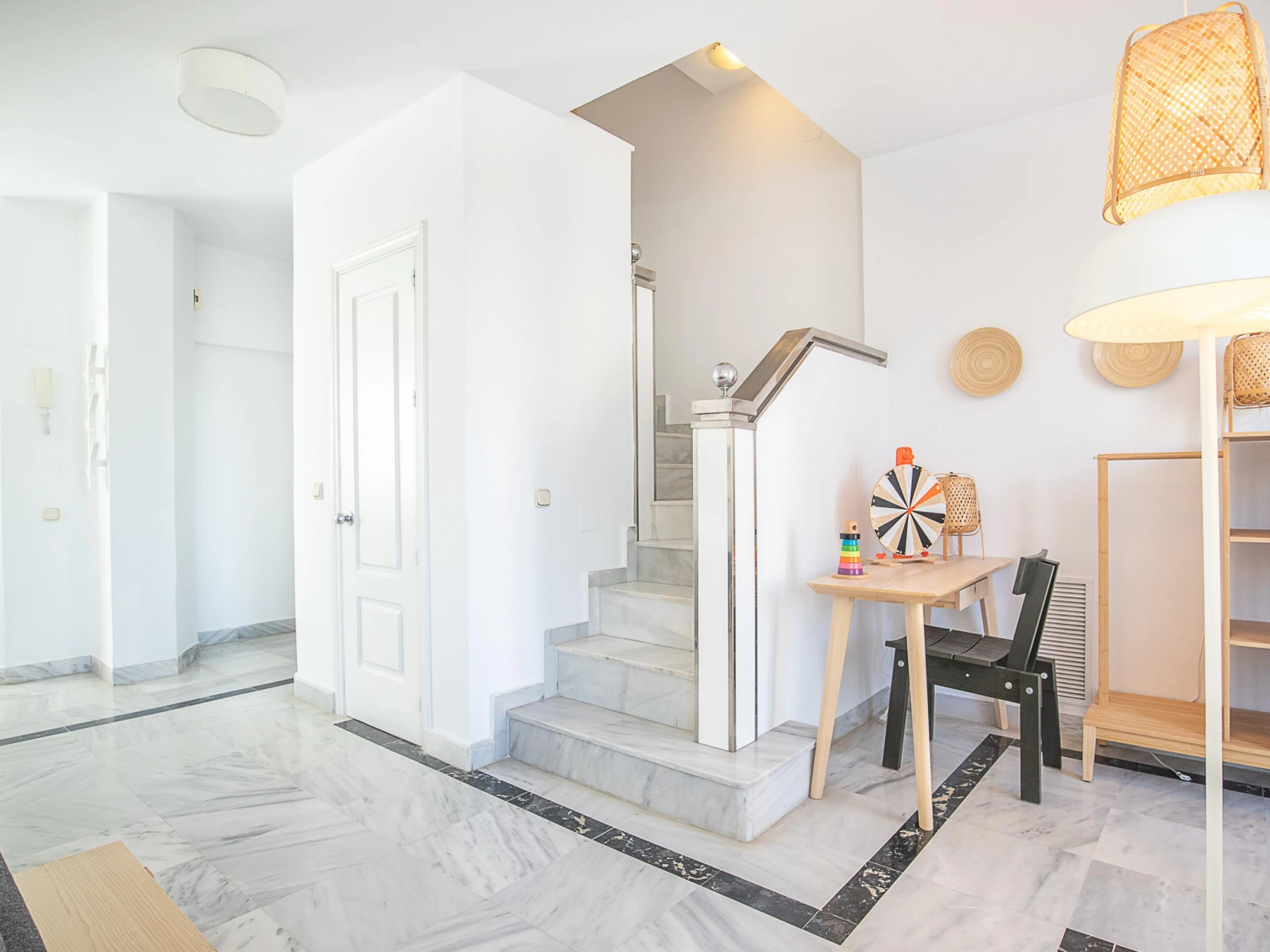 El ático está en el primer piso y está dividido en tres niveles, lo que proporciona un amplio espacio para la relajación. El salón es moderno y luminoso, con acceso directo a la terraza. La cocina está totalmente equipada con lavavajillas, microondas, horno, nevera y cafetera.