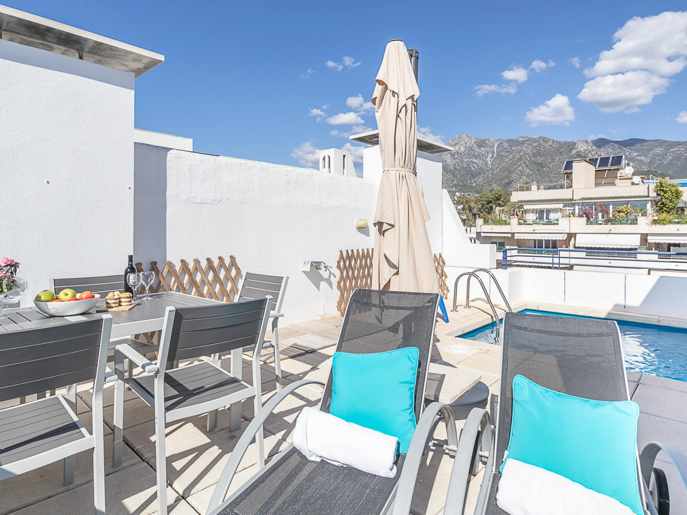 - El apartamento triplex está situado en Marbella, cerca de la costa del mar en un lugar soleado.