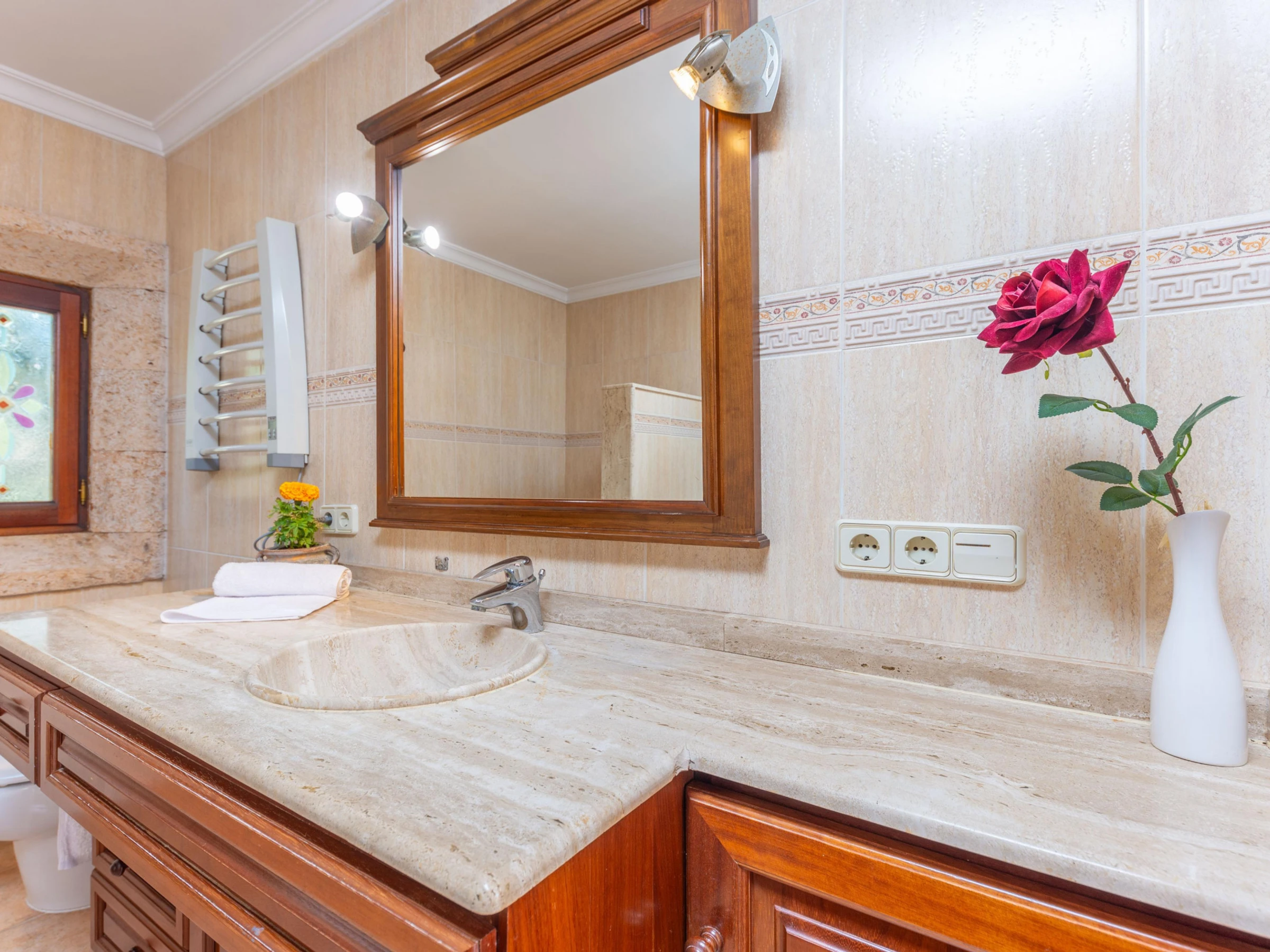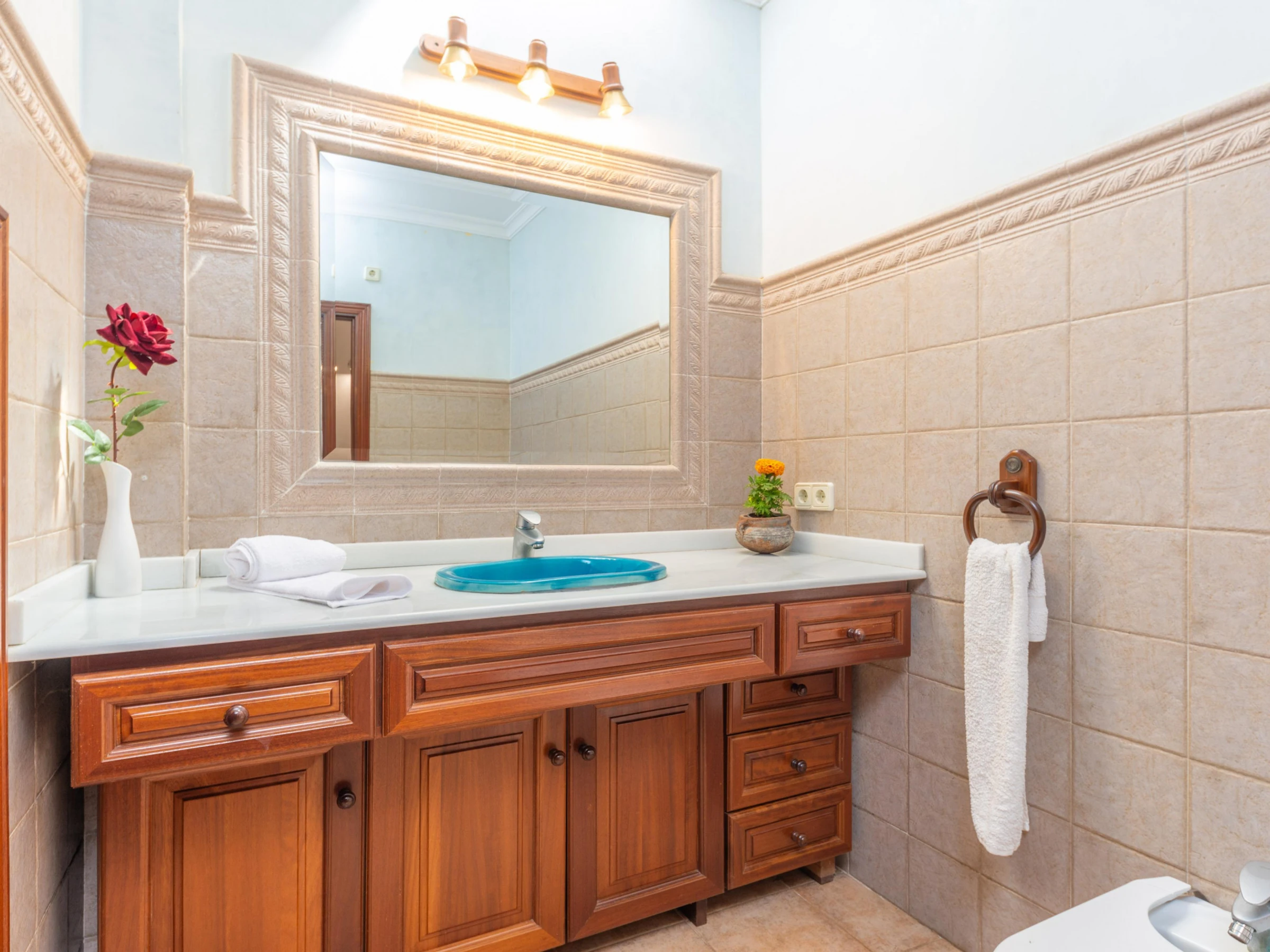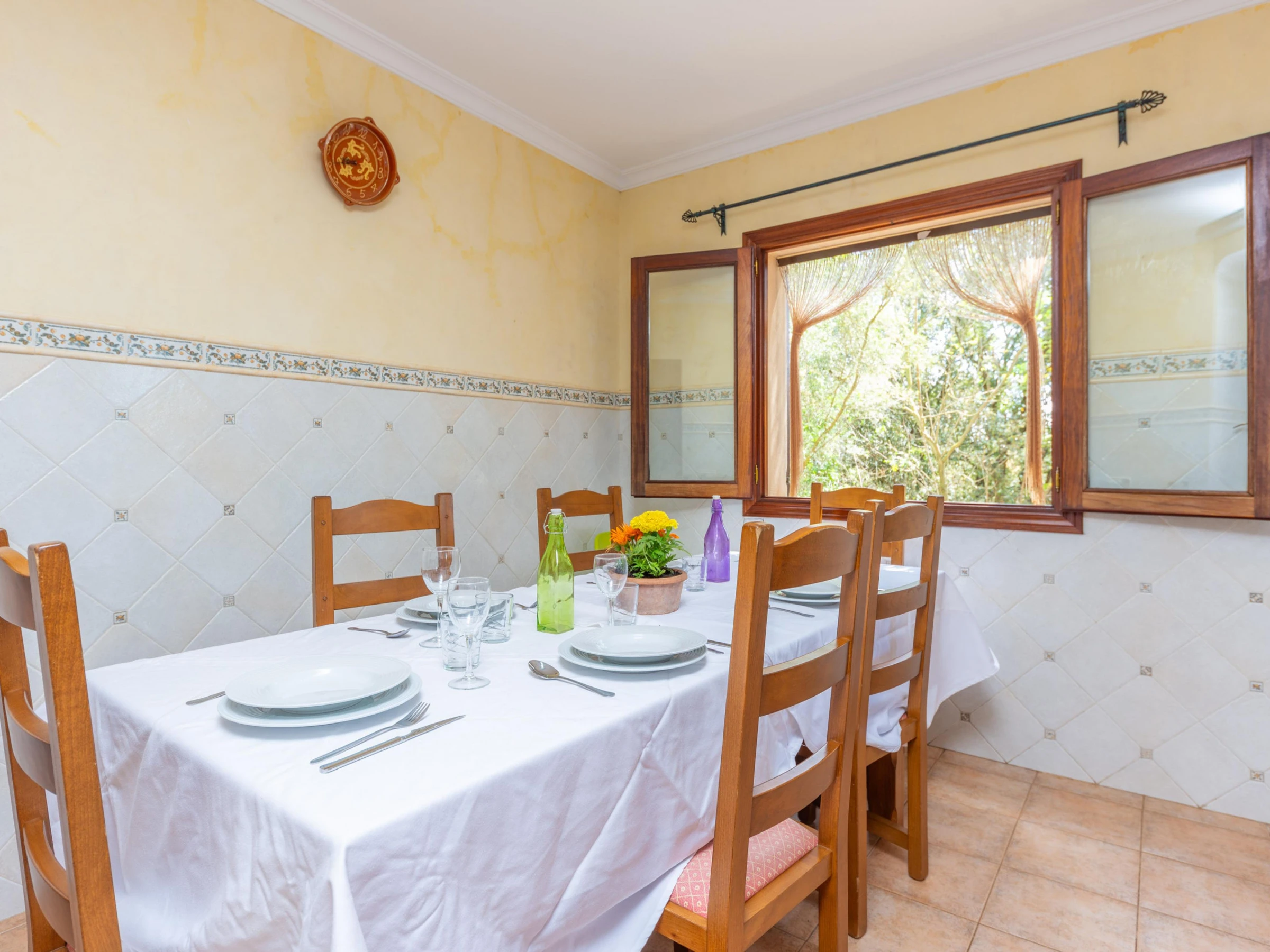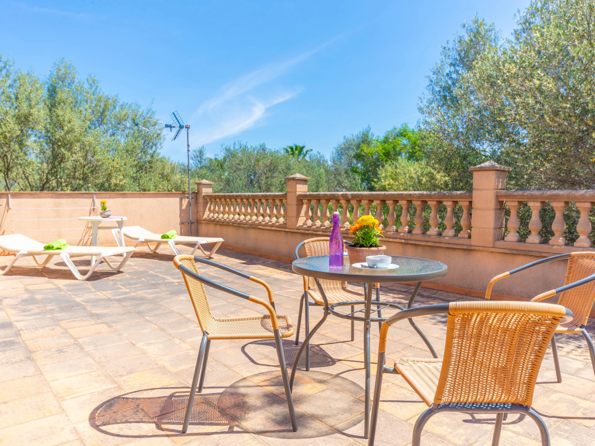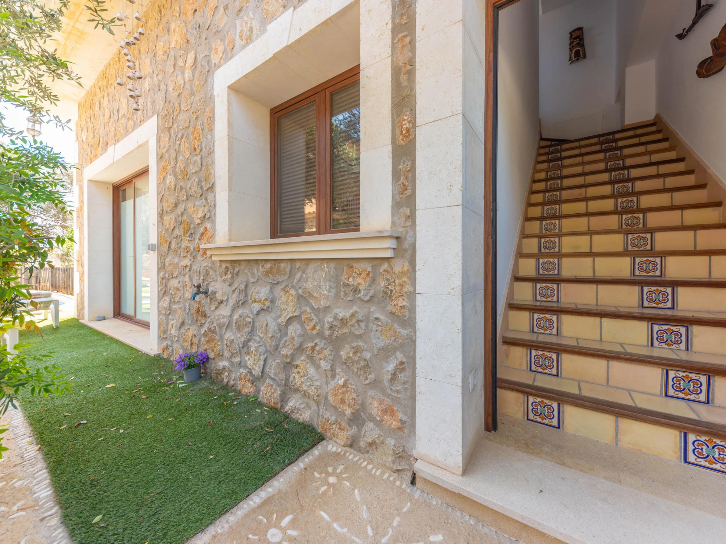 Los exteriores están diseñados para maximizar el disfrute del clima mediterráneo. La propiedad cuenta con una piscina exterior de cloro de 7.5 metros de largo por 3.5 metros de ancho, con una profundidad uniforme de 1.70 metros, ideal para refrescarse durante los días calurosos. Junto a la piscina, los huéspedes encontrarán tumbonas para descansar bajo el sol mallorquín. La terraza también cuenta con una zona de barbacoa bajo un porche que da sombra a la mesa dispuesta para disfrutar de las comidas al aire libre junto a sus acompañantes.