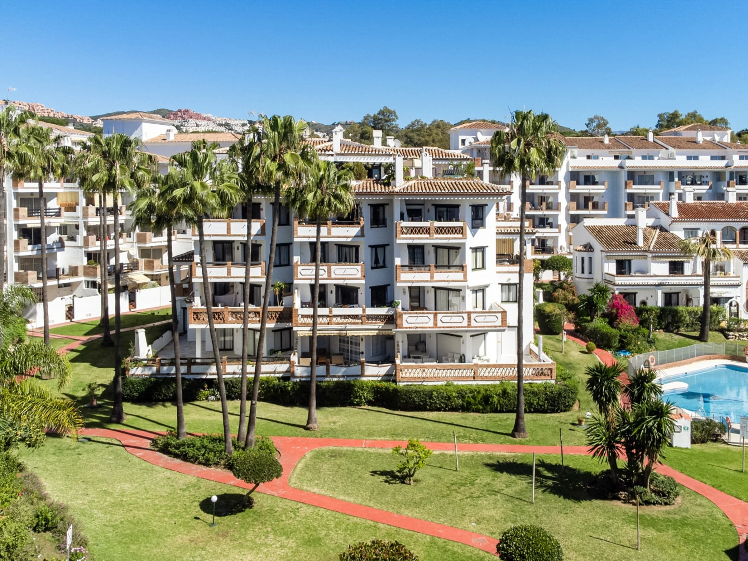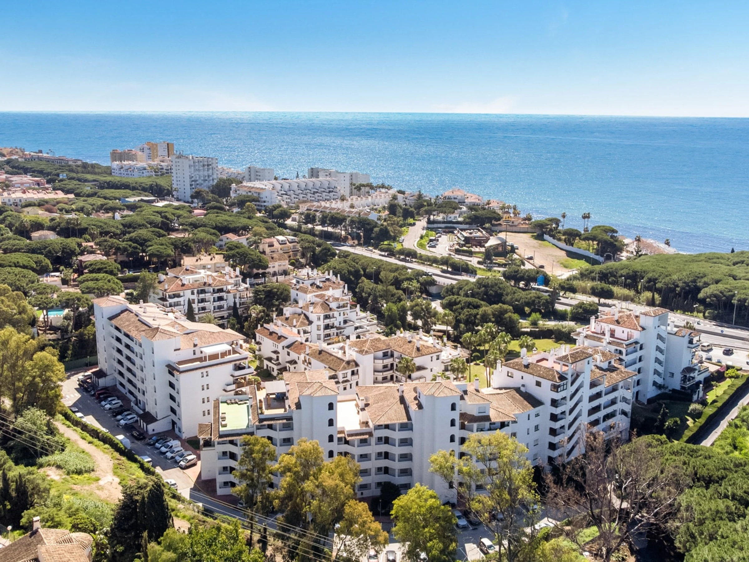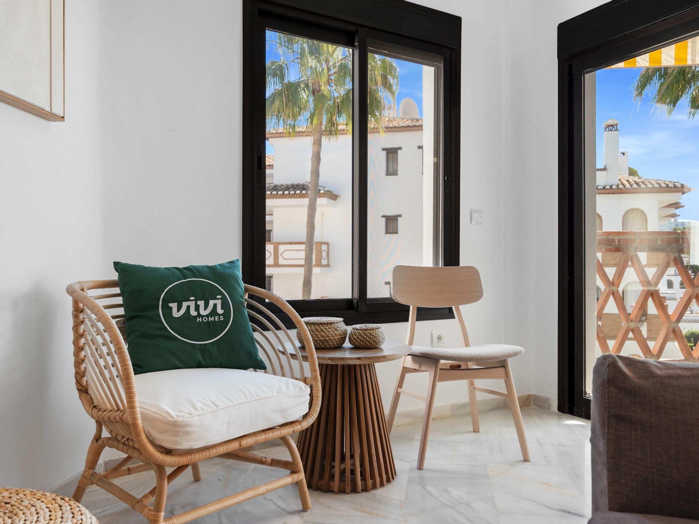 Disfruta del lado más suave de la Costa del Sol desde la hermosa terraza, donde puedes relajarte bajo la cálida luz otoñal y disfrutar del entorno tranquilo.