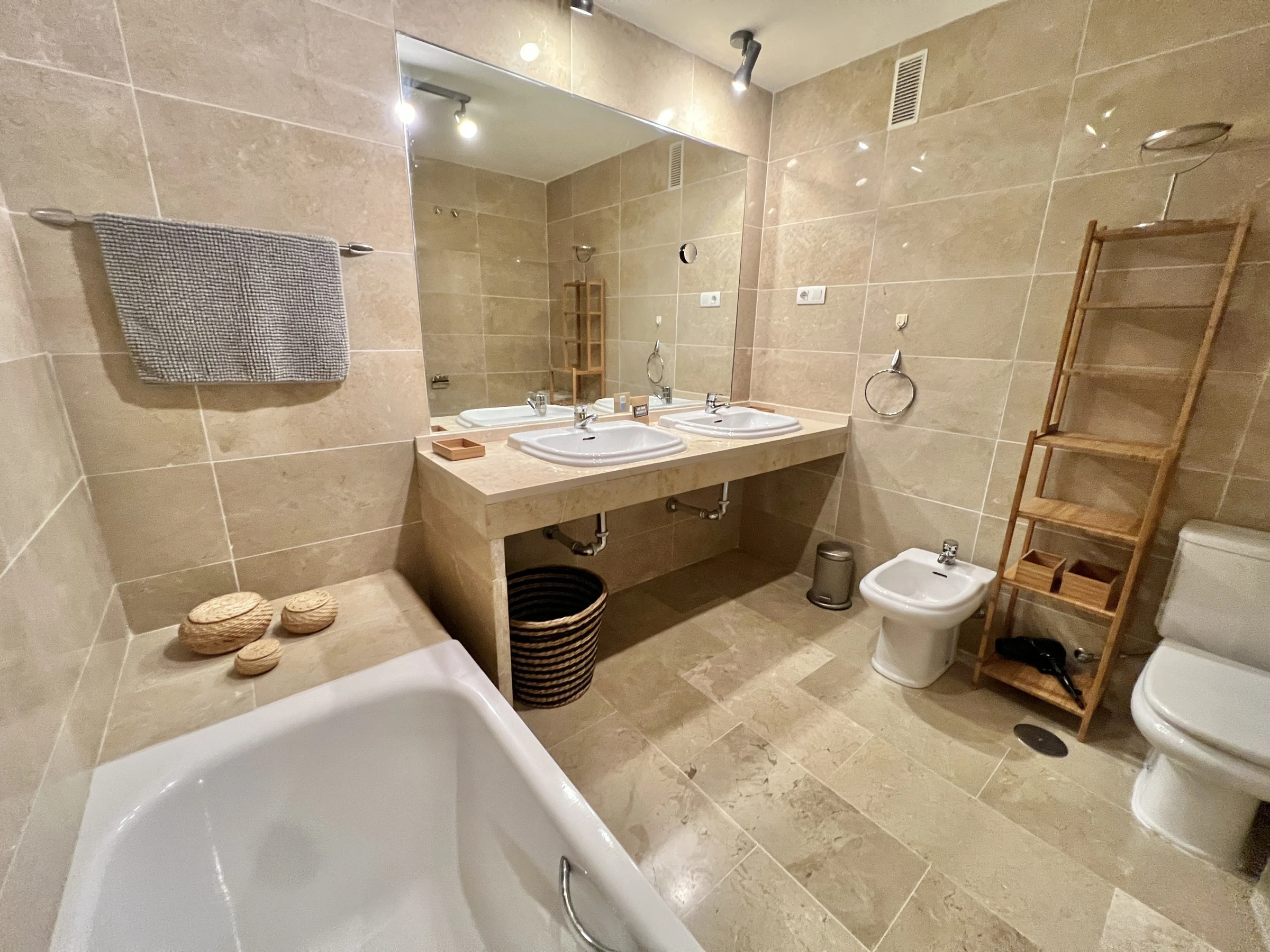 El apartamento en sí cuenta con 2 dormitorios y 2 baños, uno con ducha y bañera. Podrá disfrutar de una estancia cómoda y relajante. El comedor es ideal para disfrutar de comidas caseras y la cocina está completamente equipada. El amplio balcón soleado es el lugar ideal para relajarse y disfrutar tanto de la zona de chill out como de las comidas al aire libre.