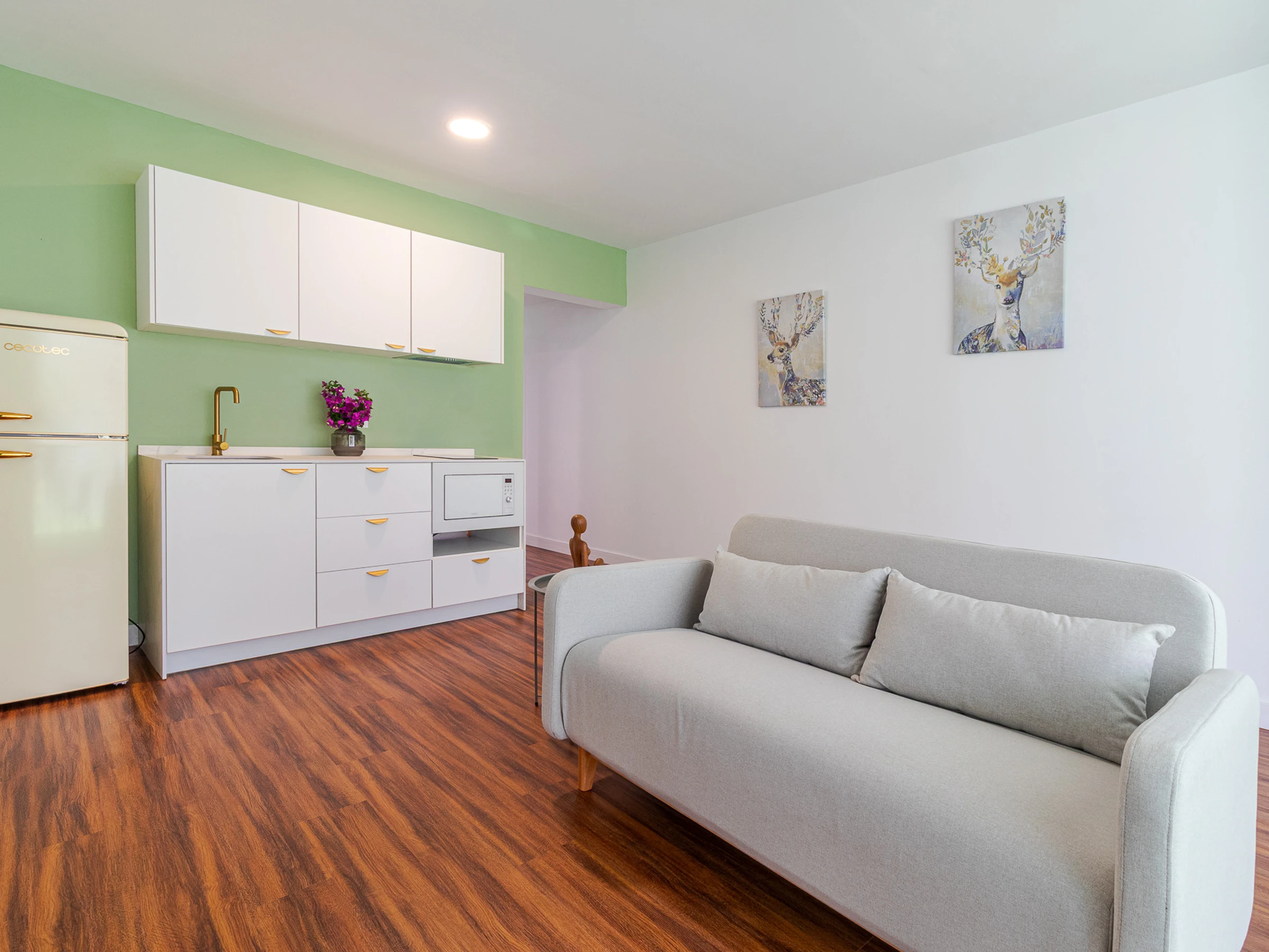 Los apartamentos han sido completamente renovados en 2025, respetando la esencia de la finca pero incorporando comodidades contemporáneas. Cada unidad es exterior y luminosa, con sala-cocina equipada, baño moderno, uno o dos dormitorios y una terraza privada desde la que contemplar el verdor del entorno. Aquí todo invita a desconectar: materiales cálidos, detalles cuidadosamente elaborados y ese silencio que solo la naturaleza sabe regalar.
