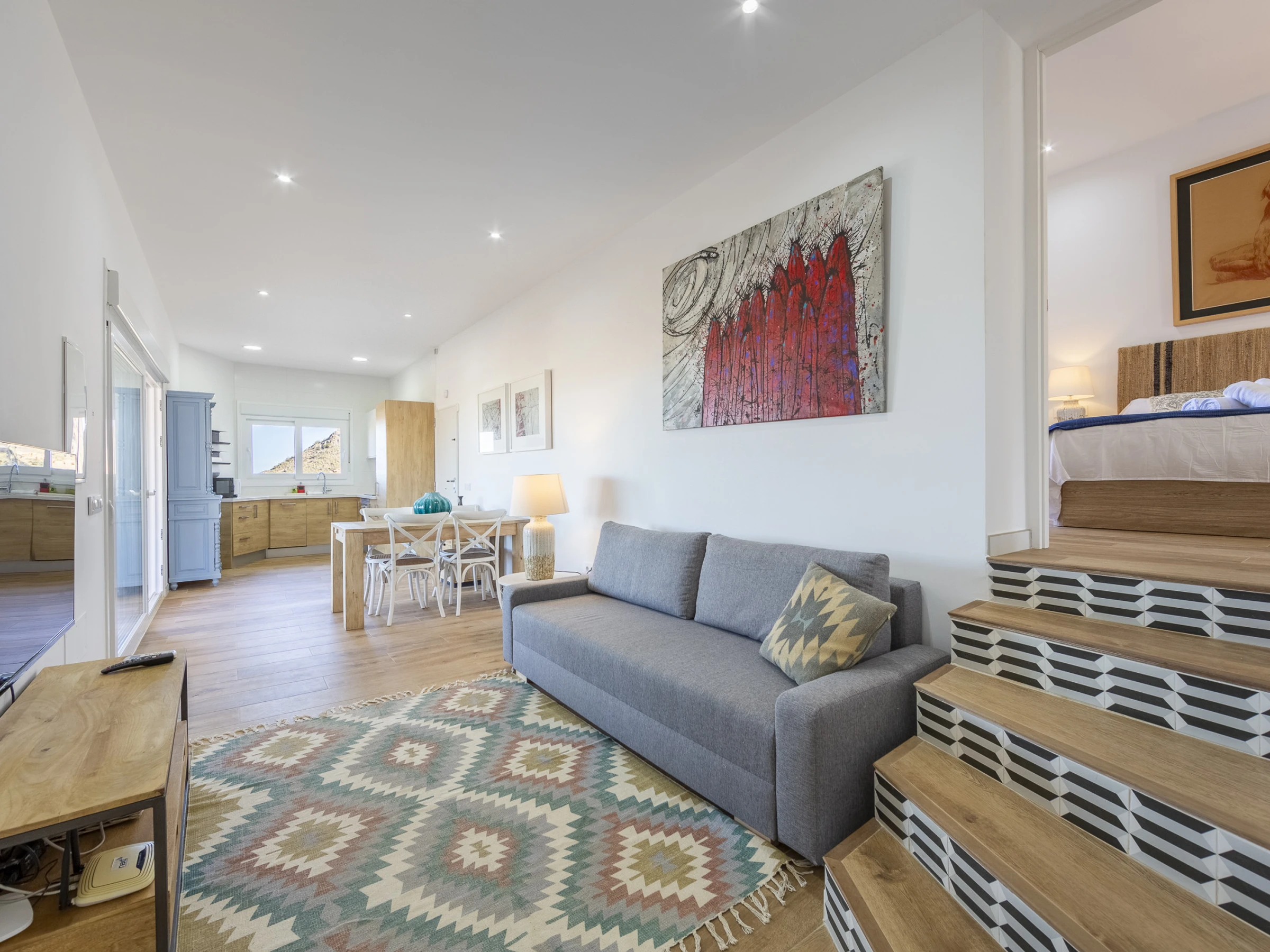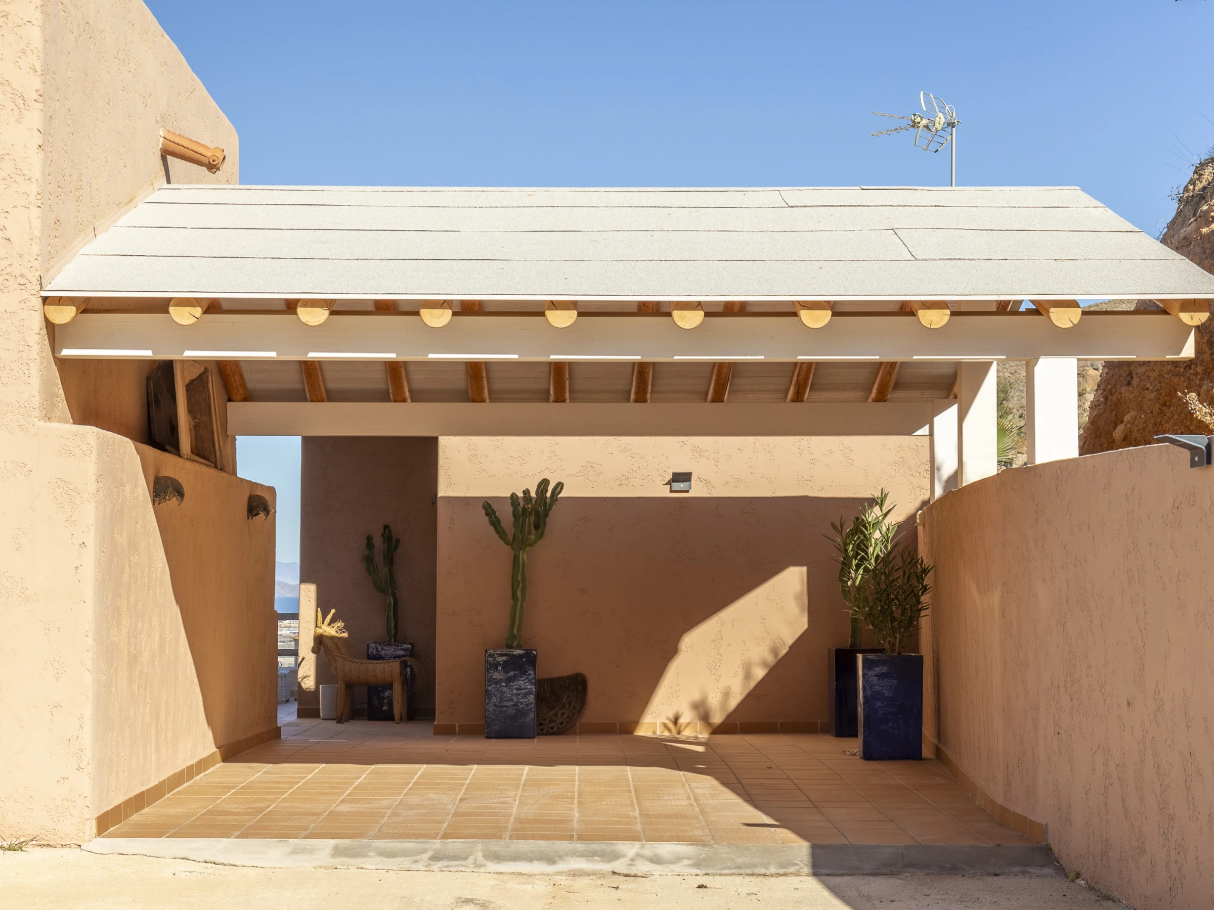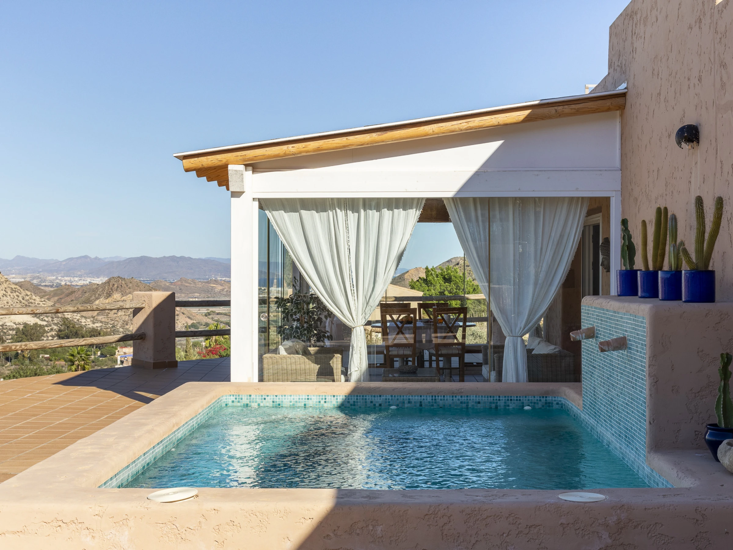La joya de la propiedad es su magnífica zona exterior con una preciosa piscina privada y mobiliario para relajarte o disfrutar de comidas al aire libre mientras admiras el paisaje. Ubicada a un paso del encantador Mojácar Pueblo, es el lugar perfecto para unas vacaciones inolvidables en Almería.
