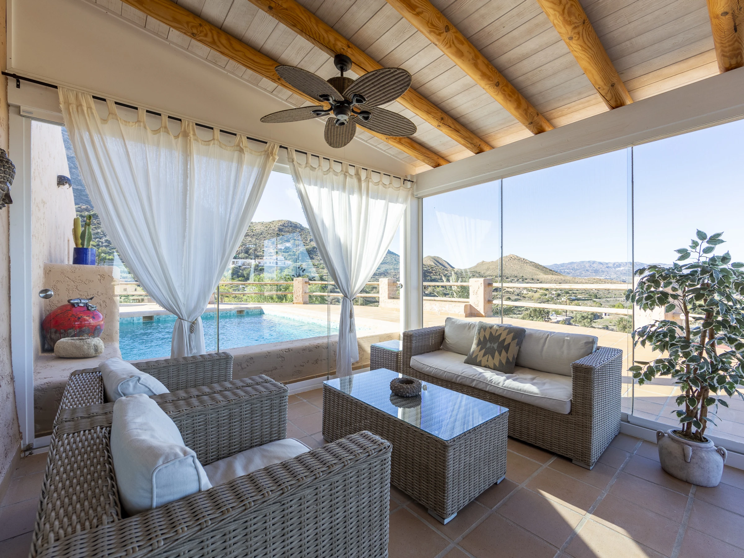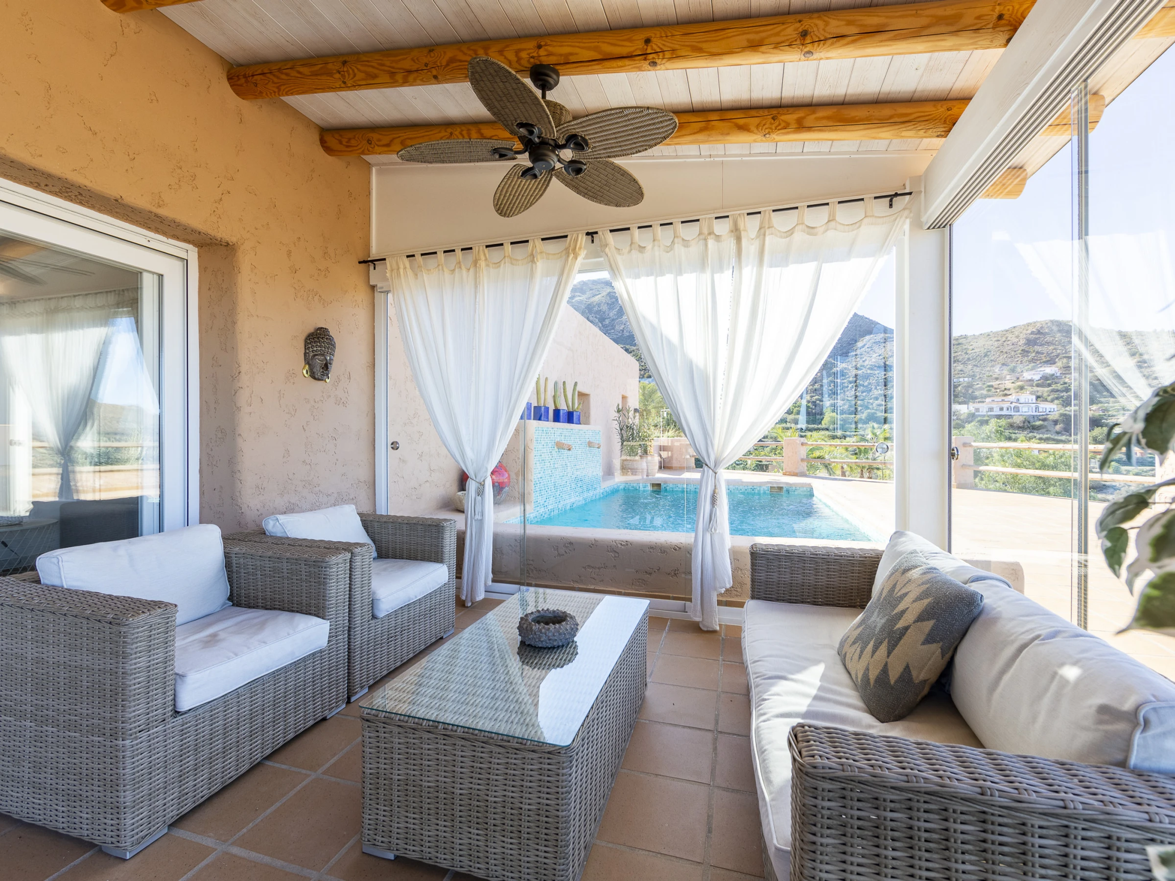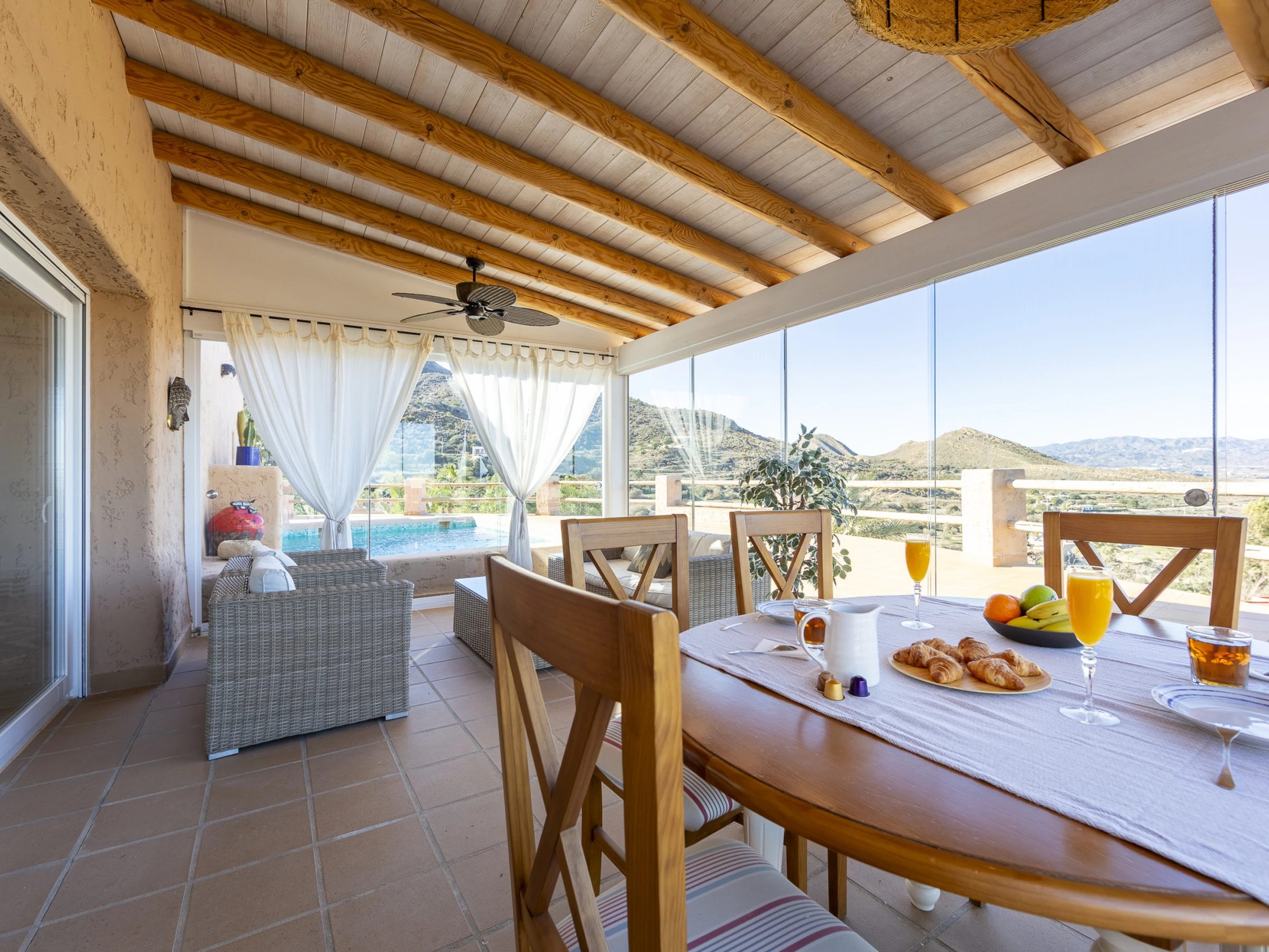 La joya de la propiedad es su magnífica zona exterior con una preciosa piscina privada y mobiliario para relajarte o disfrutar de comidas al aire libre mientras admiras el paisaje. Ubicada a un paso del encantador Mojácar Pueblo, es el lugar perfecto para unas vacaciones inolvidables en Almería.
