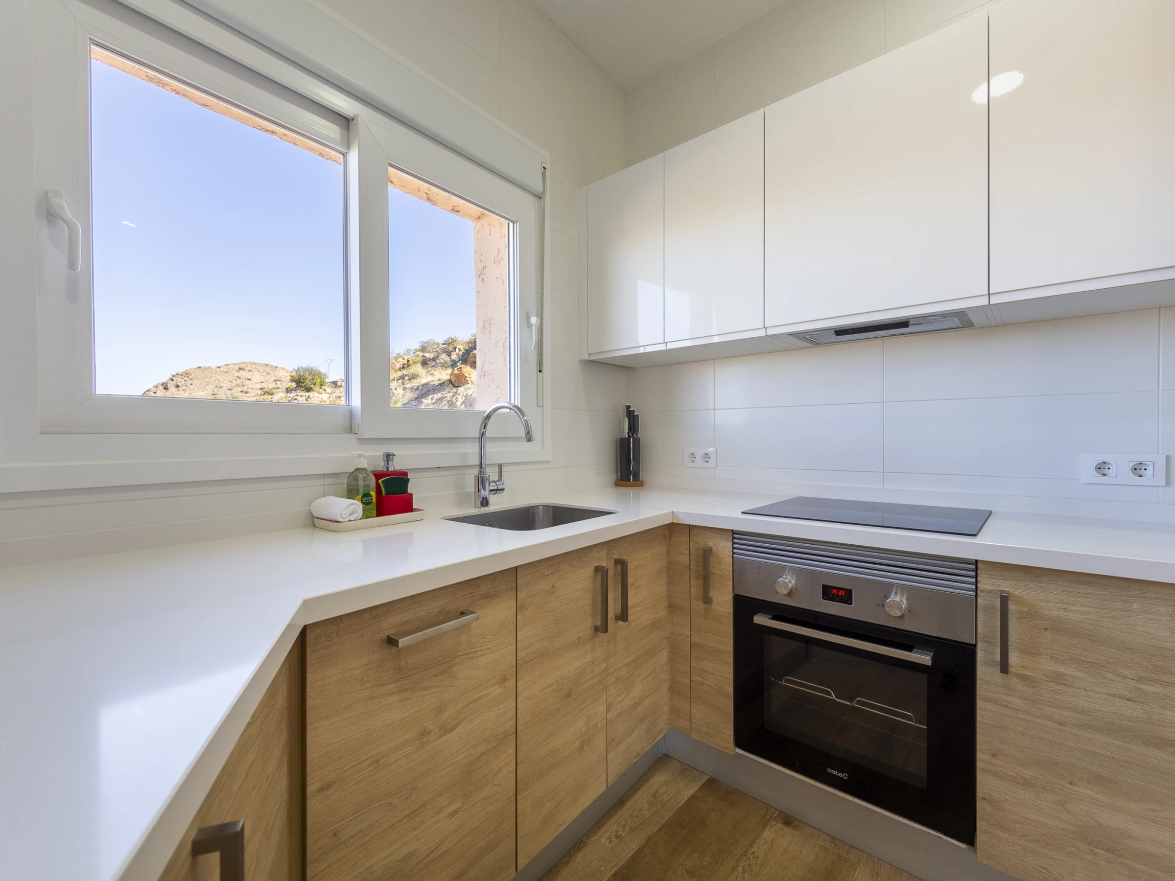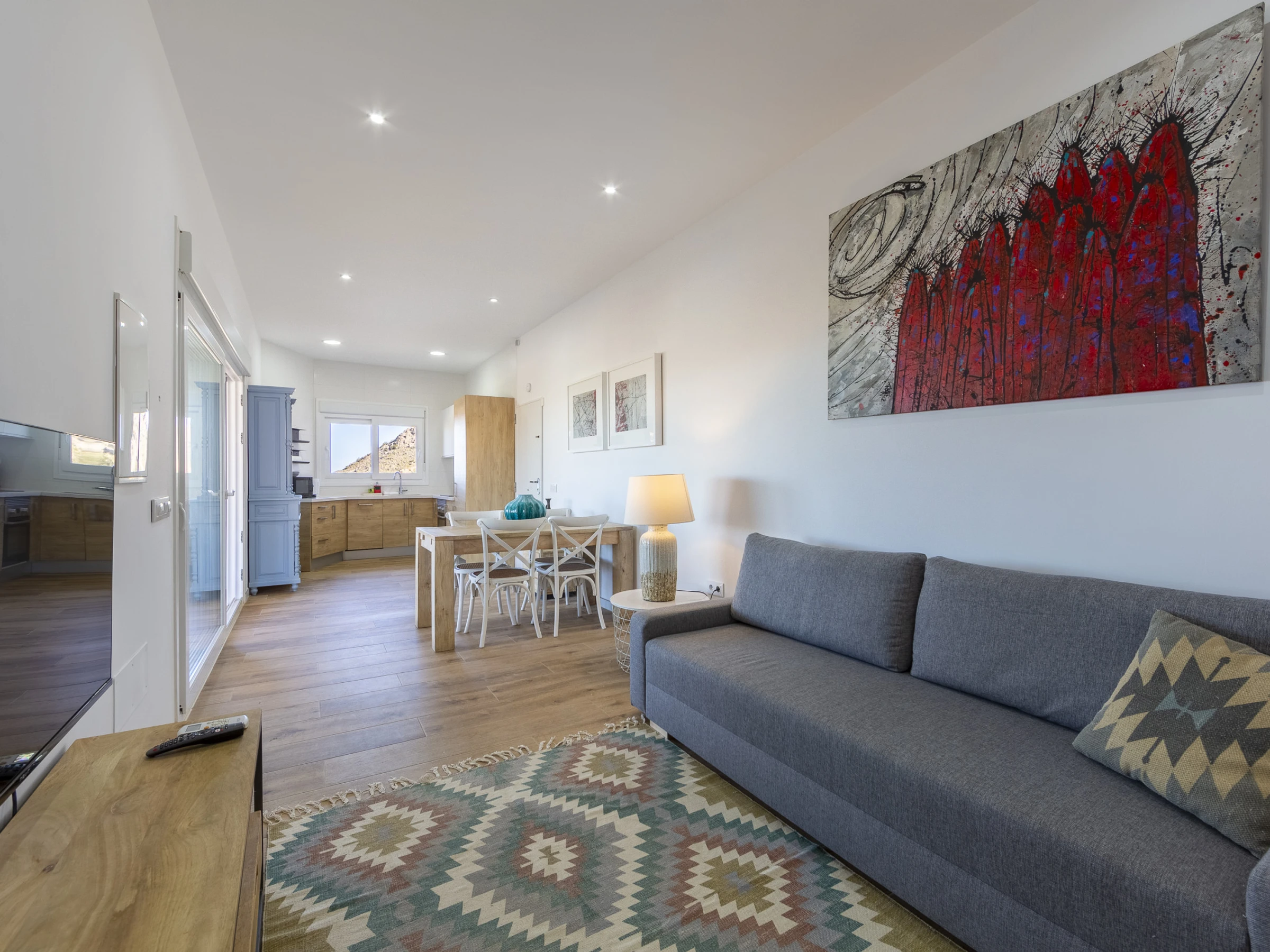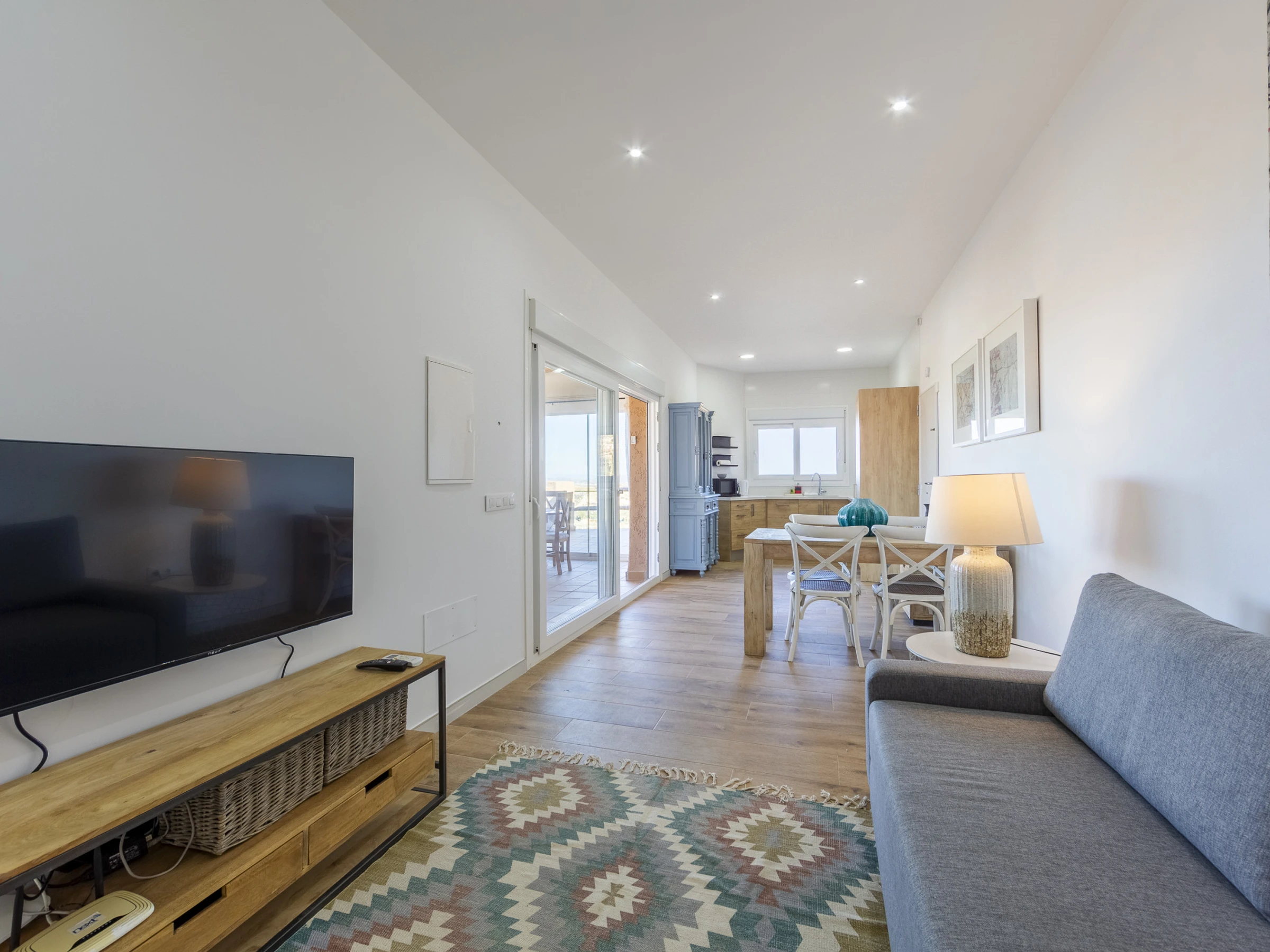 Esta espectacular villa en Mojácar Pueblo combina lujo, confort y unas vistas impresionantes al mar y a la montaña. Totalmente reformada y decorada con un estilo moderno y acogedor, dispone de dos dormitorios dobles, dos baños (uno en suite), un salón con sofá cama doble y TV, y una cocina completamente equipada.