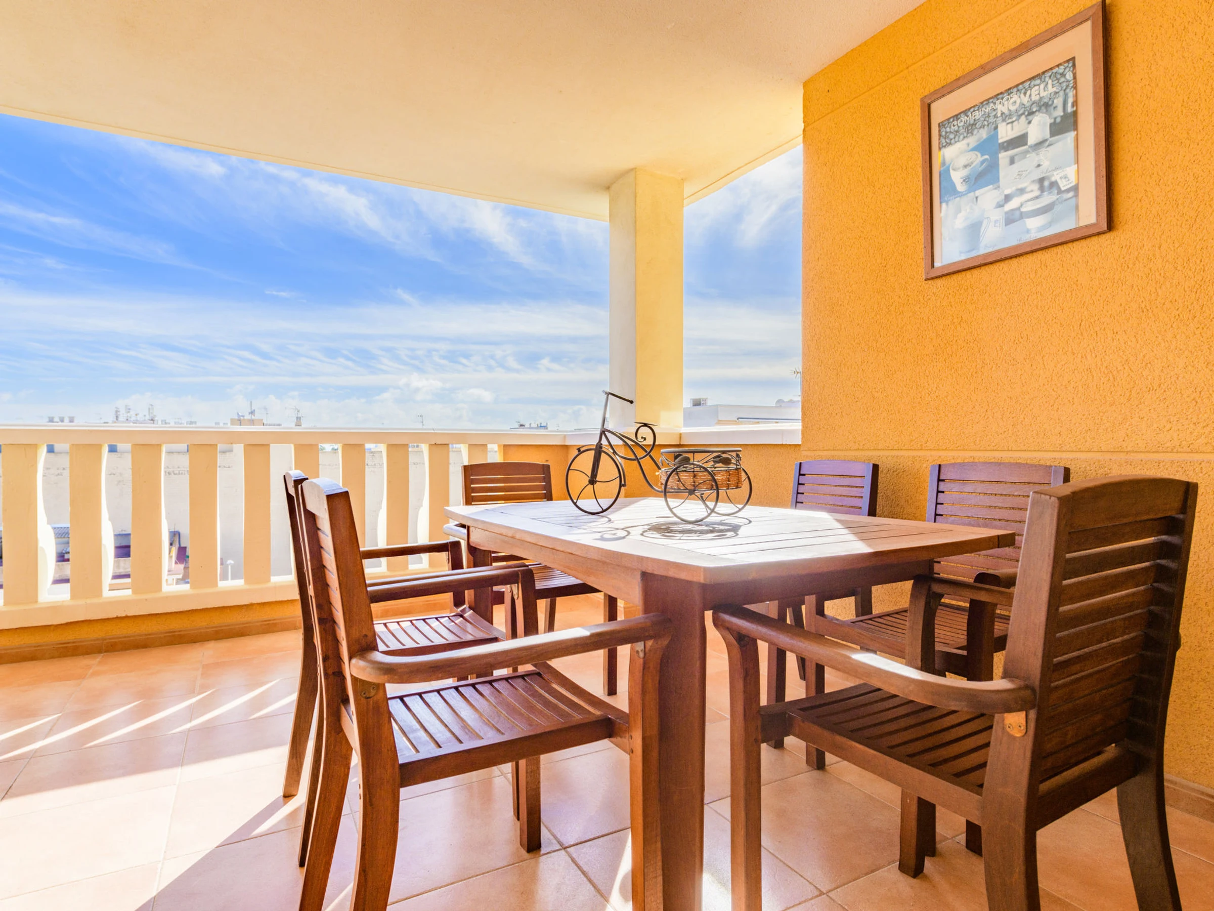 "Jardimar", apartamento de 3 estancias 80 m2 en el 4° piso. Luminoso, con mobiliario funcional y confortable: salón-comedor con mesa de comedor, TV digital, pantalla plana y ventilador. Salida a la terraza. 1 dorm. con 1 cama (80 cm, [hidden] cm de longitud), 1 cama de matrimonio ([hidden] cm, [hidden] cm de longitud), ventilador. 1 dorm. con 2 camas (90 cm, [hidden] cm de longitud), ventilador. Cocina abierta (horno, 4 placas de vitrocerámica, microondas, congelador). Ducha/bidet/WC. Calefacción eléctrica. Terraza grande 25 m2. Muebles de terraza. Vista a la localidad. El alojamiento dispone de: lavadora, plancha, secador de pelo. Internet (Wifi, gratis). Plaza de aparcamiento (cubierto) junto a la casa. A tener en cuenta: apartamento para no fumadores. 1 mascota pequeña / perro. [hidden] // Reg. Nr.: ESFCTU[hidden][hidden][hidden]6