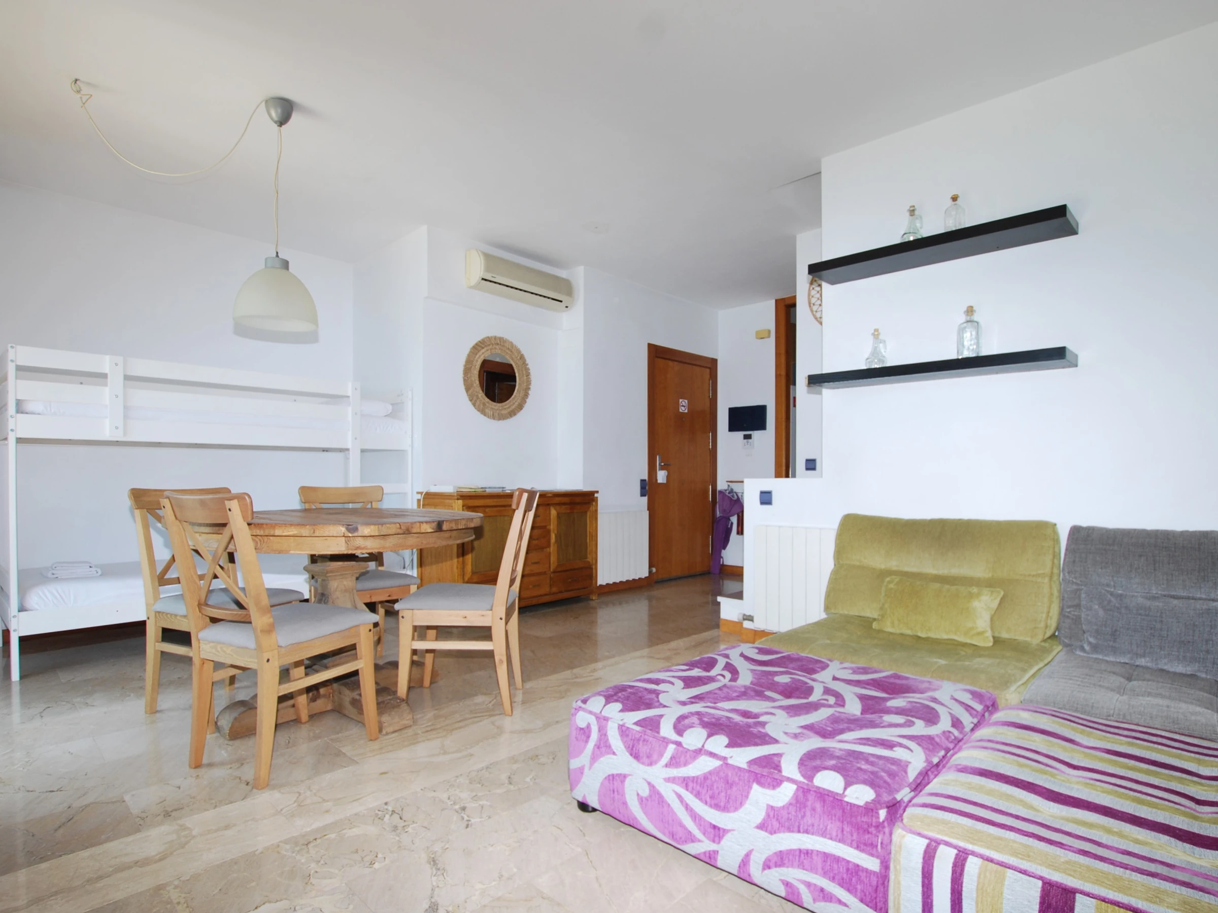 - Comedor con mesa y sillas, y gran sofá de 4 módulos.