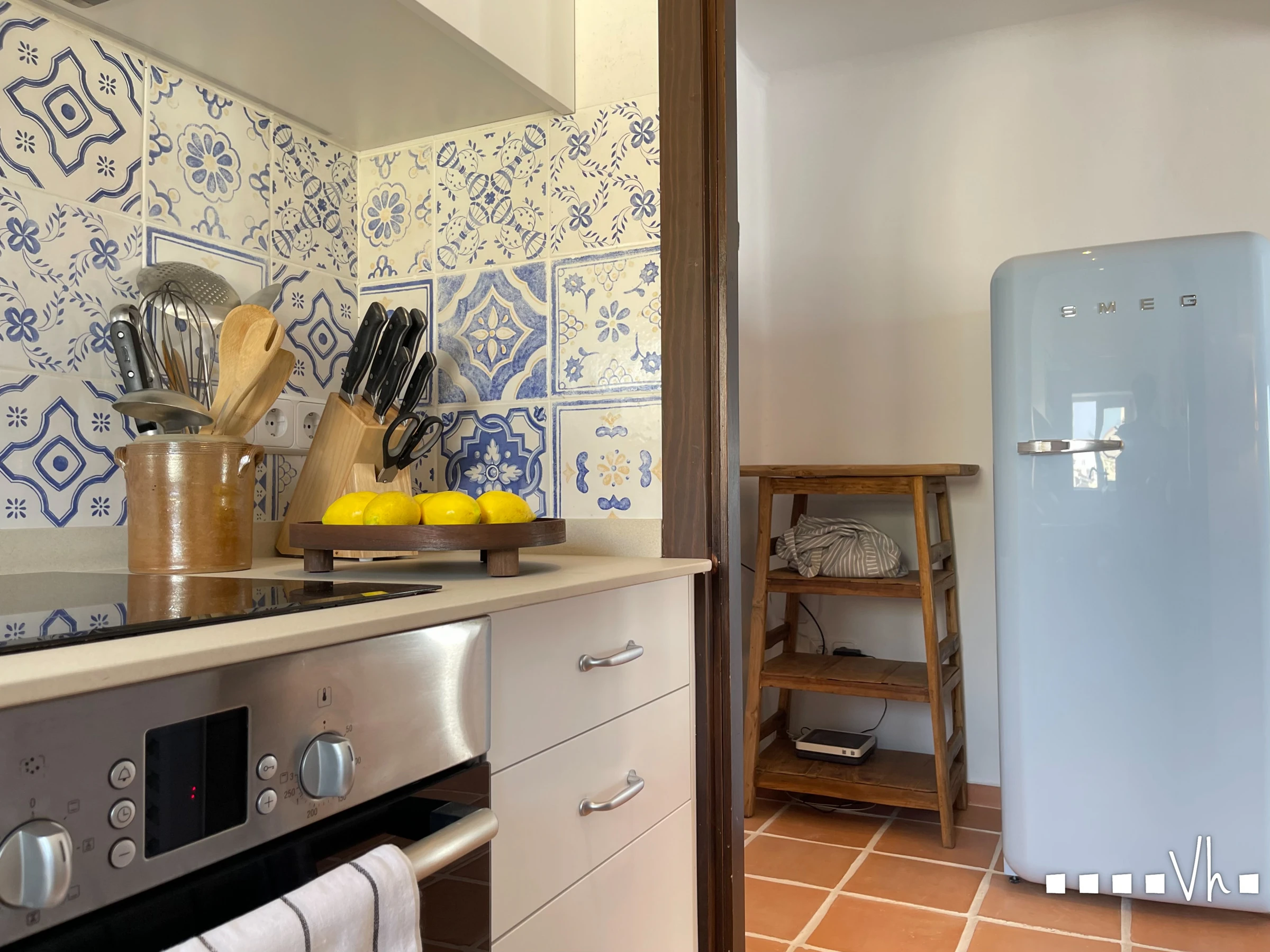 La cocina, moderna y funcional, está equipada con todo lo necesario para sus vacaciones. El apartamiento tiene dos dormitorios, uno con cama de matrimonio y otro con dos camas indiviaduales, y un baño con ducha. Todas las estancias tienen aire acondicionado.