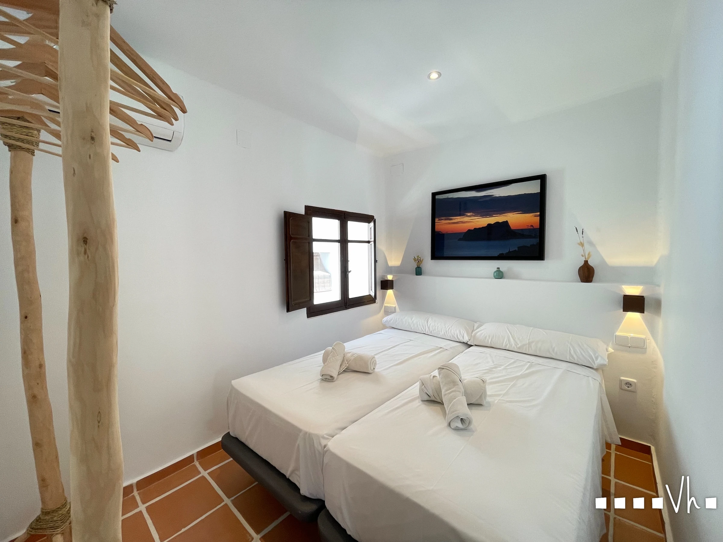 Este coqueto apartamento recién reformado, se encuentra en el corazón de Moraira, a escasos metros del puerto y la playa. Es una casa típica mediterránea, pintada de blanco, con suelos de terracota , vigas y ventanas de madera, decorada con mucho mimo en colores claros y materiales naturales.