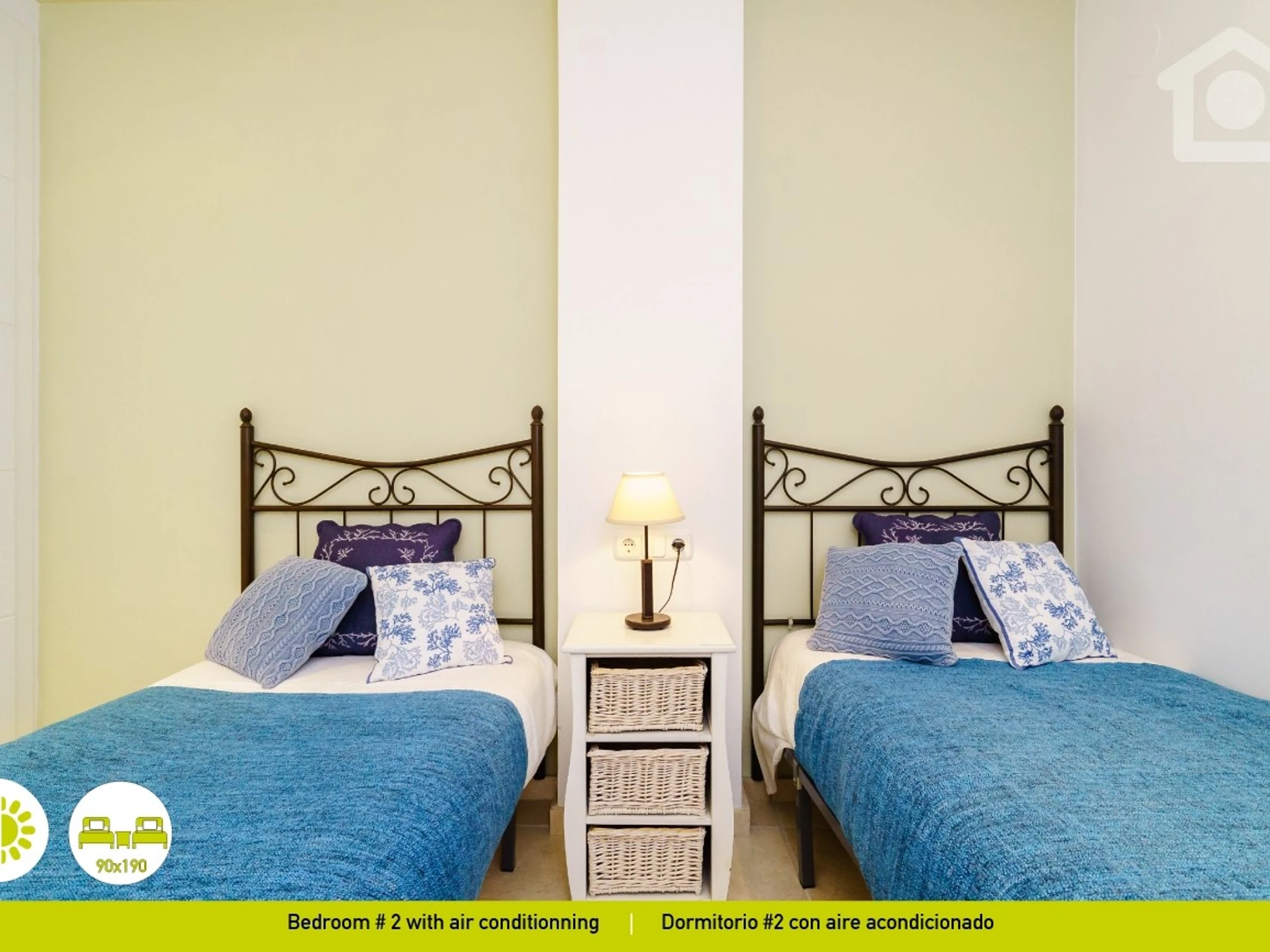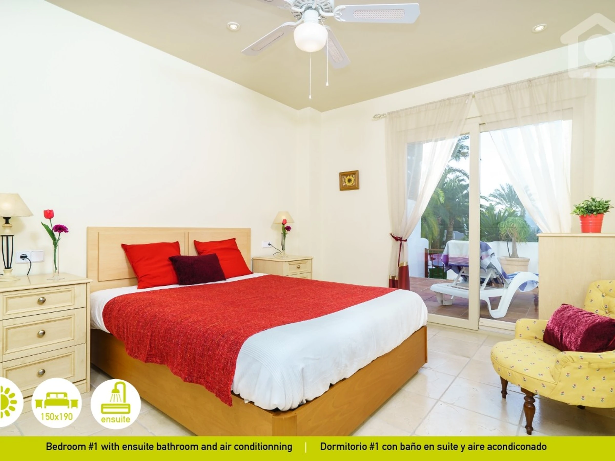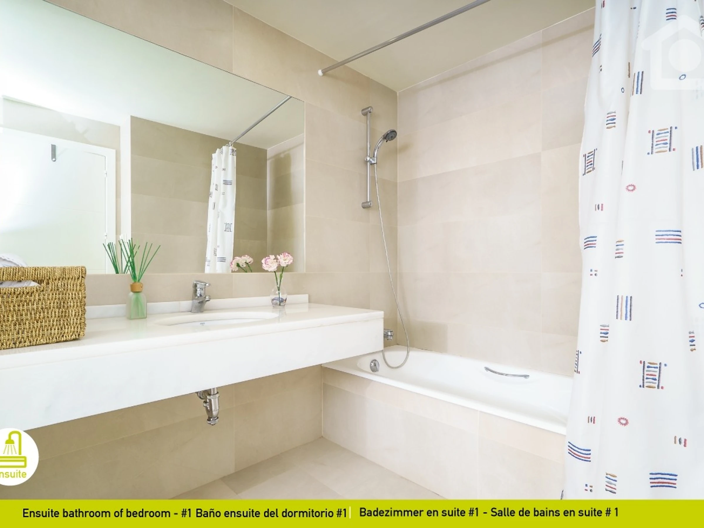 Ese apartamento tiene 2 dormitorios, 2 baños, uno de ellos en suite. Está construido con las mejores calidades: dispone de aire acondicionado en toda la vivienda, Internet Wifi, TV-satélite, persianas eléctricas, chimenea, doble cristal de seguridad en todas las ventanas, pavimento de mármol rustico etc… Está totalmente equipado y muy bien decorado con muebles de calidad.
