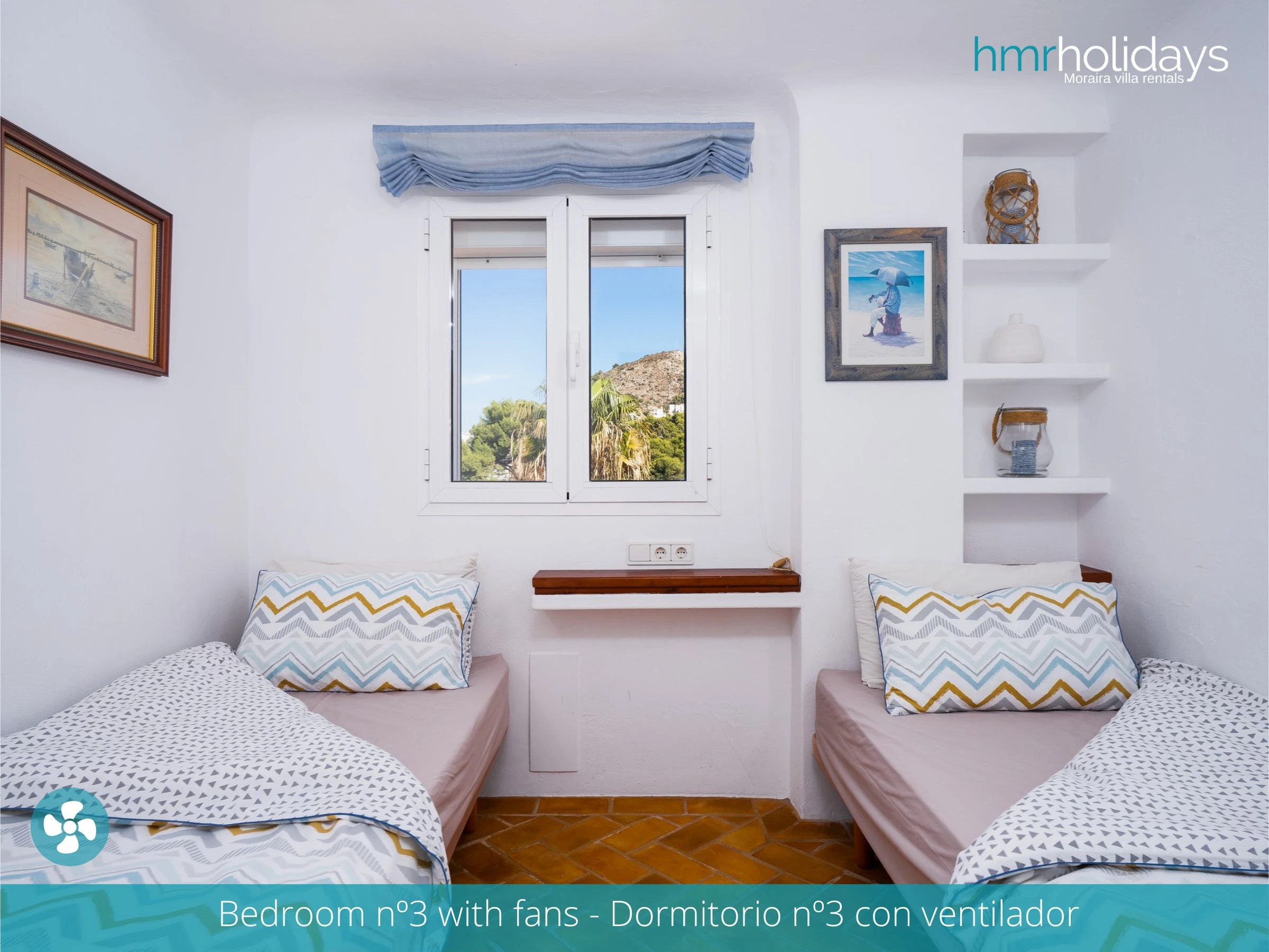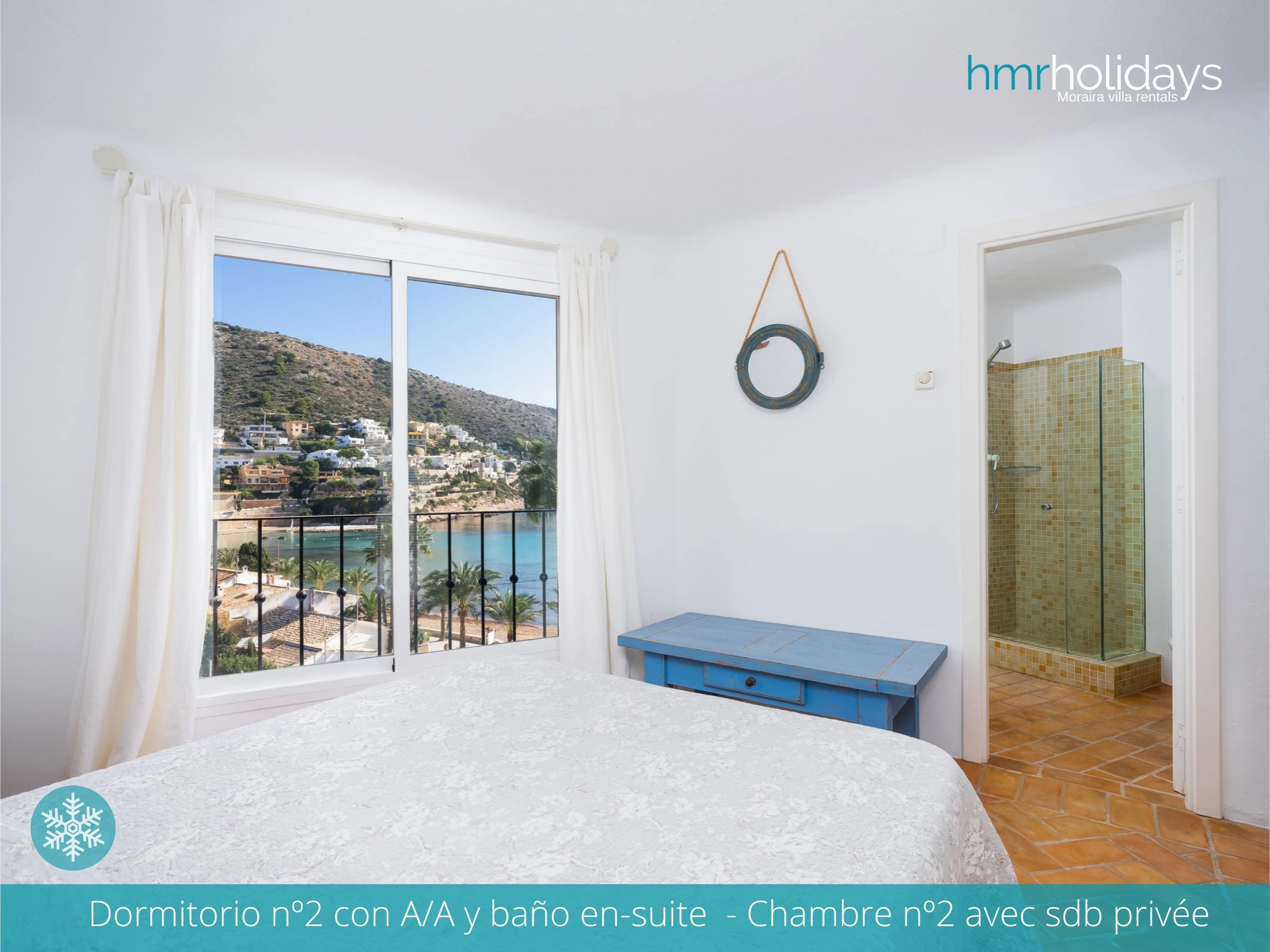 El dúplex está ubicado en el segundo piso del edificio de apartamentos que alberga seis apartamentos. El piso principal consta de dos habitaciones (una doble con aire acondicionado y baño en-suite, una con 2 camas de 90), baño familiar, cocina y salón. El salón tiene una cortina de cristal que ofrece magníficas vistas de la playa y la bahía de El Portet. La cocina está bien equipada con todos los electrodomésticos modernos y hay asientos en el salón y en la mesa de comedor para seis personas. El apartamento cuenta con WiFi junto con TV vía satélite que muestra canales ingleses gratuitos (incluyendo BBC, ITV, Channel 4, etc.).