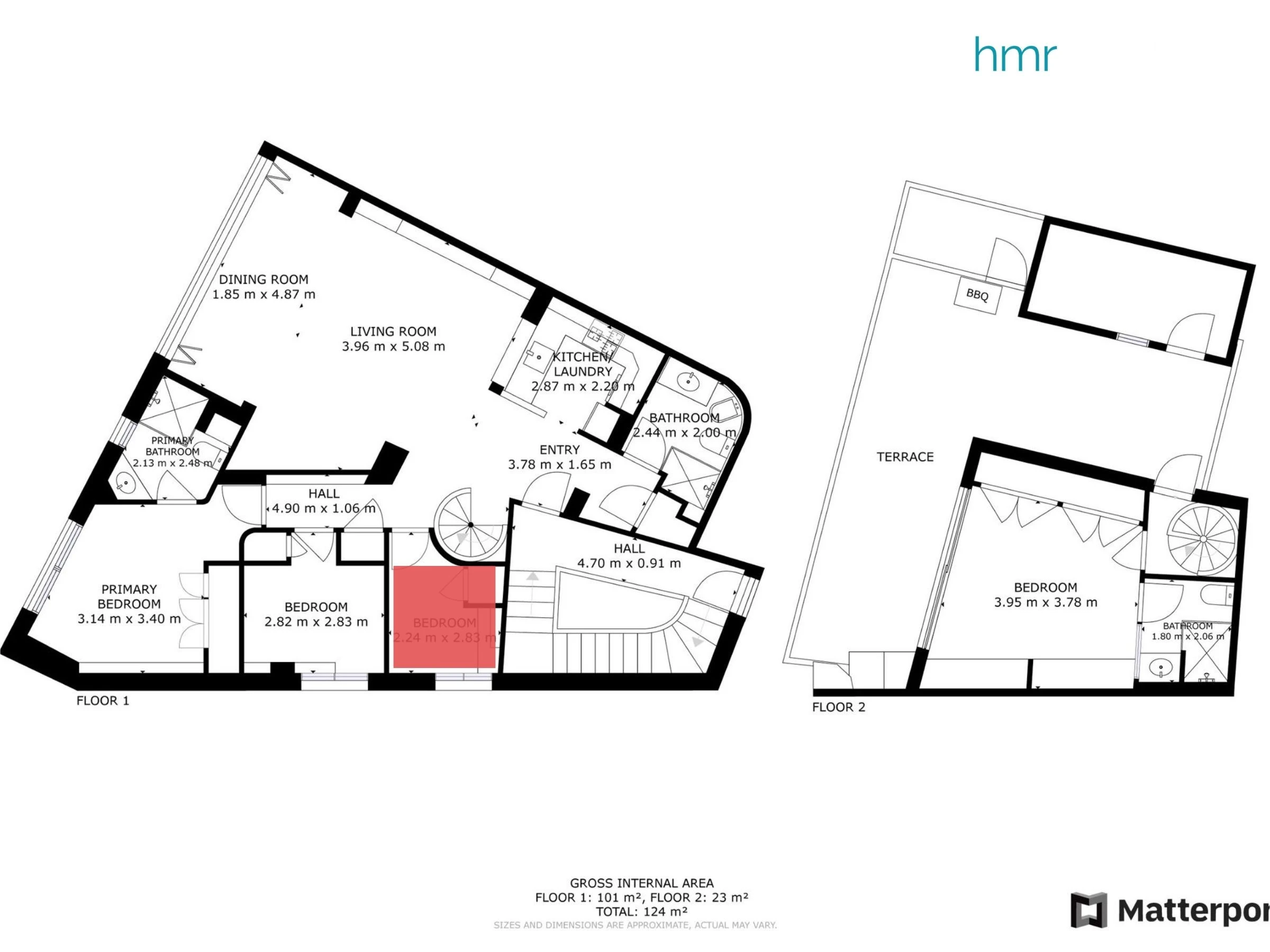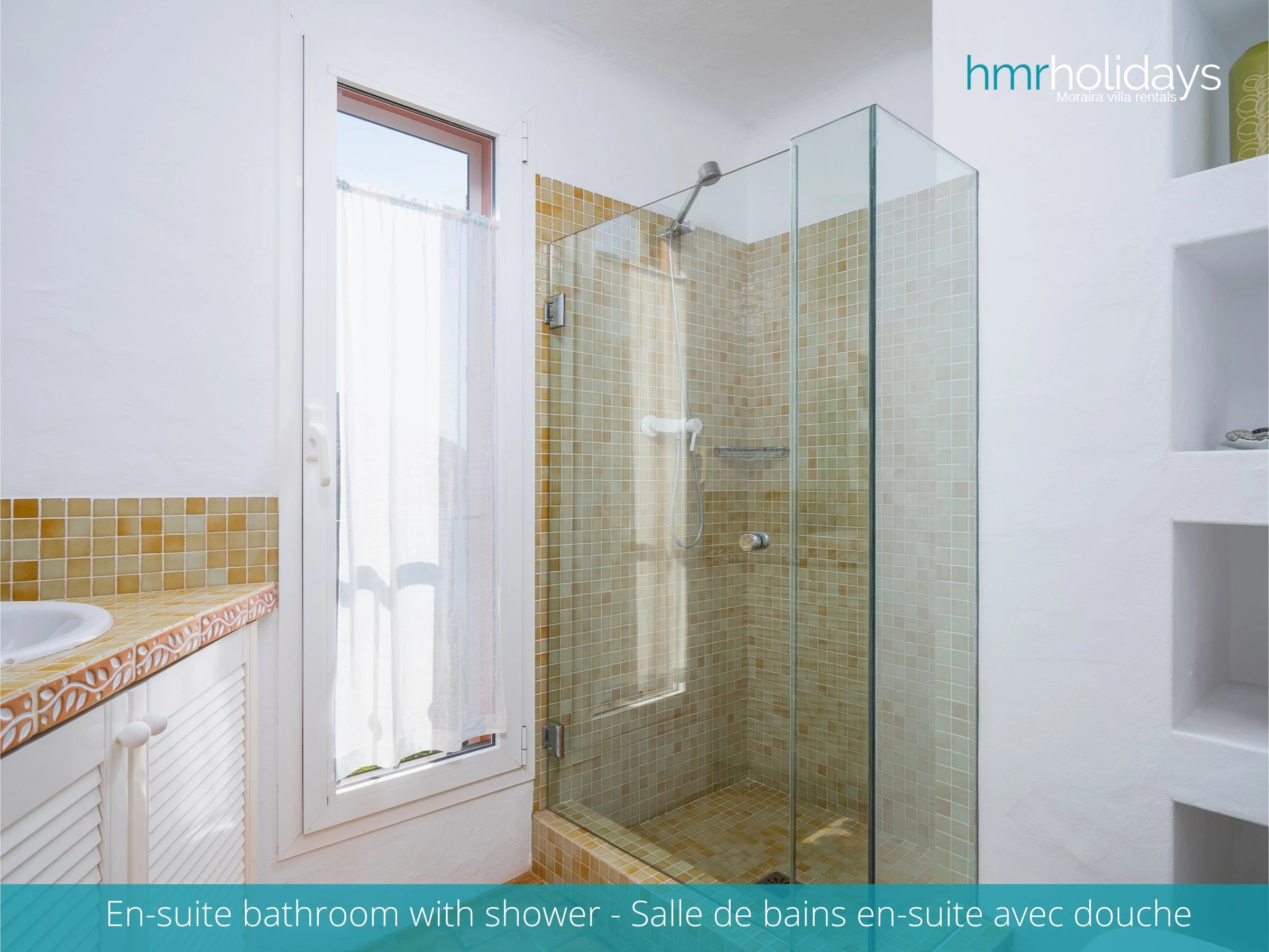Una escalera de caracol conduce desde el piso principal a la suite principal con aire acondicionado (cama king size y baño en-suite) y la amplia terraza privada en la azotea. Hay asientos para diez personas en la terraza de la azotea y asientos para al menos seis personas. La terraza está parcialmente sombreada con una "vela-sombrilla" y también hay un gran toldo automático que puede cubrir la zona de asientos del salón si es necesario. La terraza también tiene una zona de "cocina" independiente con fregadero, nevera y una secadora. También hay una gran barbacoa de gas para cenar al aire libre. Se pueden tener vistas espectaculares de la bahía mientras se disfruta de un sundowner desde su propio punto de vista privado.