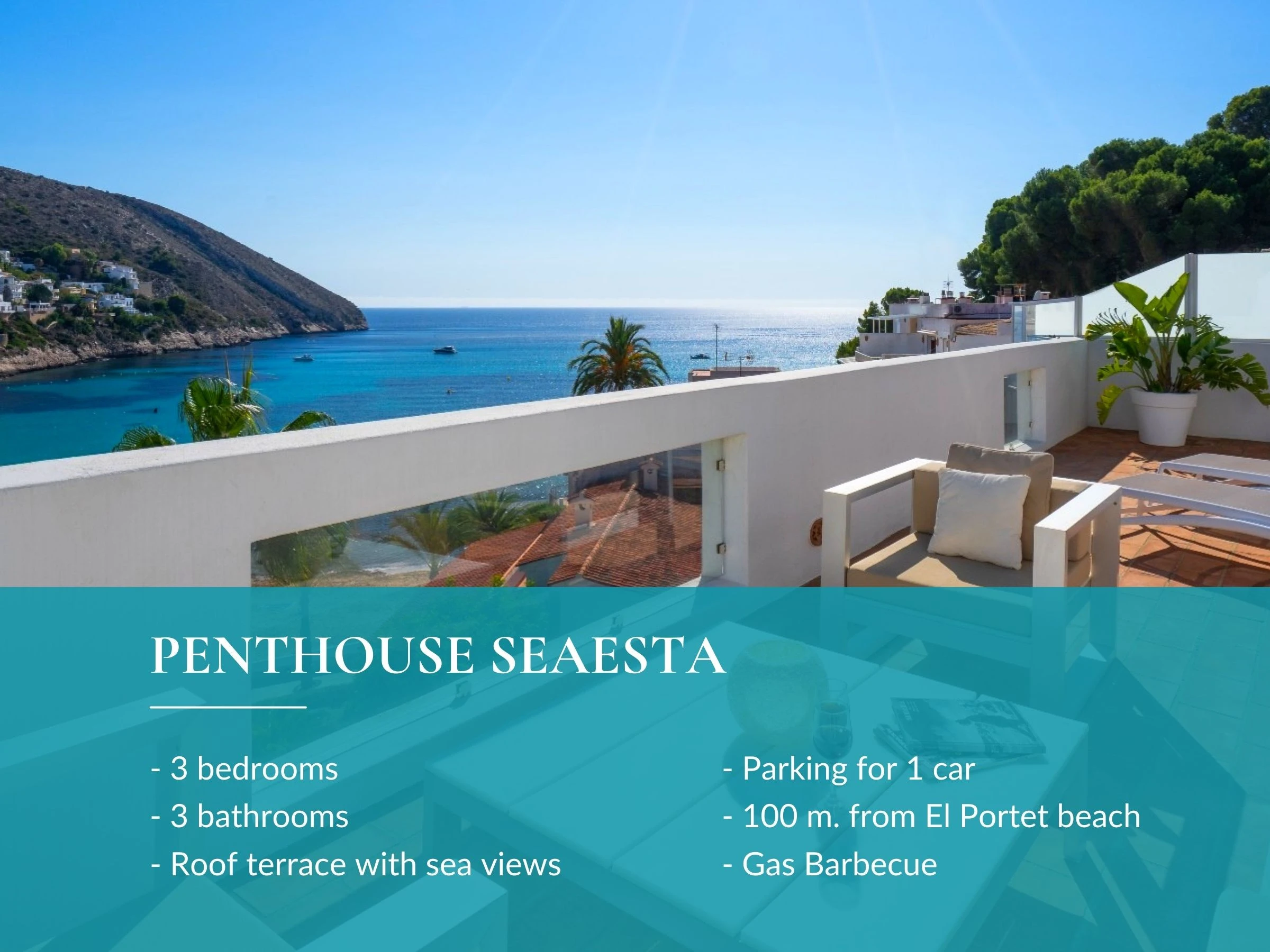 Tres dormitorios, tres baños, lujoso ático dúplex a un paso de la playa de El Portet. La playa y el mar Mediterráneo están a solo unos pasos de distancia y el centro de la ciudad de Moraira está a un tranquilo paseo de diez minutos donde se pueden encontrar fabulosos restaurantes y bares.