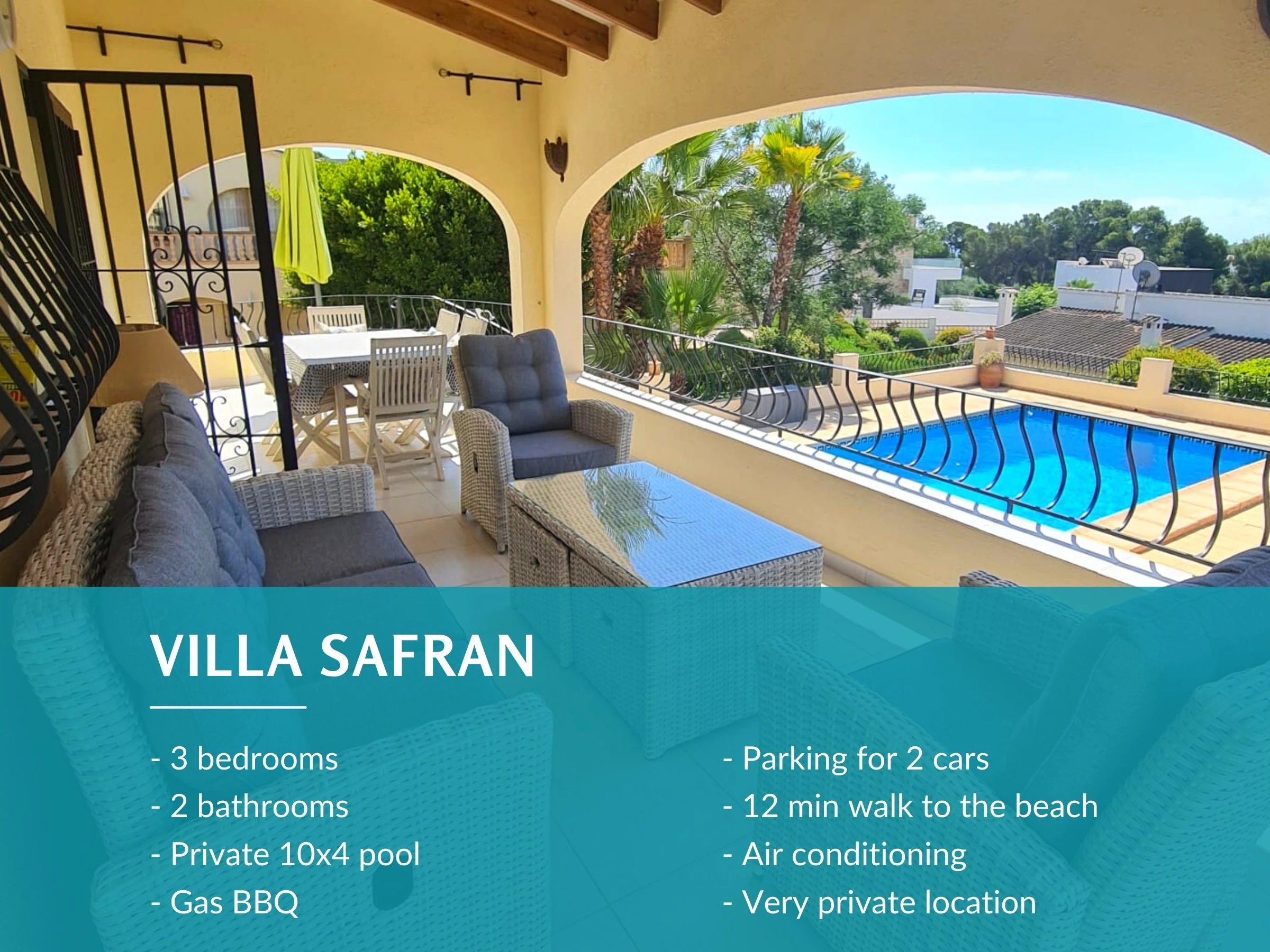Al salir, descubrirá una piscina privada y una zona de relax, donde podrá disfrutar del sol, darse un refrescante baño o simplemente relajarse con un buen libro. La zona de barbacoa y comedor al aire libre ofrece el entorno perfecto para cenar al fresco, permitiéndole disfrutar del cálido clima mediterráneo y el hermoso entorno mientras se deleita con una deliciosa comida. La villa también cuenta con estacionamiento privado, lo que garantiza un lugar seguro y protegido para estacionar su automóvil durante su estadía.
