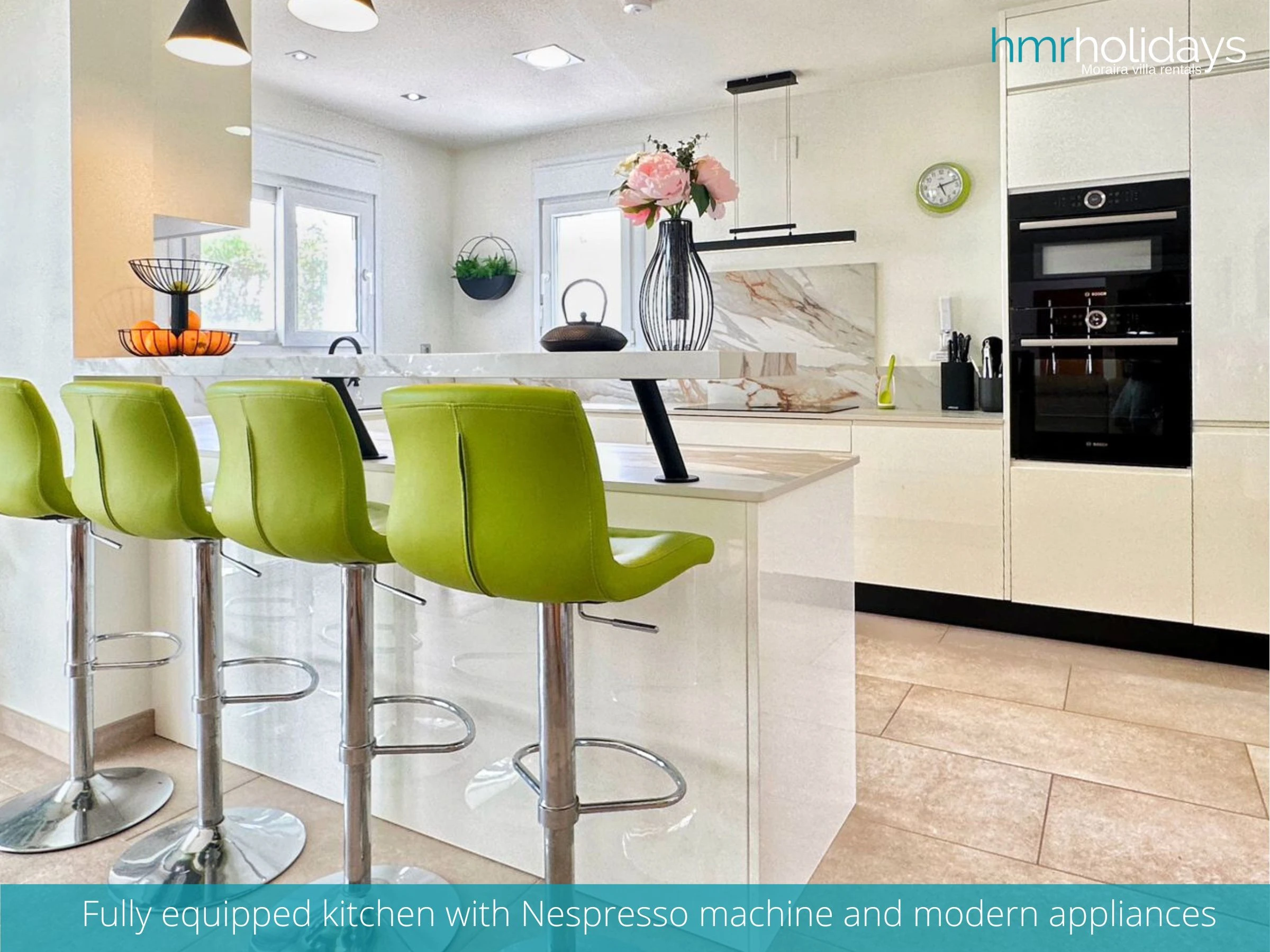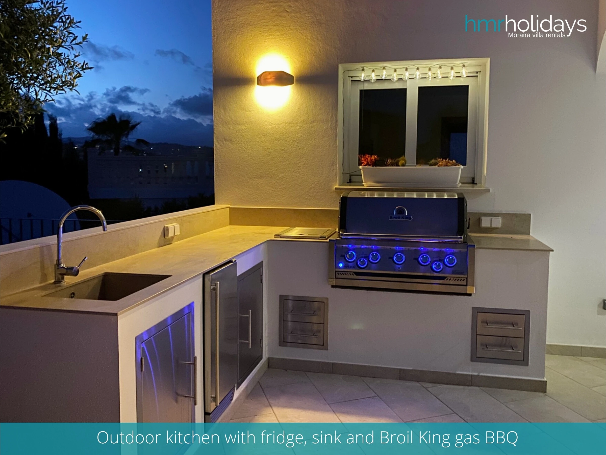 El punto destacado de nuestra villa es, sin duda, el fantástico espacio exterior. Salga y descubra su propio oasis privado, completo con una reluciente piscina rodeada de exuberantes jardines mediterráneos adornados con fragantes árboles de naranja y limón. Para aquellos que aman cocinar y entretener, nuestra villa cuenta con una barbacoa de gas Broil King y una cocina exterior, perfecta para preparar deliciosas comidas.