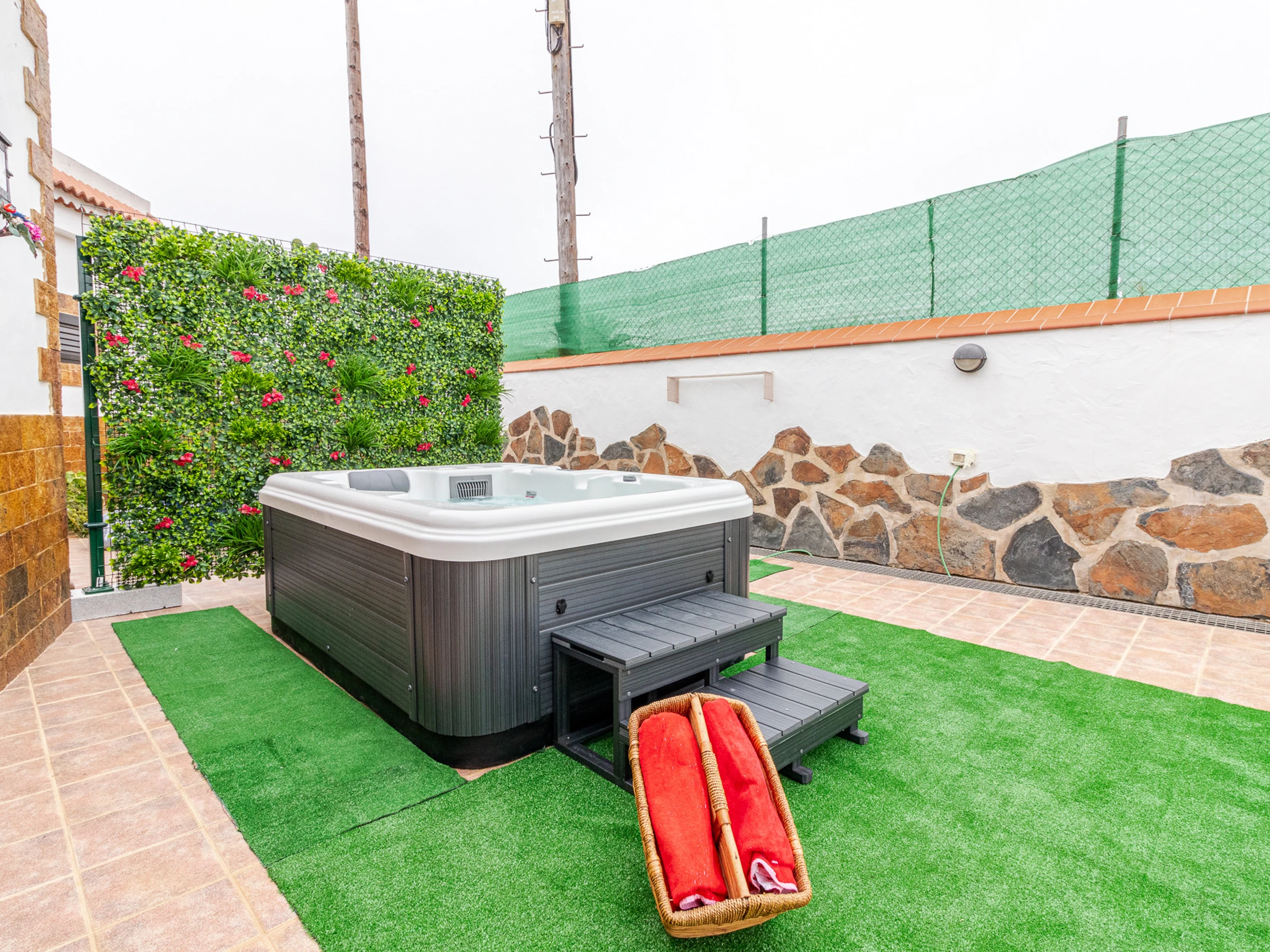 Desde su espaciosa terraza con 20 m², se puede disfrutar cómodamente no solo del entorno en el que se sitúa el alojamiento, sino de un relajante y moderno jacuzzi.