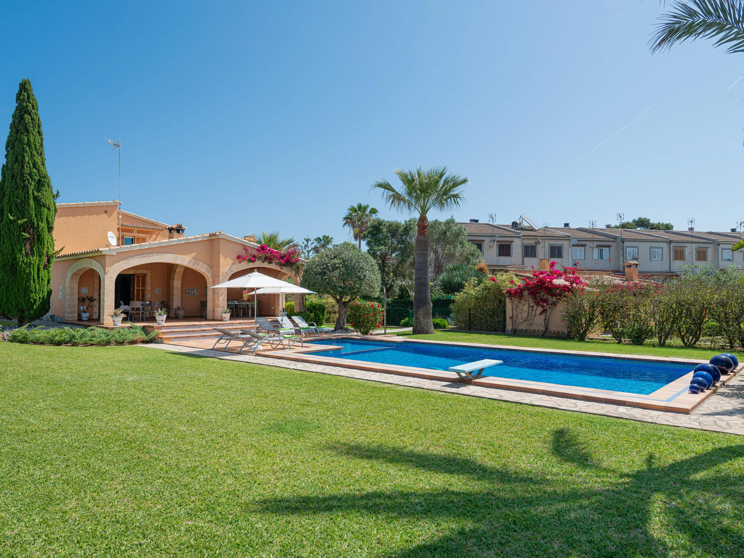 El maravilloso jardín de la propiedad es ideal para disfrutar del clima mediterráneo. En él encontrarán una piscina de sal de 8mx5m cuya profundidad varía entre 0.8m y [hidden]m y que, además, tiene una zona infantil de 3mx3m. También en el exterior de la villa encontrarán tumbonas en las que relajarse mientras toman el sol, una barbacoa y un porche con varias mesas en las que disfrutar de inolvidables momentos junto a sus acompañantes. La propiedad está vallada y hay vecinos cerca.
