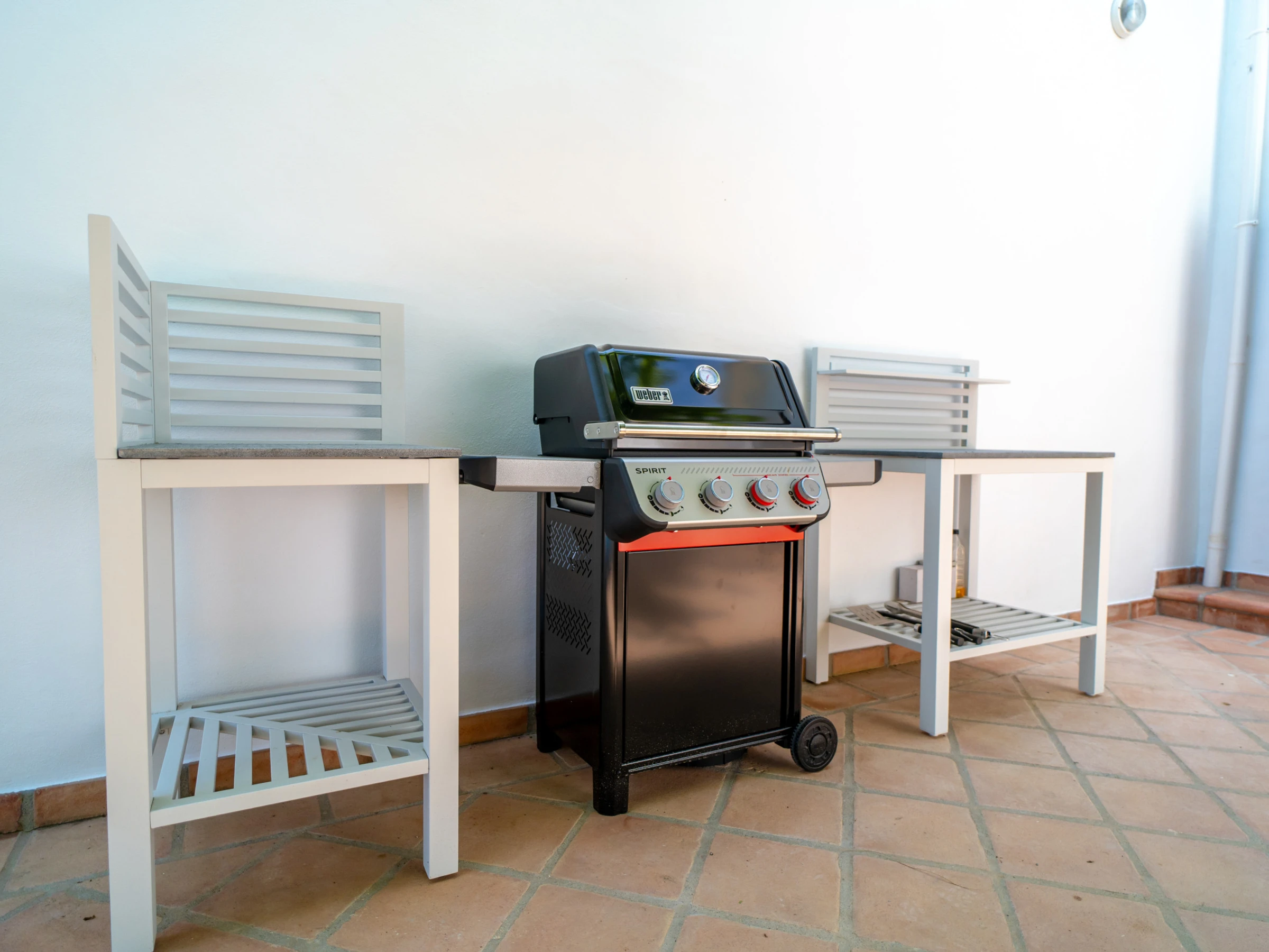 La planta baja ofrece una cocina amplia y totalmente equipada con todos los electrodomésticos, además de una acogedora zona de descanso. Desde aquí se accede directamente a la joya de la casa: una terraza de 200 m² con piscina privada, ducha exterior, zona de comedor, lounge con hamacas, barbacoa y orientación suroeste, perfecta para disfrutar del sol de la tarde y de puestas de sol inolvidables.