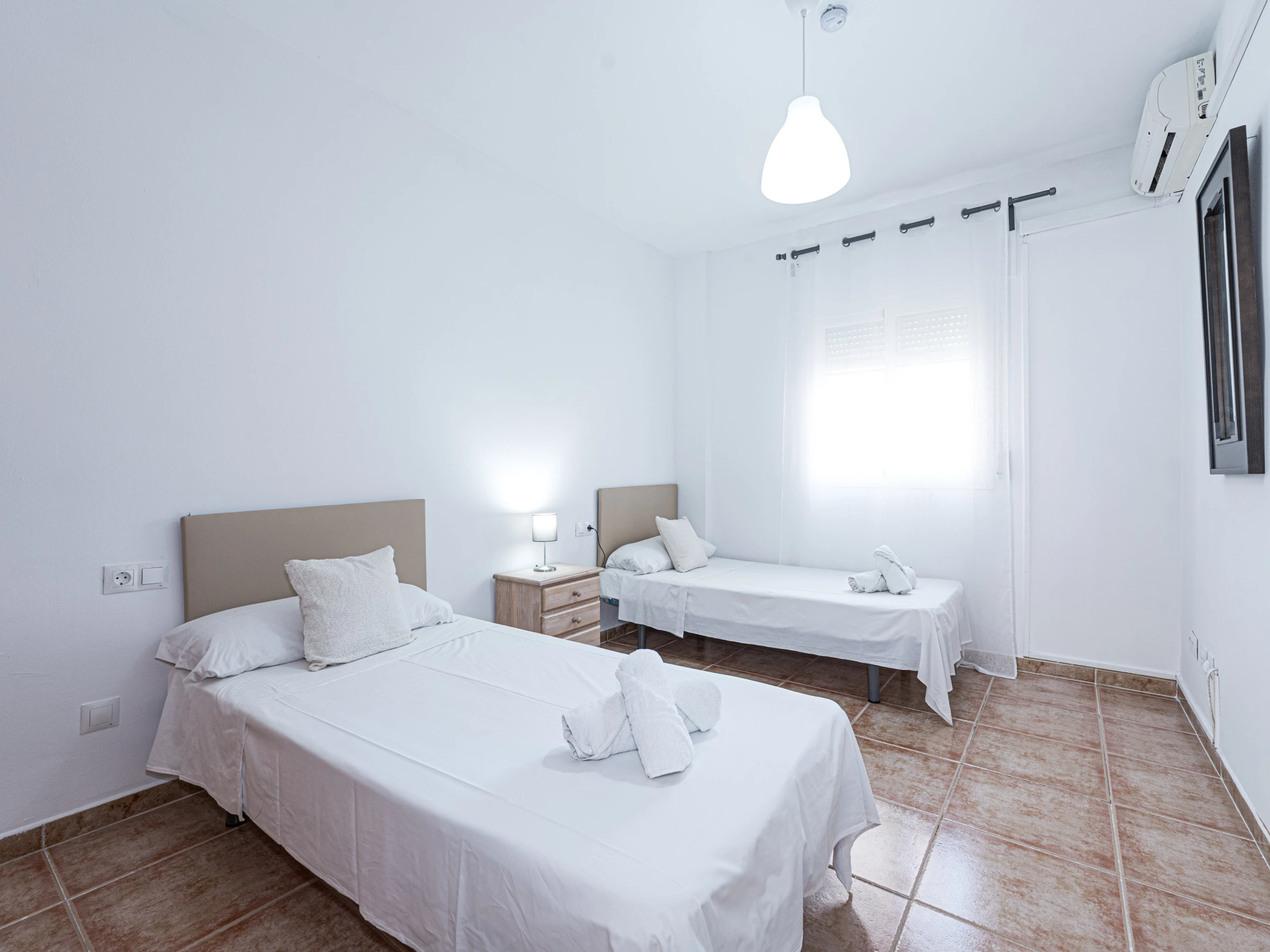Con capacidad para 4 personas, este bonito apartamento tiene 2 dormitorios, uno con cama king size y otro con dos camas individuales, perfecto para familias o parejas que viajan juntas y buscan comodidad, espacio y estilo.