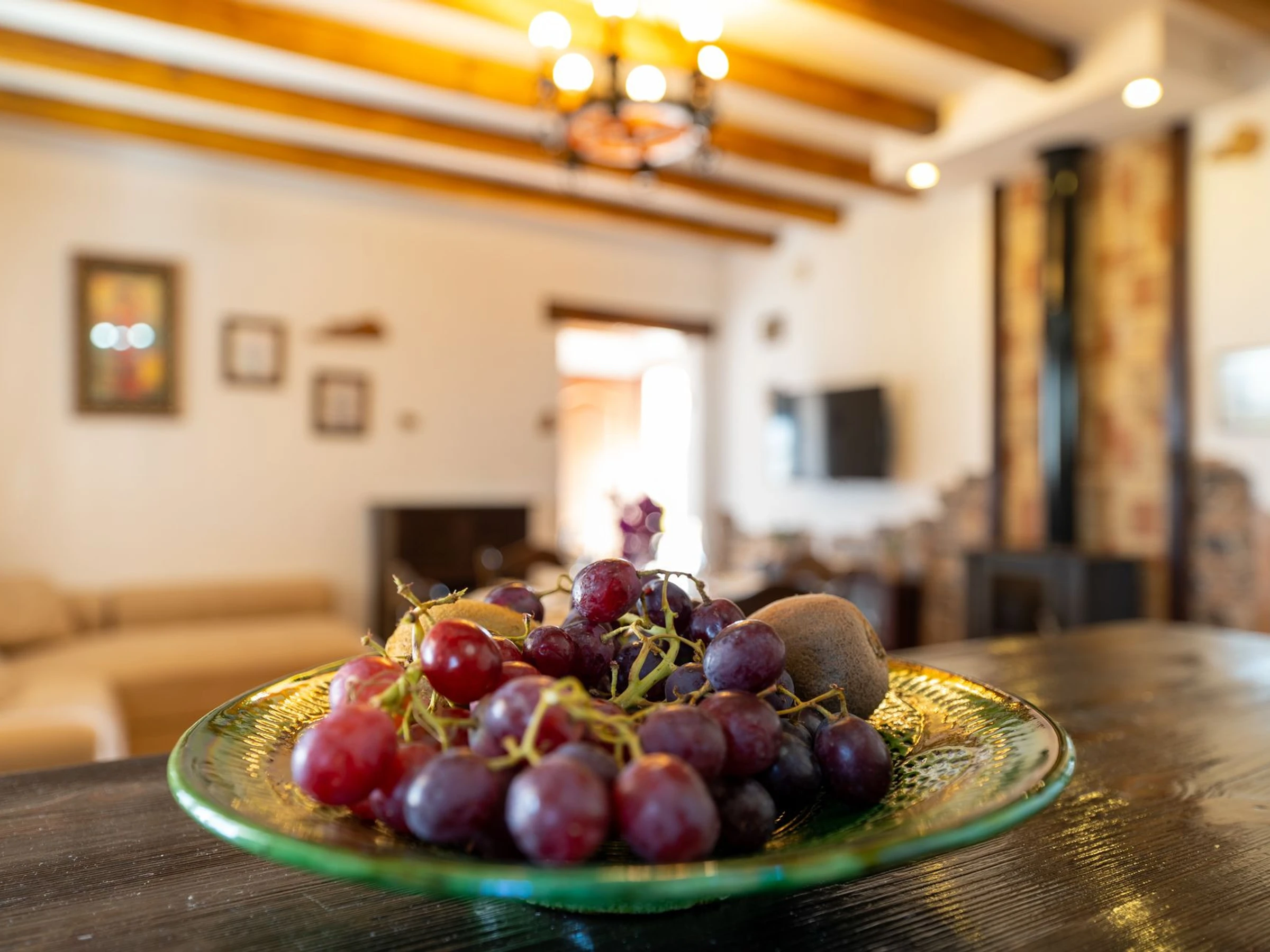 El interior, con ambiente rústico y confortable. El salón/comedor tiene un sofá, estufa de leña, televisión por satélite y DVD. Una barra para tomar los desayunos separa la cocina del salón y viene completamente equipada con vitro cerámica (2 fuegos), frigorífico/congelador, microondas, horno y lavavajillas. El dormitorio tiene cama de matrimonio y un baño completo. La lavadora esta situada en otro cuarto.