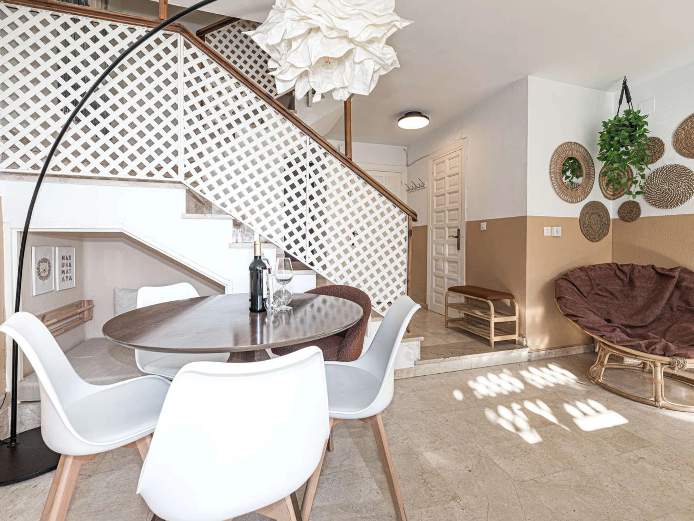 La Propiedad: Dúplex distribuido en dos plantas con excelente luz natural. Consta de 2 dormitorios (el principal con cama de matrimonio y balcón; el segundo con dos camas individuales) y 2 baños (uno con bañera en la planta superior y otro con ducha en la inferior). La cocina es amplia, moderna y funcional. El salón-comedor actúa como el corazón de la casa, ofreciendo sofá confortable, un rincón de juegos y una selección de libros y juegos de mesa pensados para el ocio adulto.