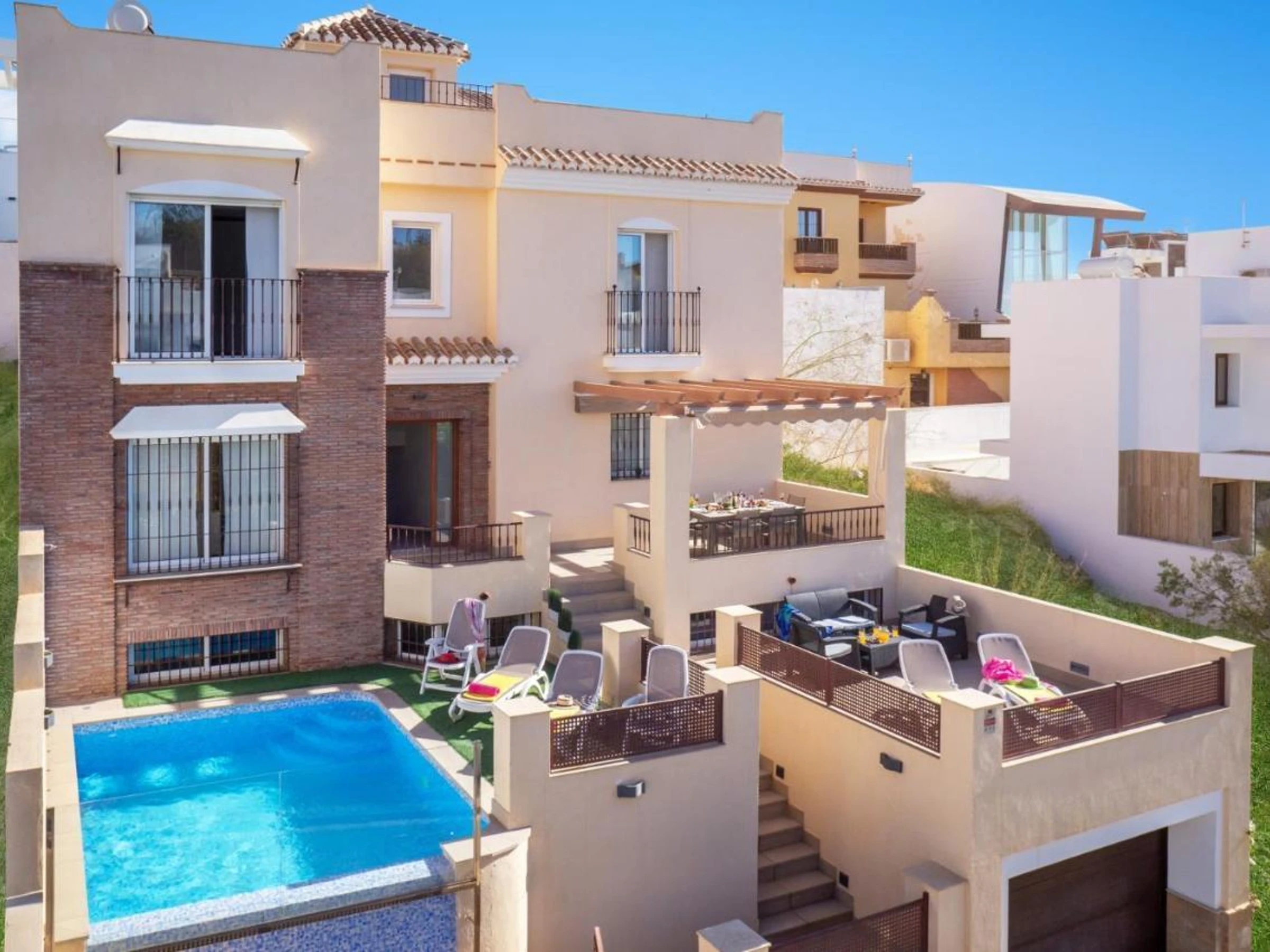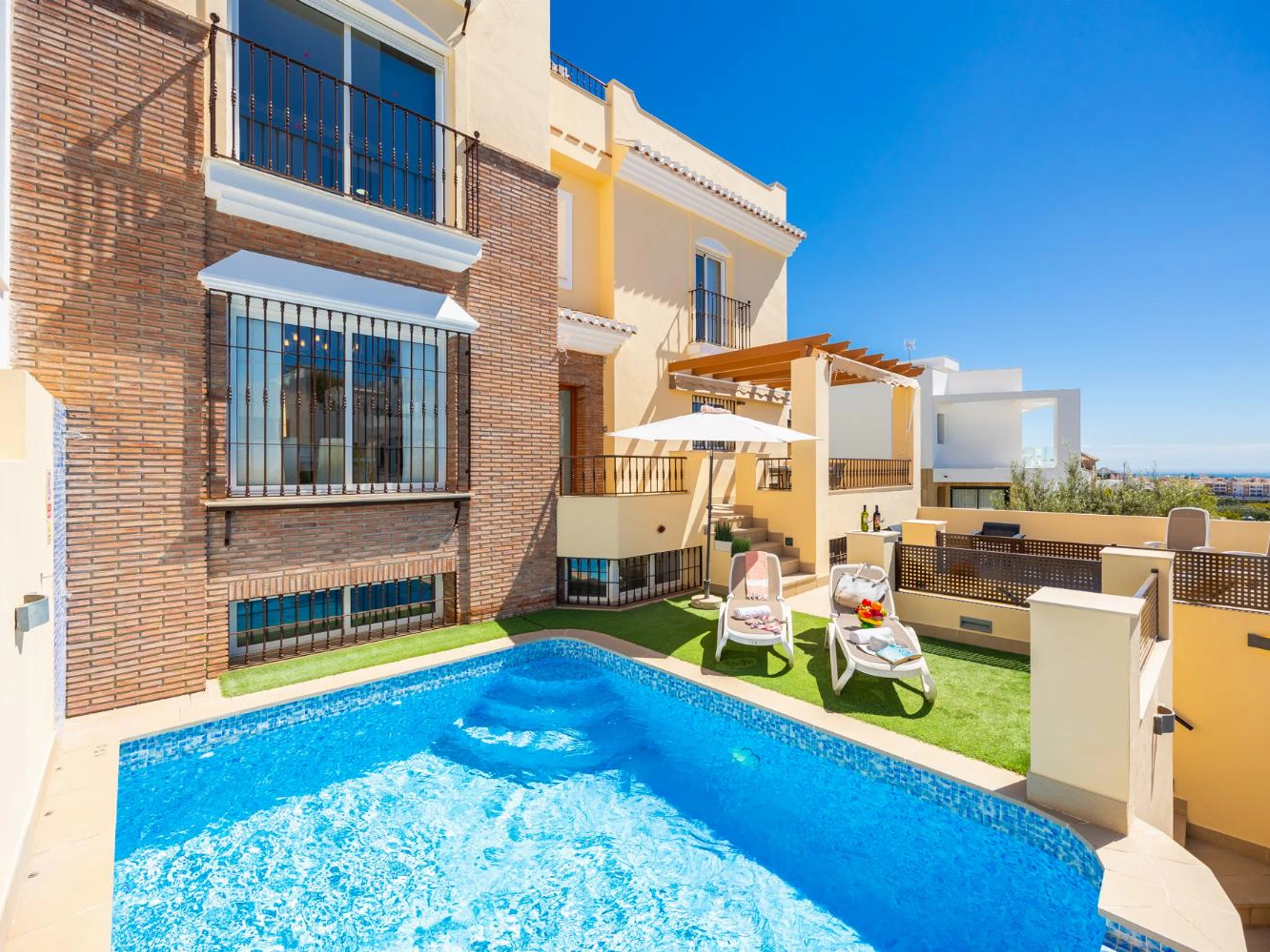 La villa en Nerja posee 3 dormitorio(s) y capacidad para 6 personas.