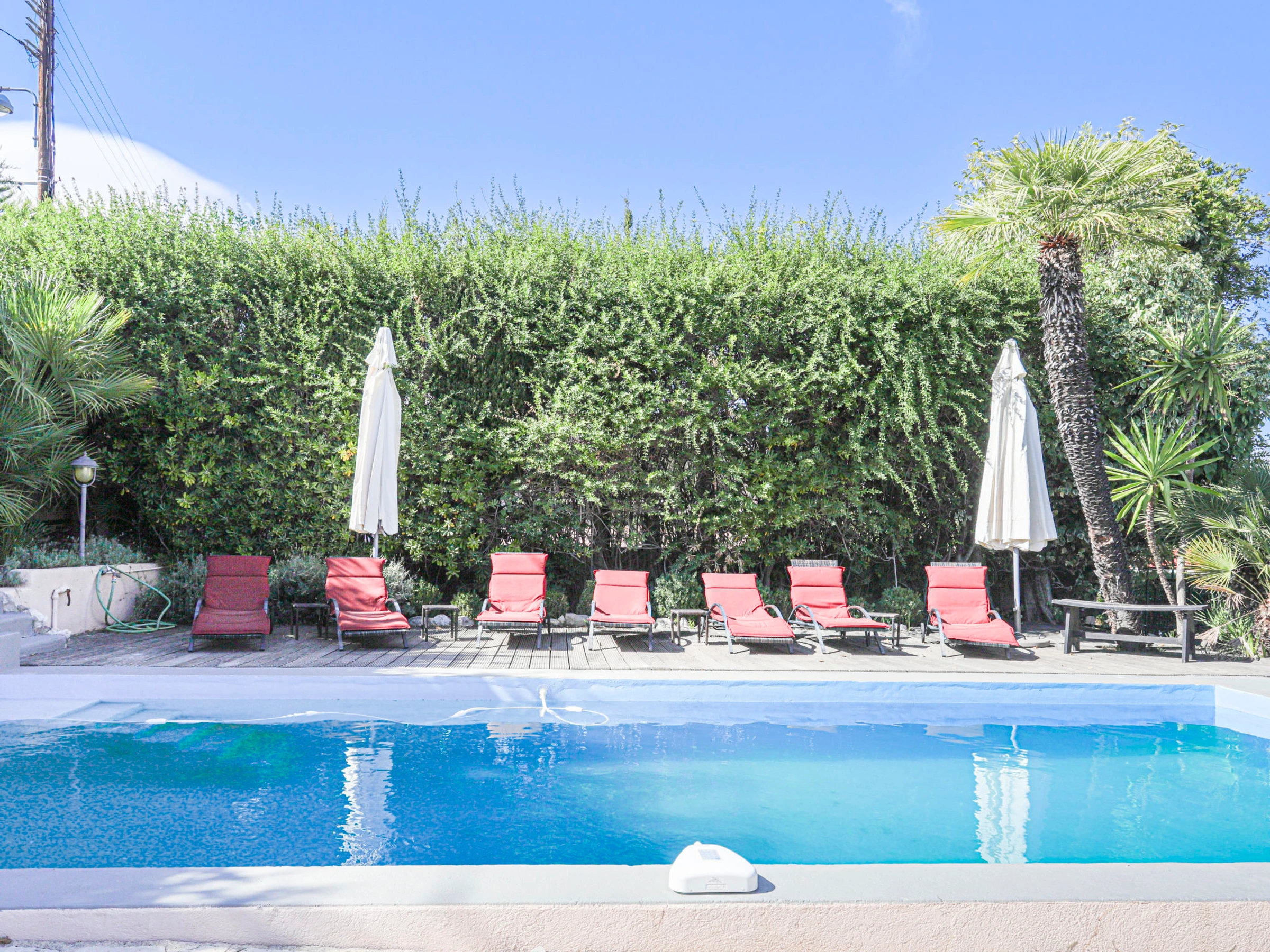 Casa "Les Genêts", muy bonita, agradable, confortable de 2 plantas, rodeada de árboles. Por encima Nice-Ouest, en el barrio de Haut de Magnan, lugar aislado, tranquilo, soleado en un barrio residencial, a 7.5 km del mar, a 7.5 km de la playa. Privado: terreno 1'000 m2 (vallada), piscina (9 x 4 m, 150 cm de profundidad, Disponible por temporada: [hidden] - [hidden] con alarma. Terraza, mantenimiento de la piscina a través del propietario/jardinero. Aparcamiento (para 2 coches) en el mismo terreno. Supermercado 4.5 km, centro comercial 7.2 km, restaurante 1 km, panadería 5.5 km, parada autobús "La Colle" 750 m, estación de tren "Nice-Ville" 6.6 km, playa de piedras "Plage Magnan" 6.8 km. Campo de golf (9 hoyos) 14 km. Atracciones en los alrededores: Place Massena 8.4 km, Vieux Nice 8.6 km, Promenade du Paillon 8.2 km, Chateau de Nice 11.2 km. A tener en cuenta: coche recomendable. El propietario no acepta grupos de adolescentes/jóvenes. Aeropuerto 12.1 km de la casa.