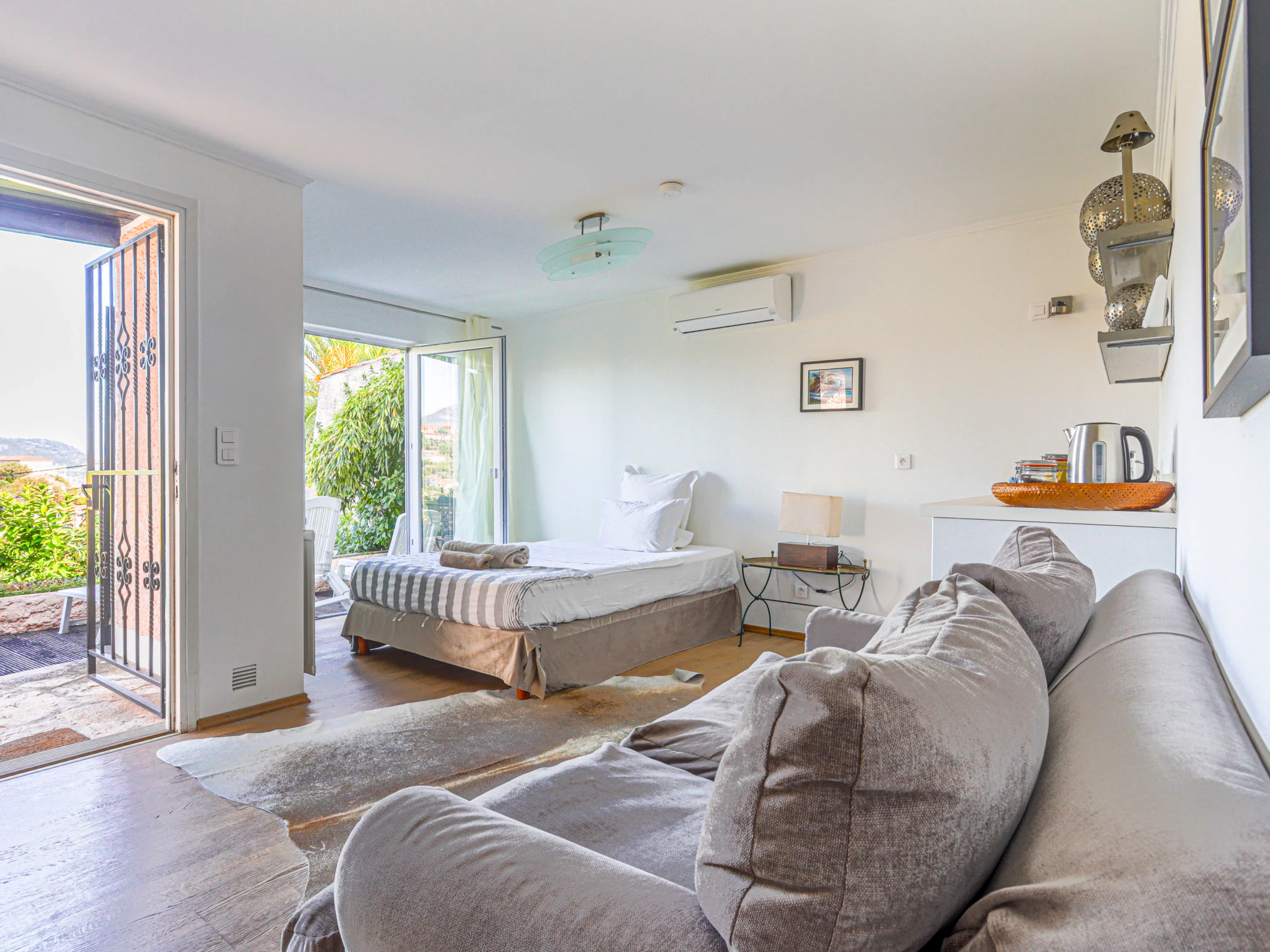 "Les Genêts", villa 6 estancias 170 m2 en 2 plantas. Espacioso y luminoso, con mobiliario confortable y bonito: salón-comedor grande con ventanal con chimenea (sólo con función decorativa), mesa de comedor, TV, pantalla plana, aire acondicionado, bomba de calor, caliente y persianas eléctricas. Salida al jardín, a la terraza, a la piscina. 1 dorm., grande con 1 cama doble (180 cm, 200 cm de longitud), ducha/WC y aire acondicionado. Salida al balcón. Estudio con 1 cama doble (180 cm, 200 cm de longitud), rincón cocina, ducha/WC y aire acondicionado. Salida a la terraza. Cocina-comedor (horno, lavavajillas, 5 fuegos, tostadora, hervidor de agua eléctrico, microondas, congelador, cafetera eléctrica, Cápsulas de café (Nespresso) extra). WC separado. En planta inferior: (escalera de caracol) 1 dorm. con Vestidor con 1 cama de matrimonio (180 cm, 200 cm de longitud), aire acondicionado. 1 dorm. con 1 cama doble (160 cm, 200 cm de longitud), aire acondicionado. Ducha/WC. Calefacción de gas, aire acondicionado. Terraza grande. Muebles de terraza, tumbonas (8). Vista panorámica al mar, a la localidad y al pueblo. El alojamiento dispone de: lavadora, secadora, caja fuerte, plancha, secador de pelo. Internet (Wifi, gratis). Plaza de aparcamiento (2 Coches). A tener en cuenta: un dormitorio doble está fuera del apartamento. Casa para no fumadores. Detector de humo. Oferta de un particular según el art. 155, IV del CGI. [hidden]