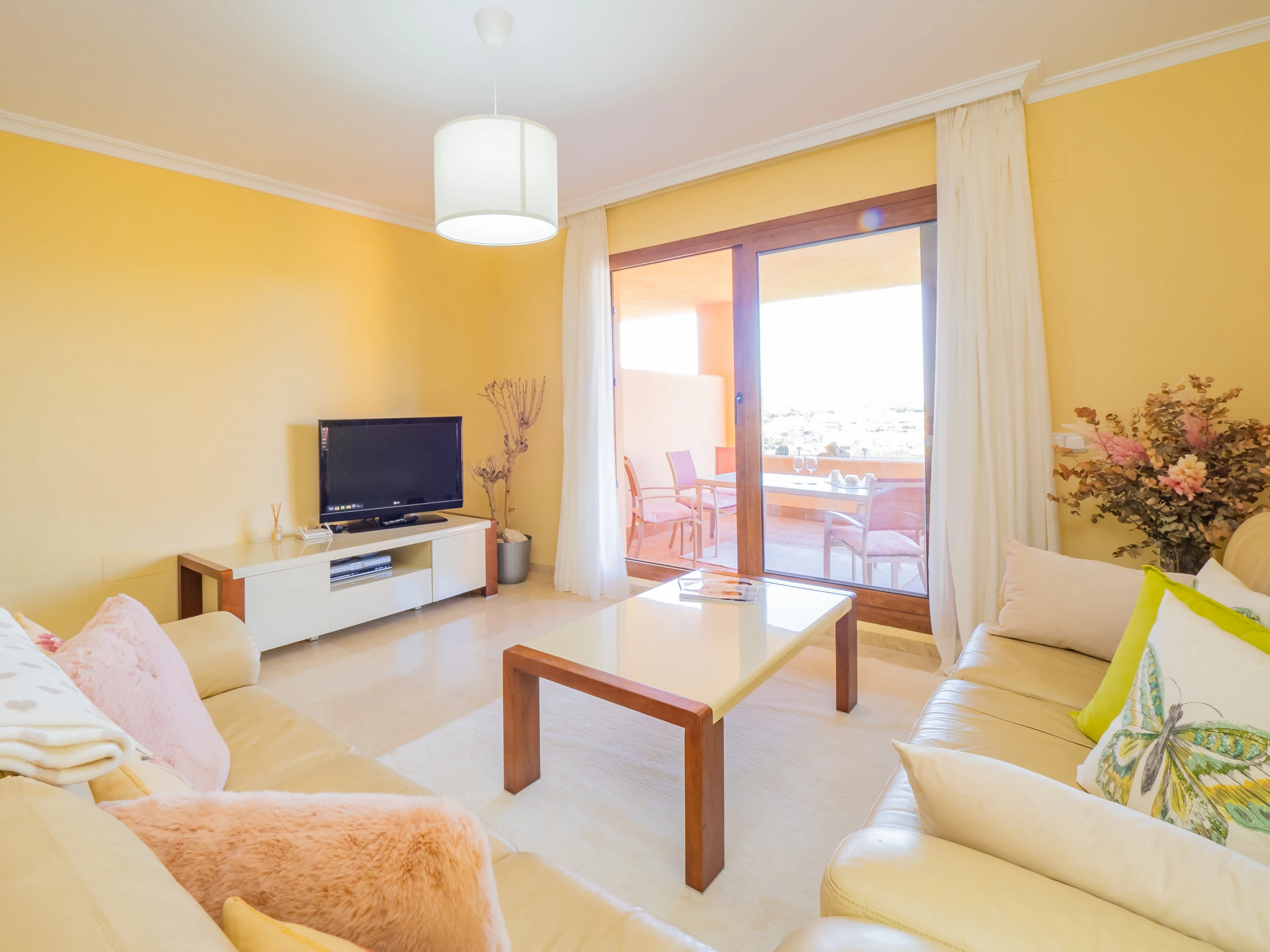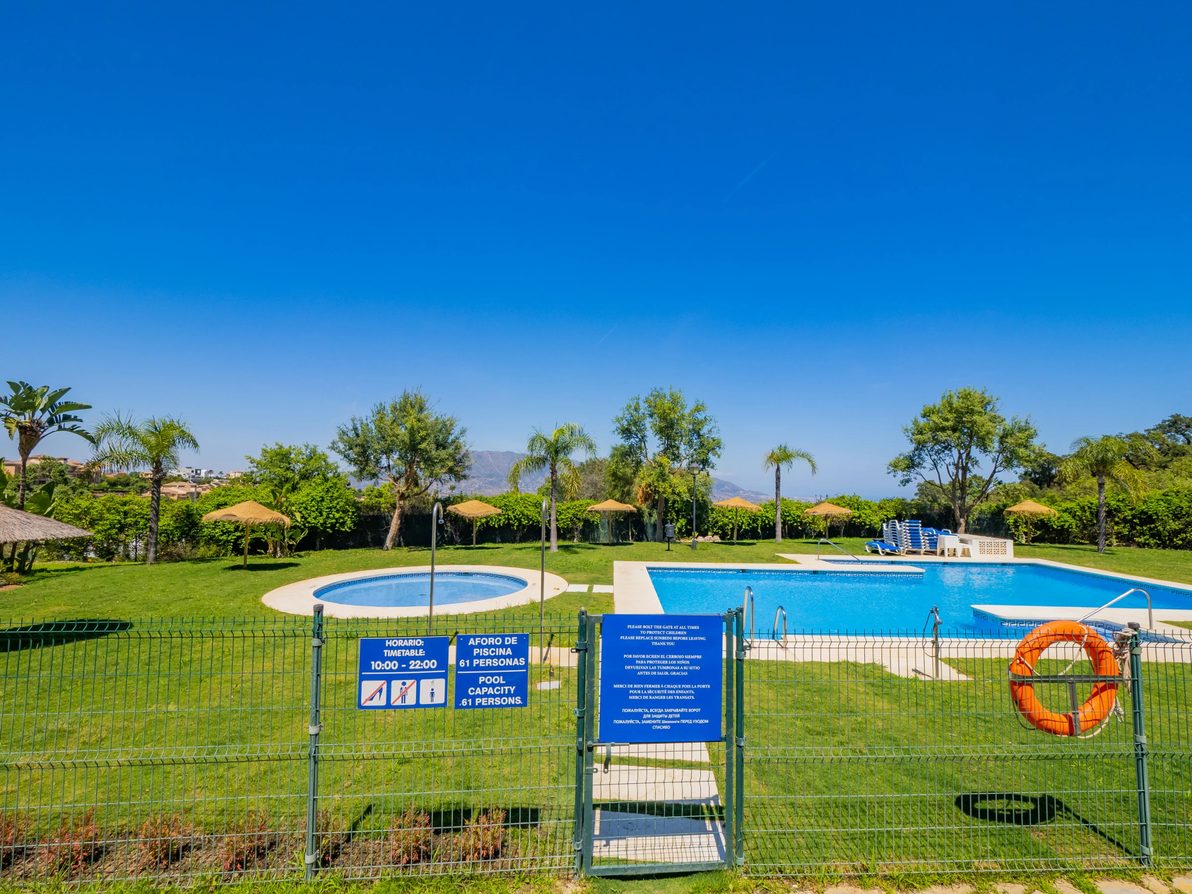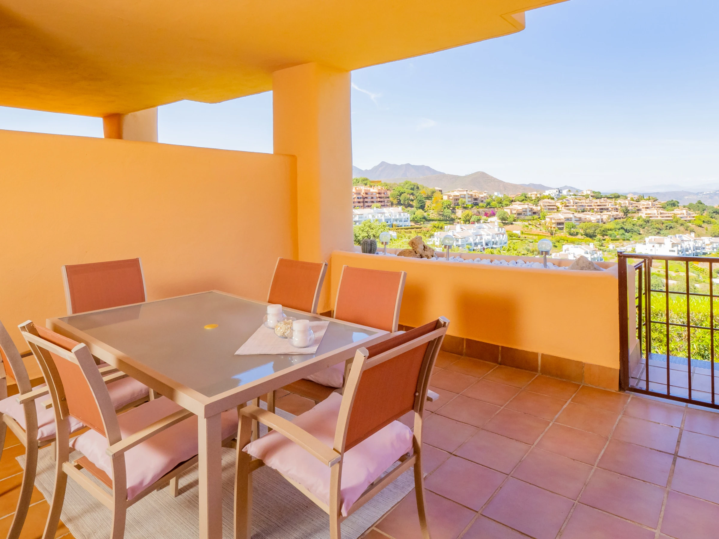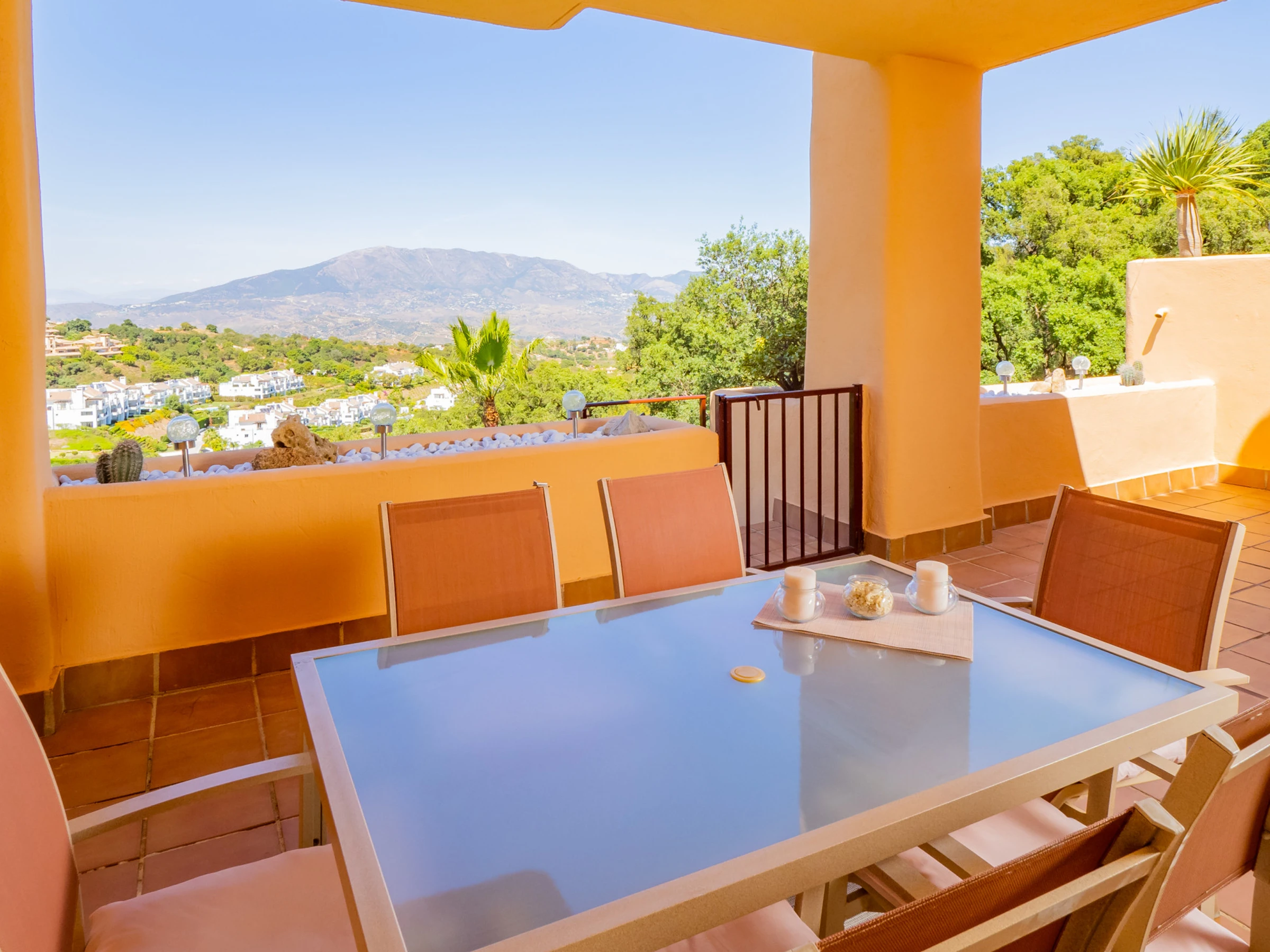 Este apartamento en una urbanización exclusiva en Soto de Marbella ofrece todo lo necesario para unas vacaciones inolvidables. Ubicado dentro de una comunidad tranquila con jardines cuidados, piscina comunitaria, piscina infantil y pista de pádel, el alojamiento permite también acceso al club social, que incluye gimnasio, sauna y pistas de pádel y golf, previa reserva. La piscina es de uso comunitario y su disponibilidad está sujeta a las normas, fechas y horarios establecidos por la comunidad de propietarios, pudiendo variar según temporada o decisiones internas. Podrás disfrutar de la amplia terraza cubierta con vistas a la montaña y al jardín, perfecta para desayunos, almuerzos o cenas en familia, sumergiéndote en un entorno natural y relajante.
