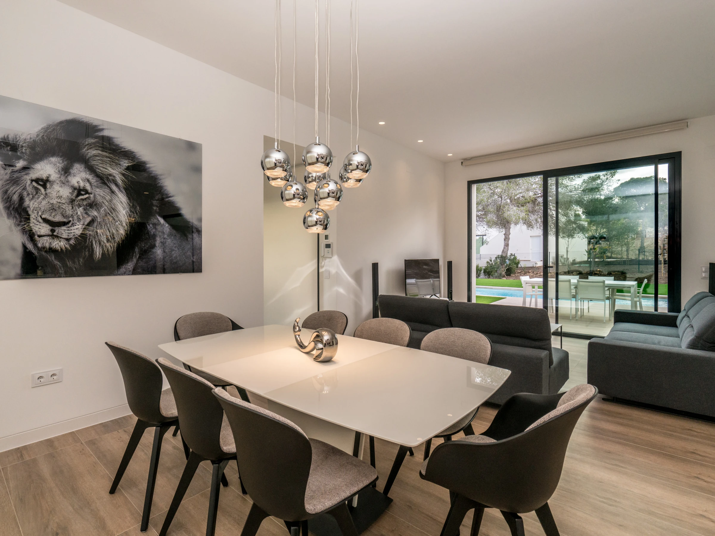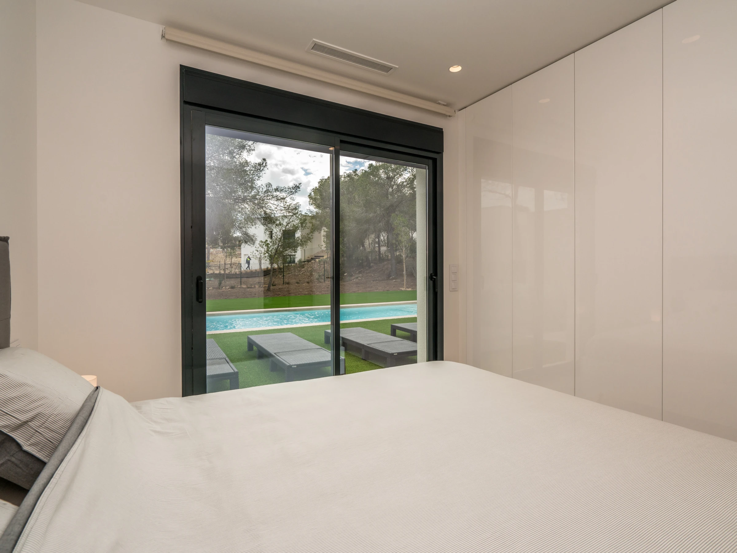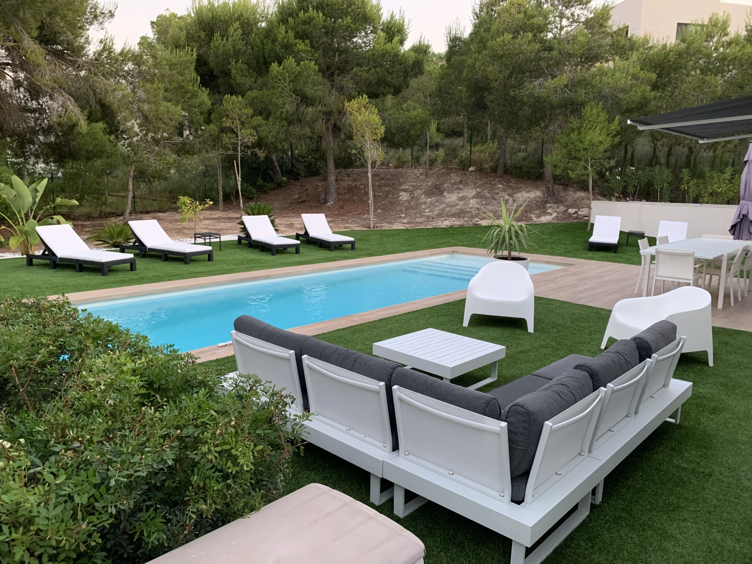 La villa tiene 3 dormitorios y 2 cuartos de baño. El alojamiento ofrece privacidad, un jardín maravilloso con césped y árboles y una piscina climatizada bonita. El confort y la cercanía de sitios para salir, actividades deportivas y lugares para ir de compras hacen de esta villa de lujo un alojamiento perfecto para pasar sus vacaciones en España con su familia, sus amigos y sus mascotas.