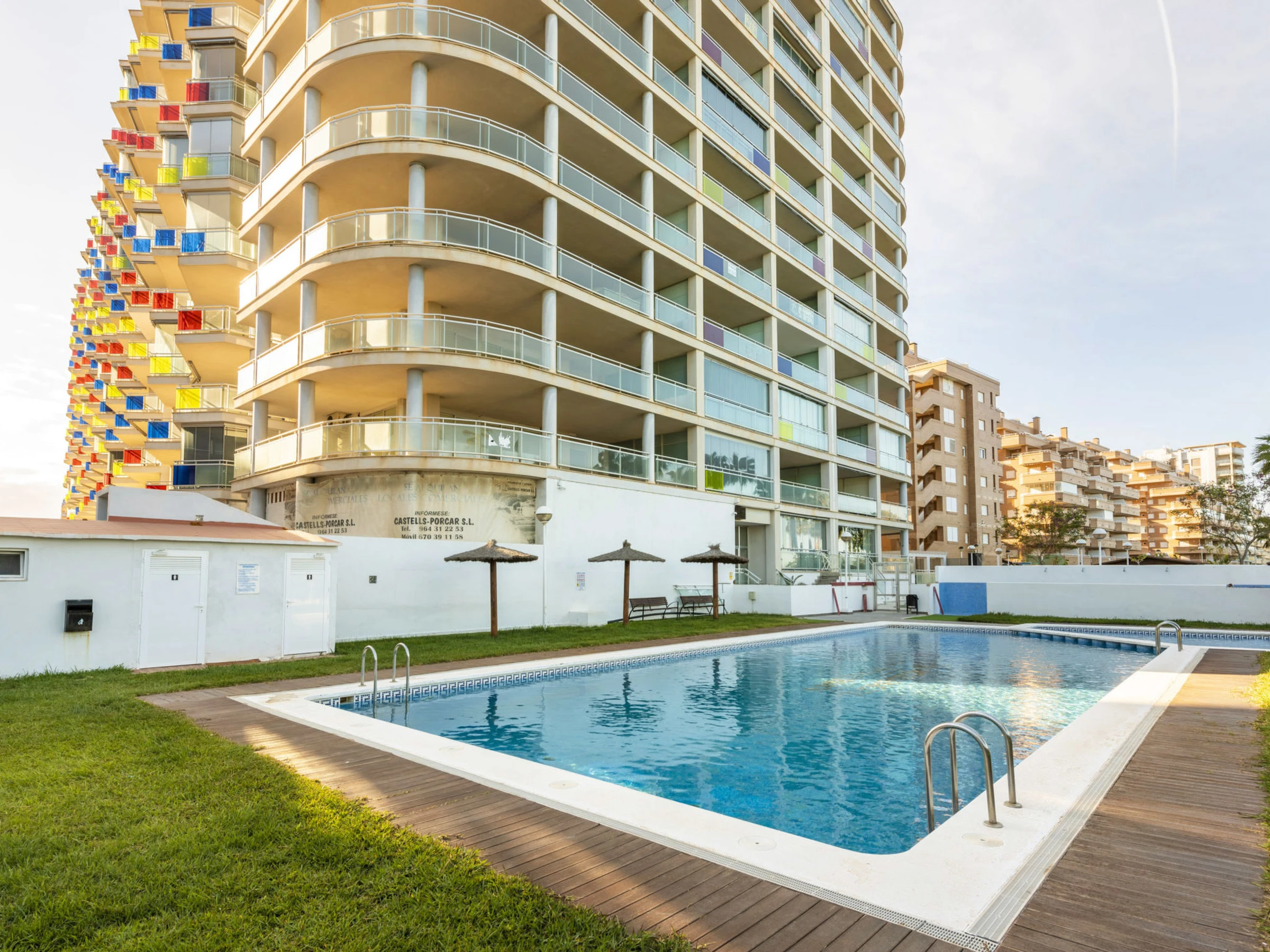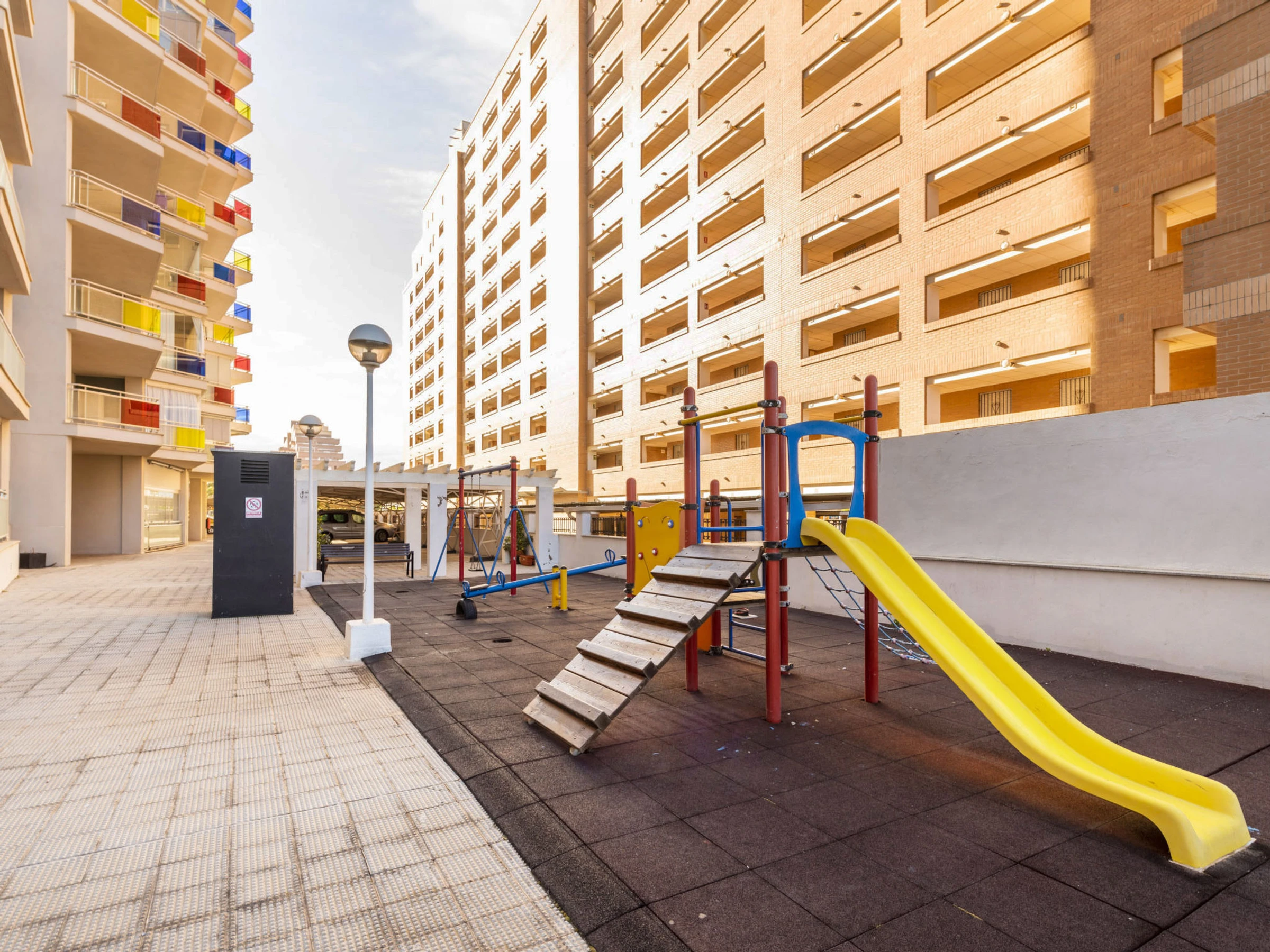 Marina d'Or: Residencia "Mondrian", confortable. Lugar soleado, a 20 m del mar, a 20 m de la playa, cruzando la calle. Comunitario: jardín, piscina rectangular (20 x 10 m, 70 - 270 cm de profundidad, Disponible por temporada: [hidden] - [hidden] horario piscina: 10:00-18:00 y 10:00-22:00). WC en zona de piscina, parque infantil. En el inmueble: sauna, ascensor. Aparcamiento (cubierto) junto a la casa. Aparcamiento/garaje para vehículos pequeños/medios. Tienda de comestibles 100 m, supermercado 500 m, restaurante, bar, café, parada autobús 100 m, estación de tren 2.8 km. Grupos de jóvenes sólo bajo petición. Vecindario muy sensible a ruidos. Se ruega respetar la tranquilidad y normas de buen comportamiento.