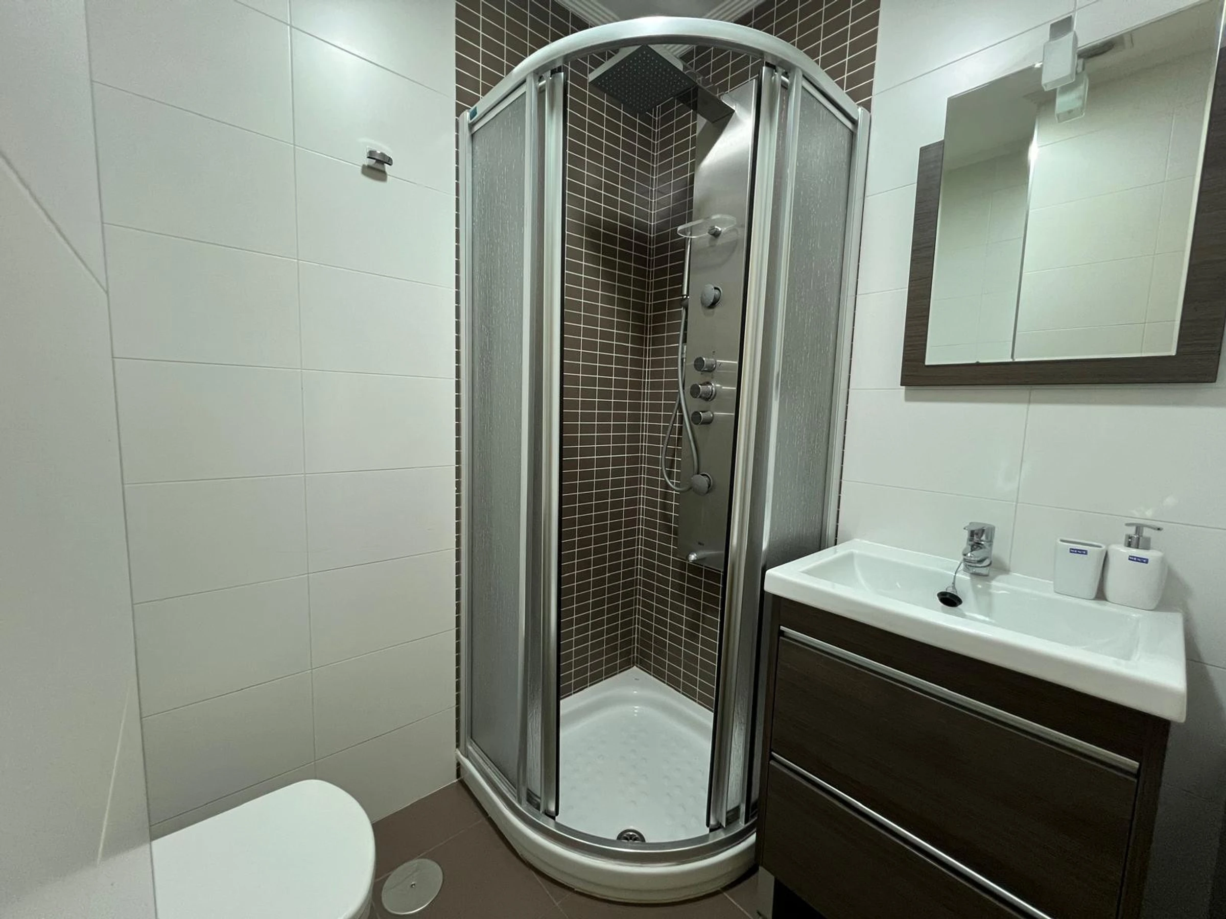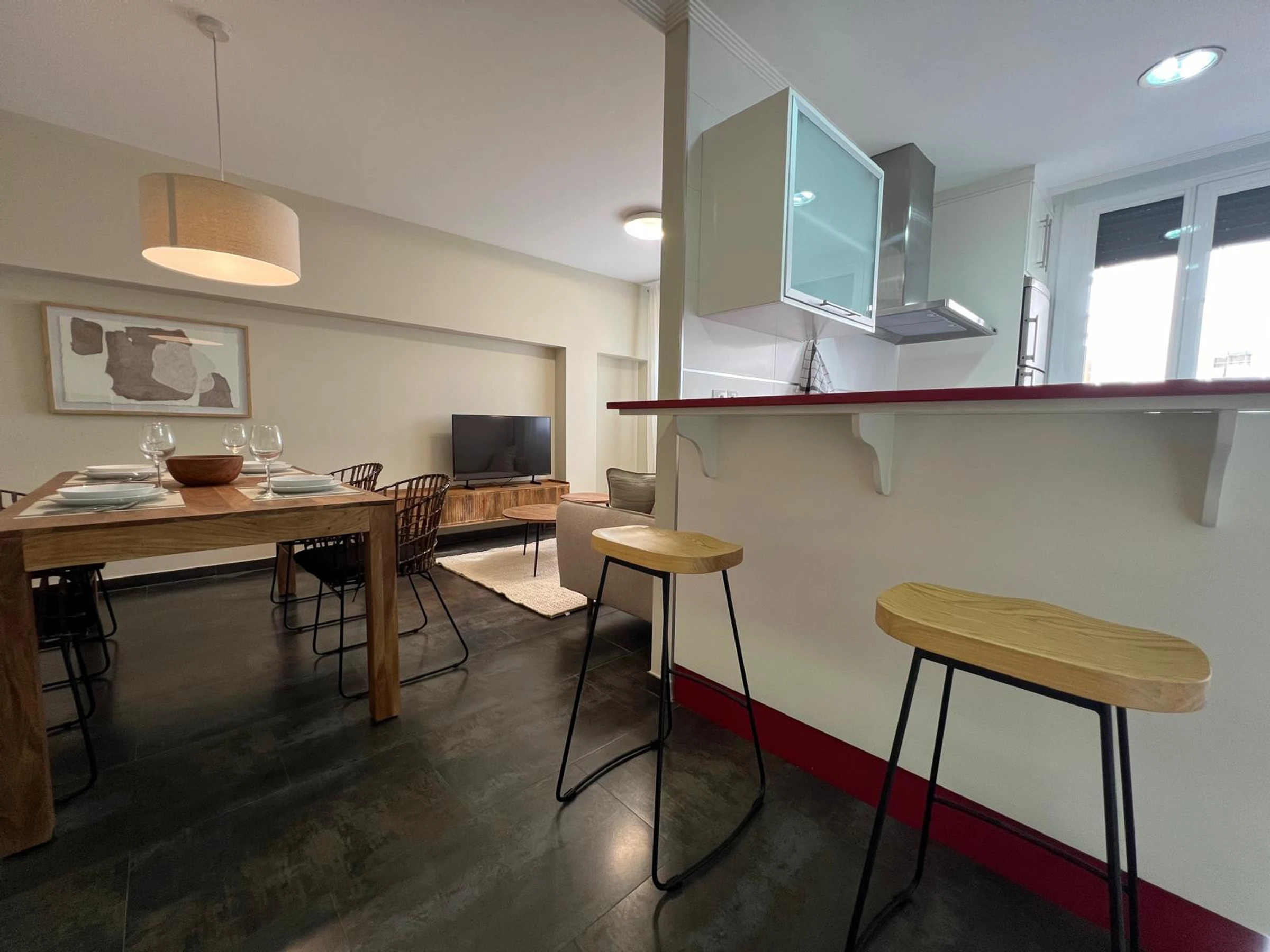 El apartamento cuenta con un luminoso salón-comedor equipado con aire acondicionado, televisión y un cómodo sofá ideal para relajarse después de un día de turismo. La cocina americana, moderna y funcional, está totalmente equipada con nevera, vitrocerámica, cafetera italiana y Dolce Gusto, además de lavadora, aspiradora y plancha, proporcionando todo lo necesario para una estancia sin preocupaciones. Desde la zona de cocina, se accede a una terraza amueblada con vistas a la ciudad, un lugar perfecto para disfrutar de un café al aire libre.