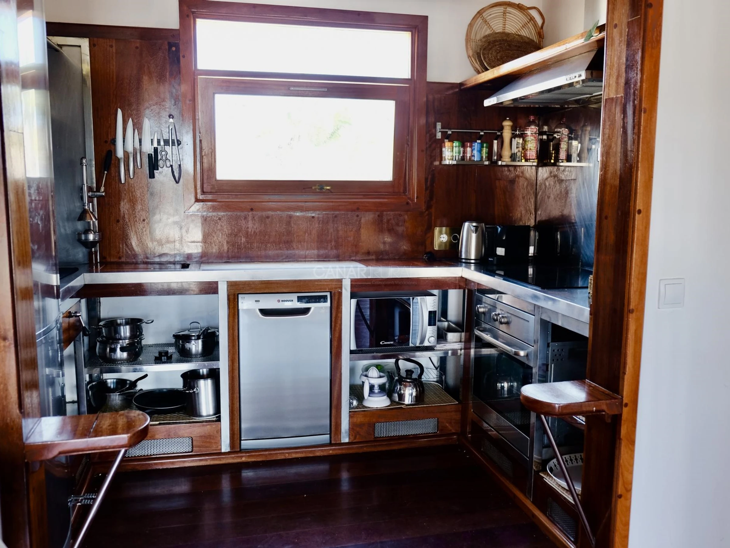 - Cocina totalmente equipada con: vitrocerámica, horno, congelador combinación-nevera, lavavajillas, cafetera y lavadora