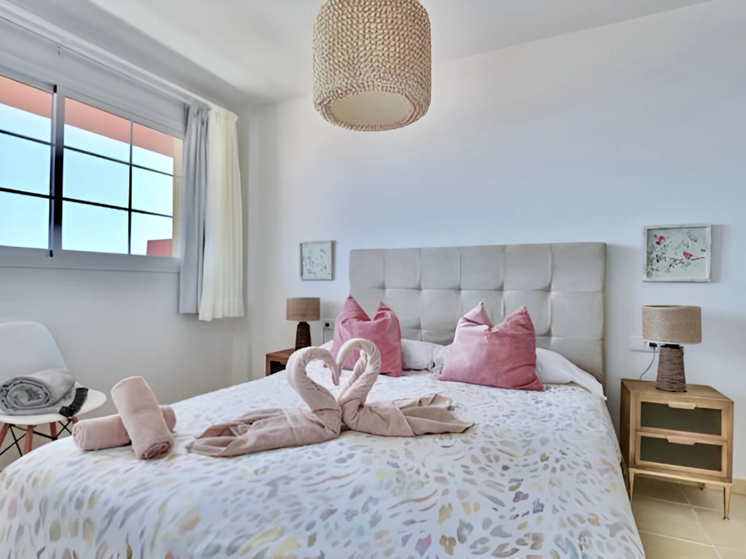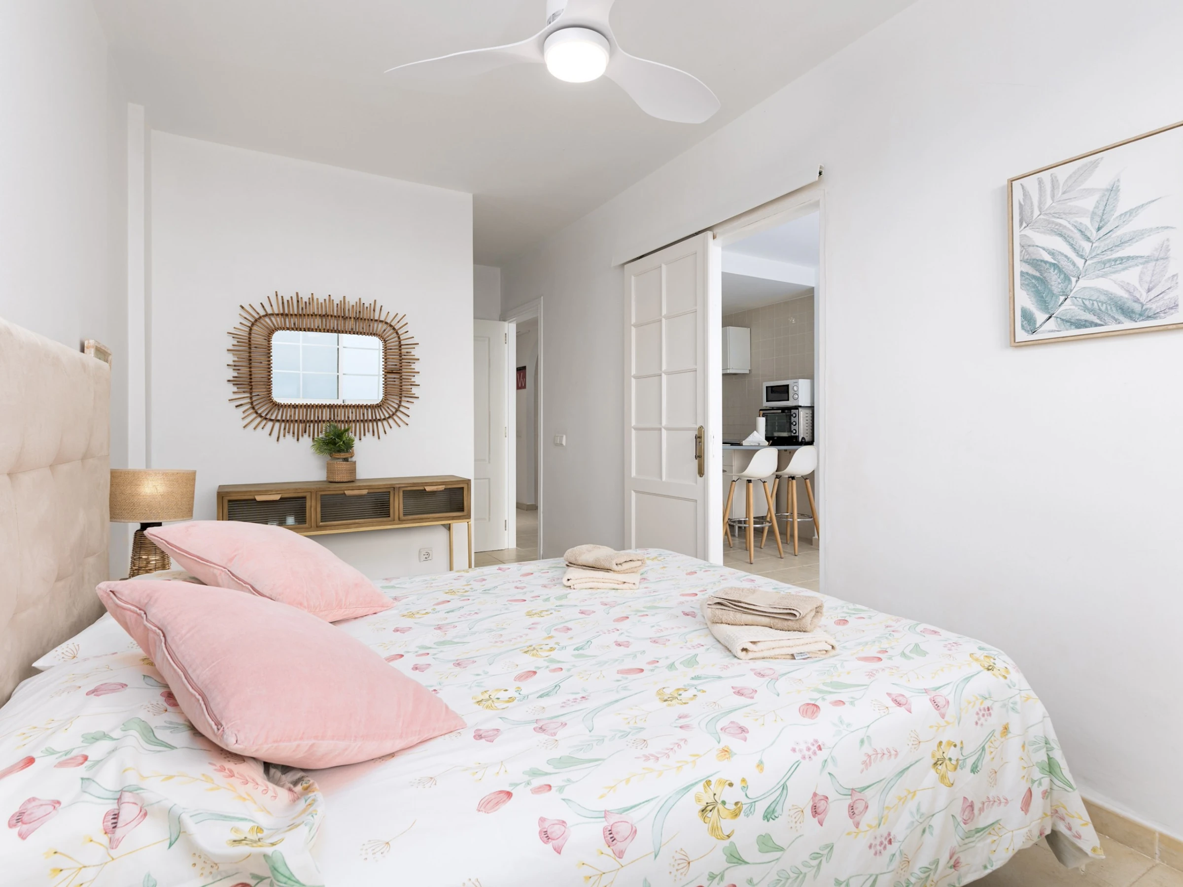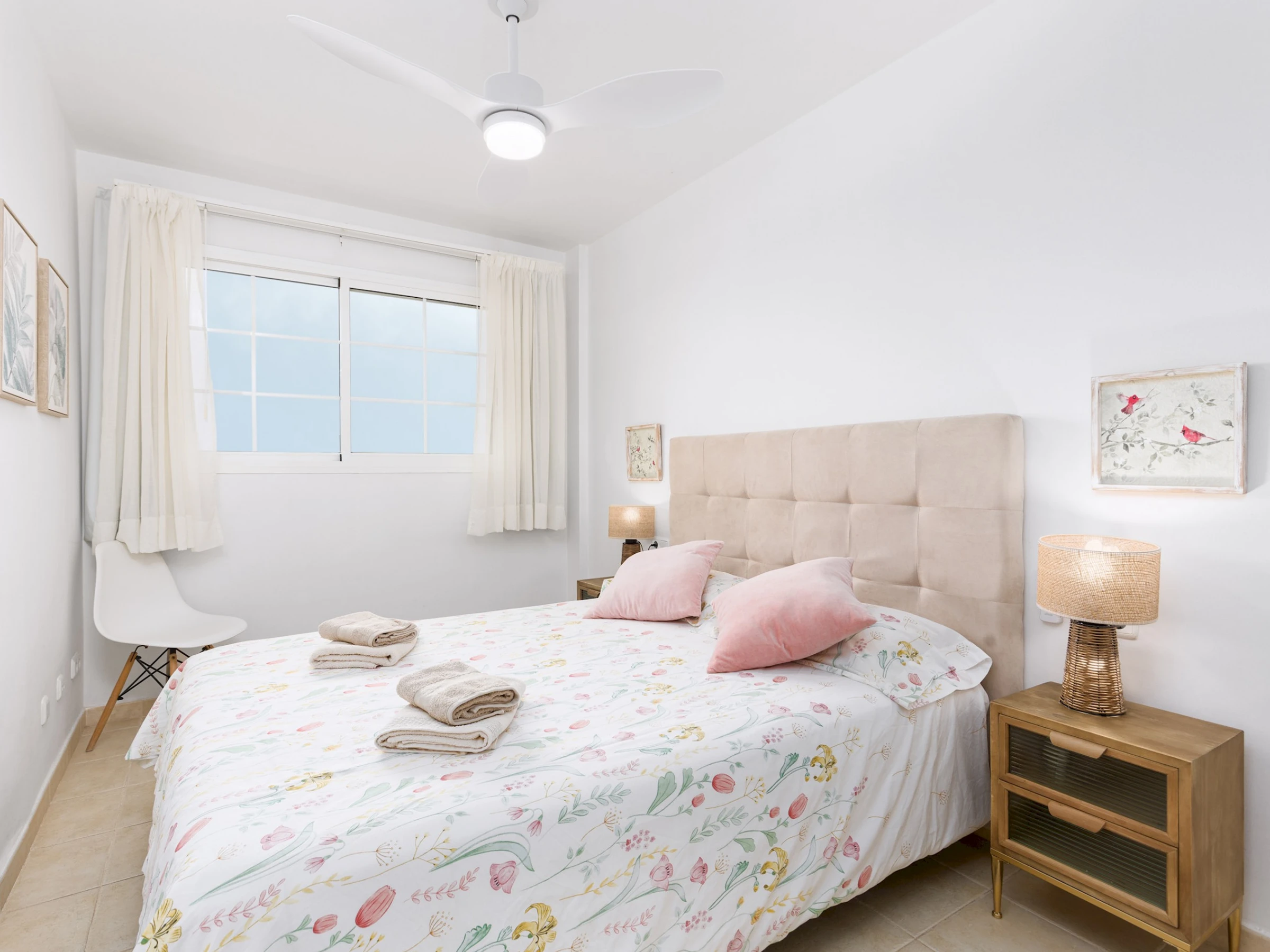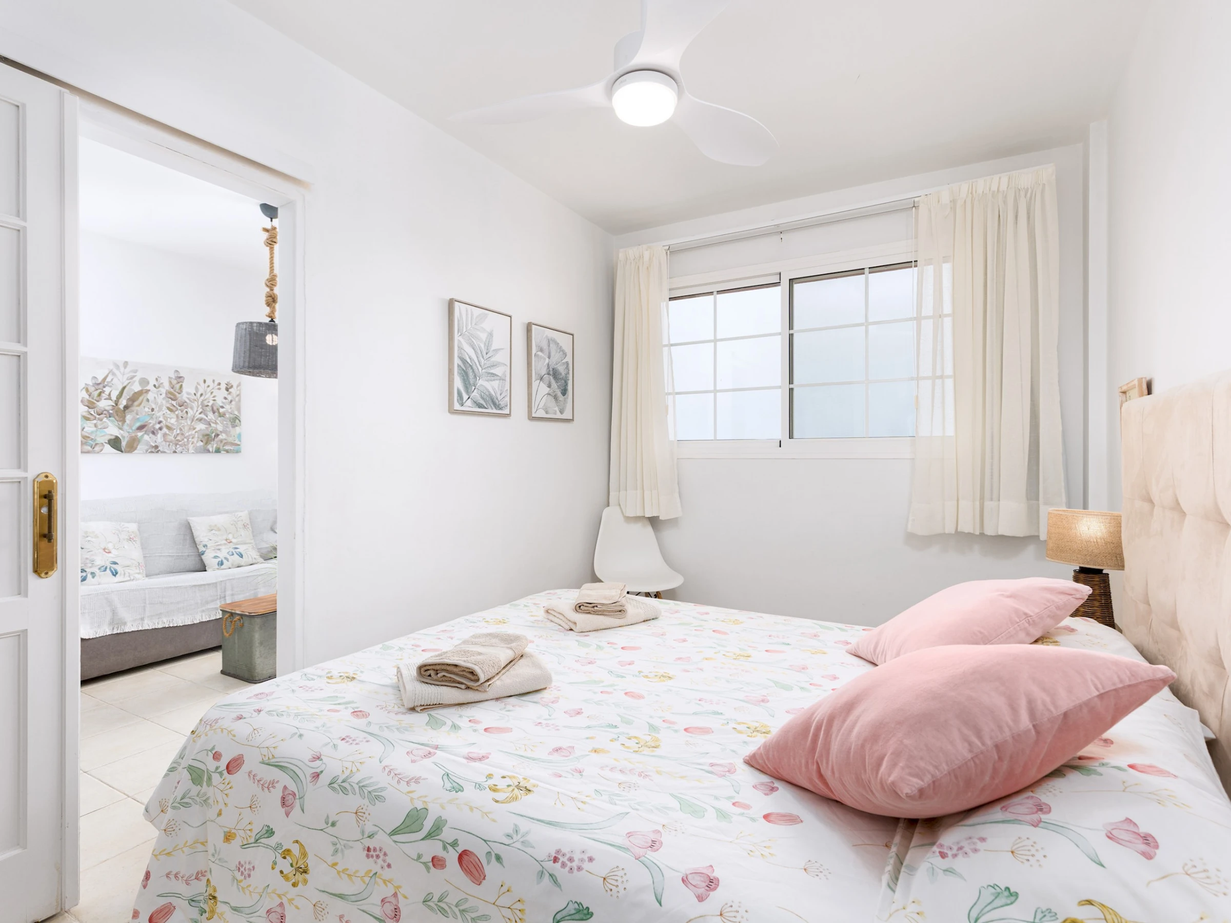 Esta acogedora y encantadora vivienda, llena de personalidad, es ideal para familias o grupos de amigos que desean desconectar y sentirse como en casa. Dispone de un dormitorio con cama doble, cocina completamente equipada integrada en el salón con un cómodo sofá y Smart TV. Desde aquí se accede a una bonita terraza, perfecta para relajarse y disfrutar de espectaculares puestas de sol con vistas al mar. Para mayor confort, también cuenta con piscina comunitaria y aparcamiento exterior. Además, ofrece conexión ADSL de 50 Mb/s.