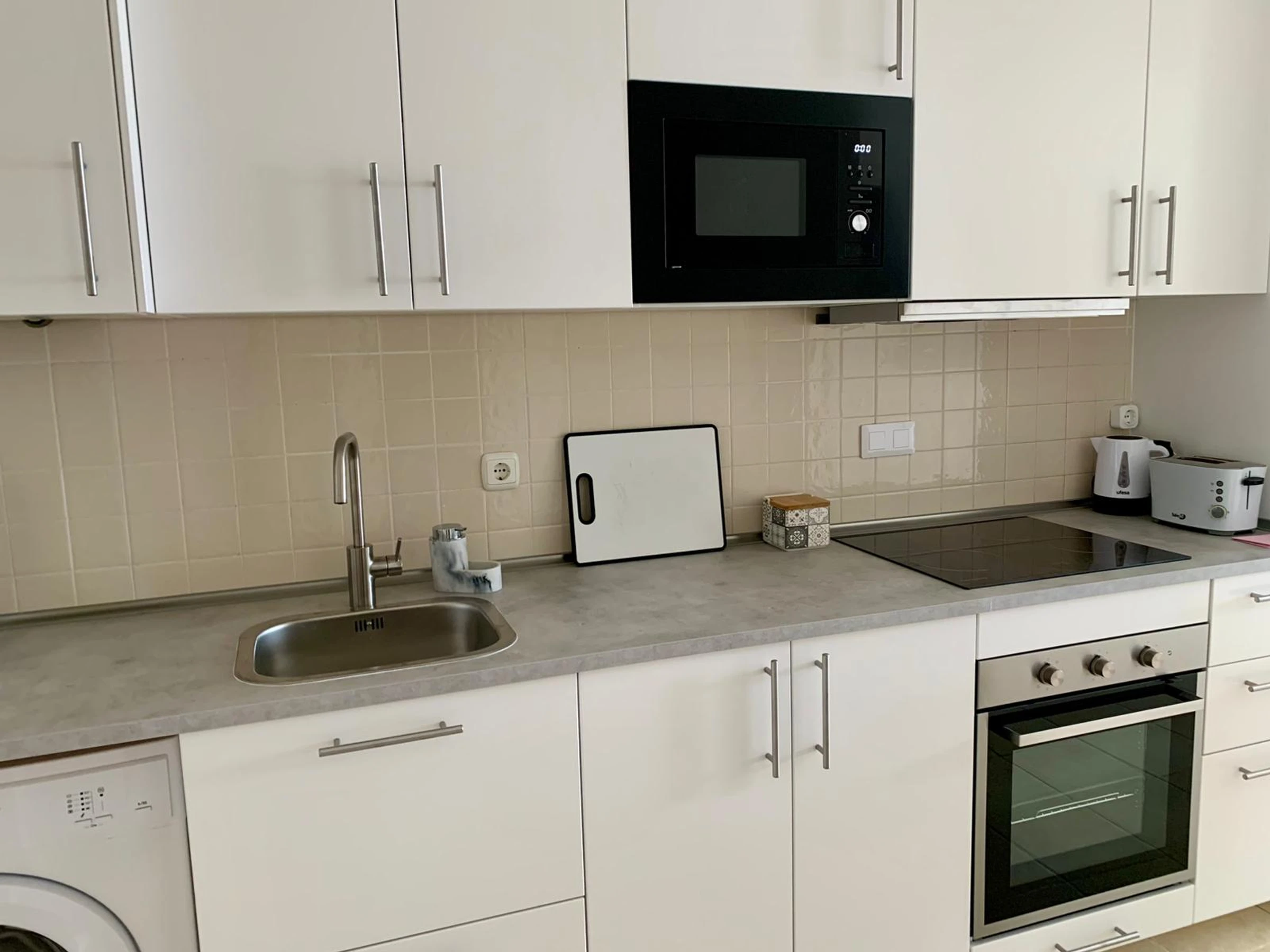 La vivienda cuenta con una cocina completamente equipada que incluye nevera, horno portátil de sobremesa, microondas, hervidor, exprimidor, tostadora y cafetera. Además, dispone de lavadora, plancha, secador de pelo y termo para el agua caliente.