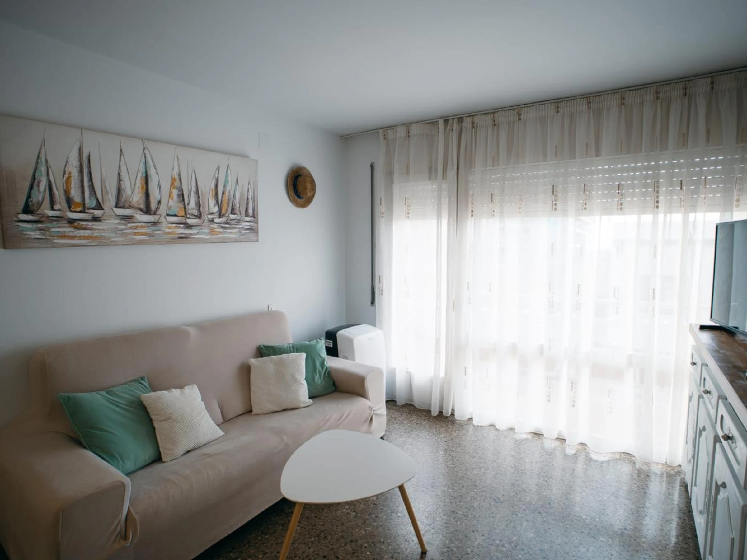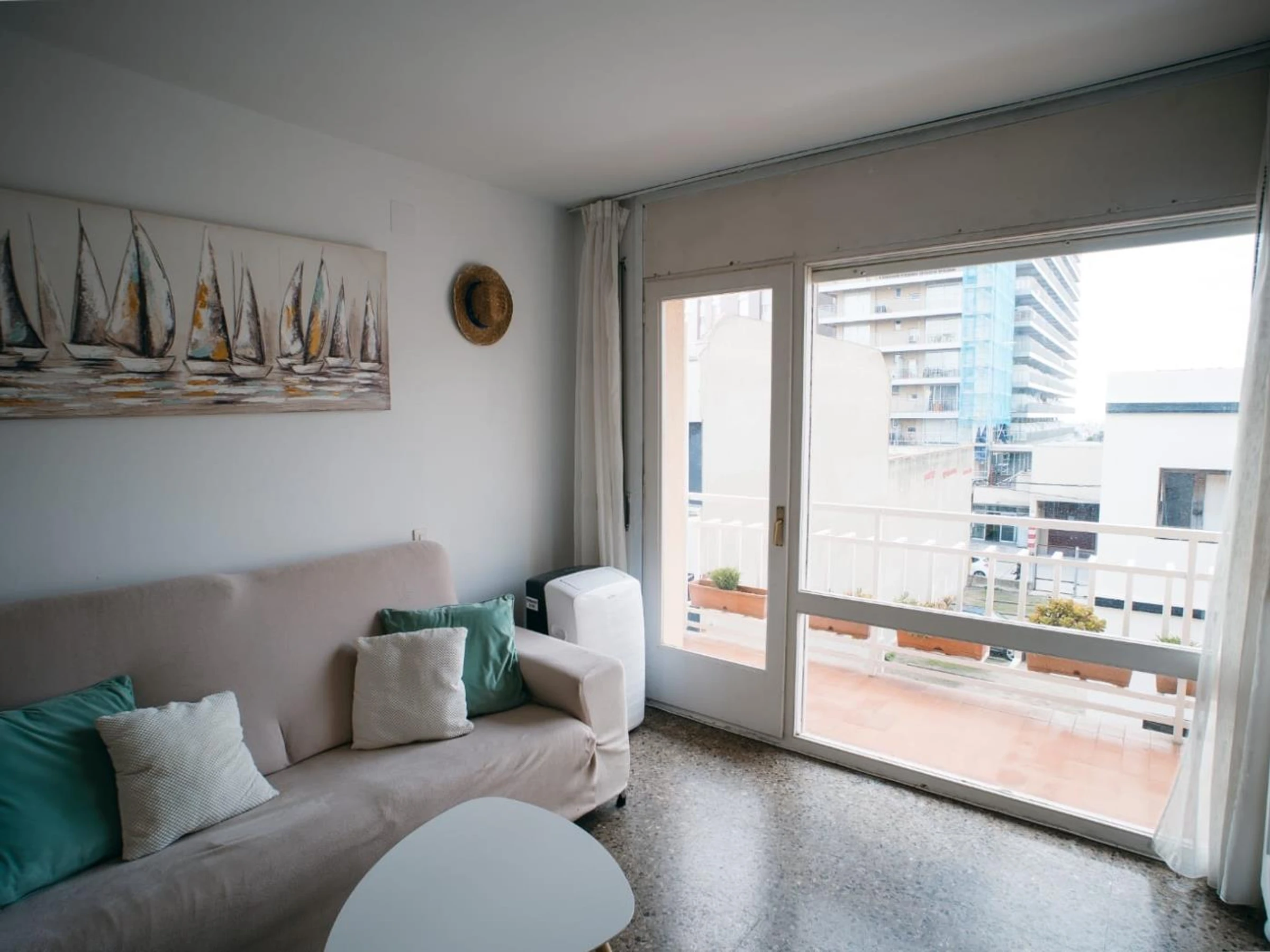 Apartamento en el centro de Palamós con una plaza de parking para un coche pequeño/medio y vista al mar desde el balcón.