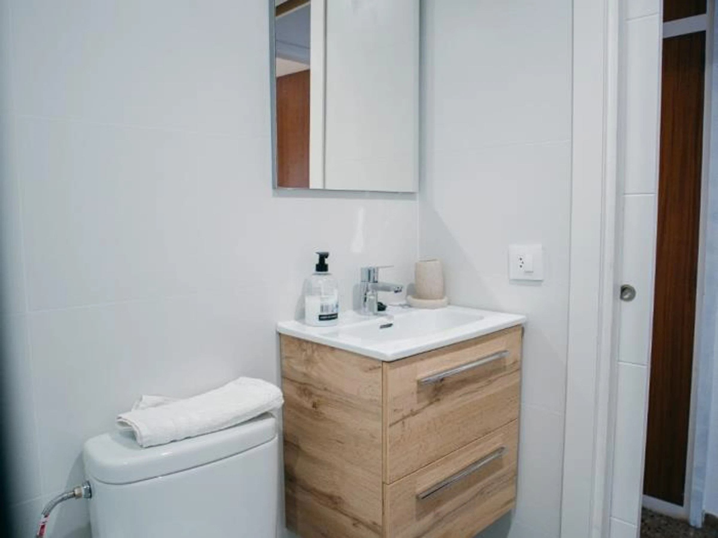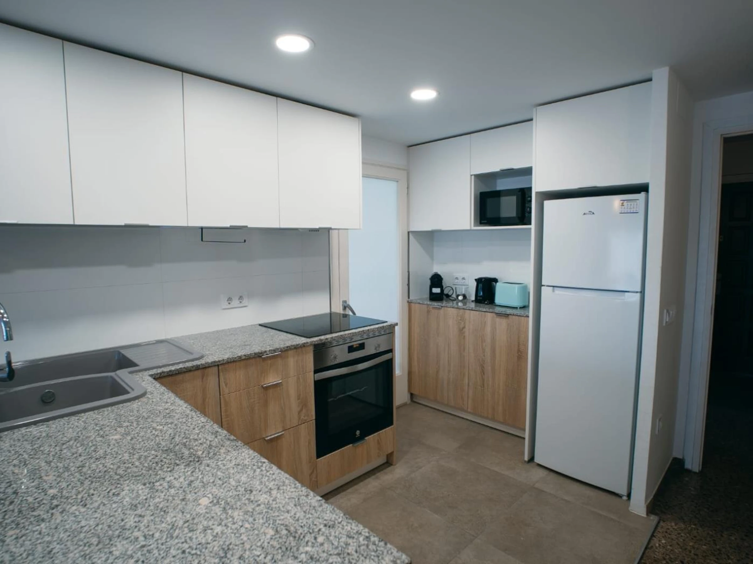 La cocina está reformada desde hace pocos meses, dispone de nevera y congelador, horno y microondas, batidora, tostadora, cafetera Nespresso, hervidor de agua. El comedor tiene una mesa para 6 personas y un sofá con Smart TV. Se puede salir al balcón desde el comedor. En cada habitación hay un ventilador.