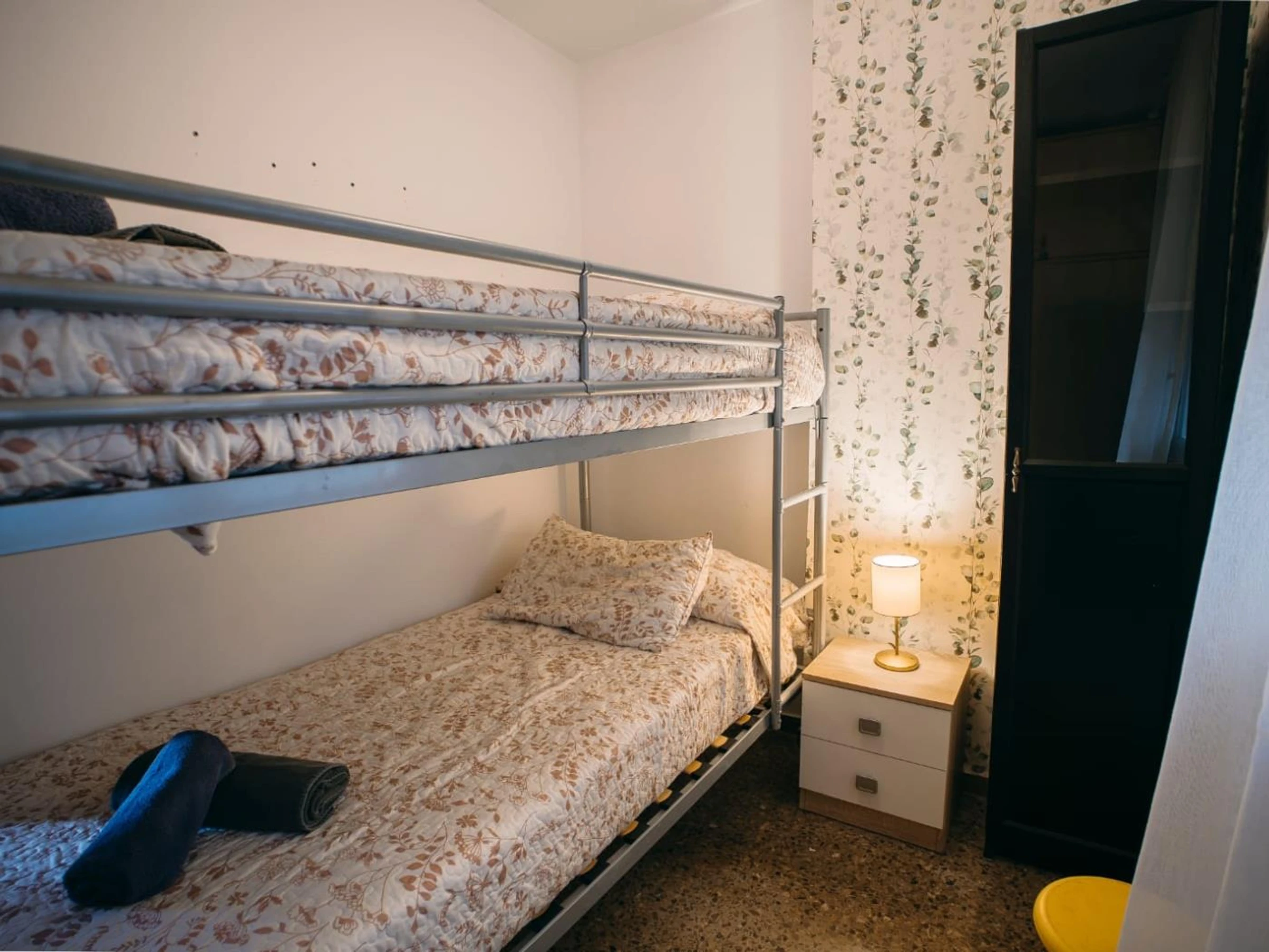 Apartamento a 5 minutos de la playa, con vistas al mar desde el balcón y desde la habitación principal. Dispone de 3 habitaciones y un baño. Hay una habitación con cama de 1'60m con ventana exterior y armario. Otra habitación con litera y armario, con ventana interior. Y una tercera habitación con cama y ventana interior. El baño dispone de bañera, secador, plancha para el cabello y un bidé incorporado en el inodoro. Hay un lavadero con la lavadora y zona para tender la ropa.