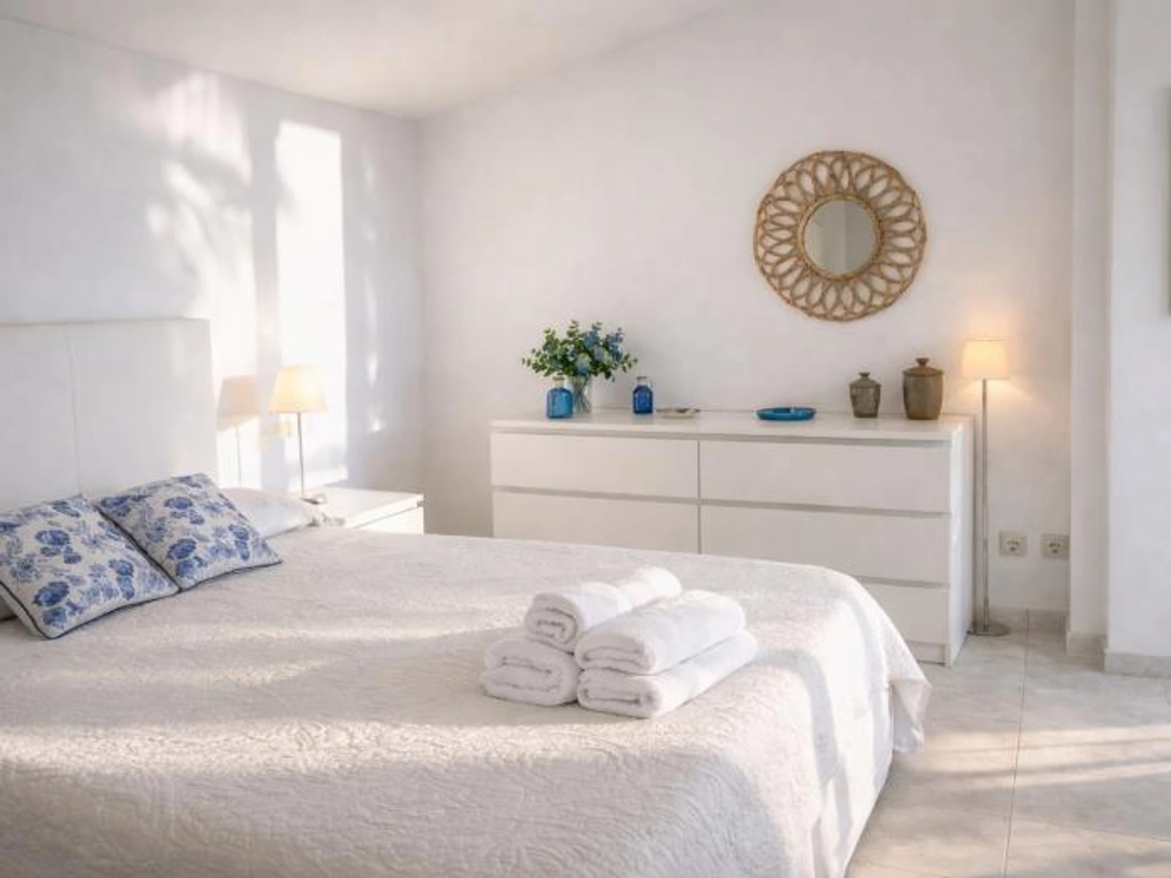 Este apartamento está pensado para que no te falte de nada: cuenta con dos dormitorios dobles, una suite principal, dos baños completos y no una, ¡sino dos terrazas! Imagina tus mañanas o atardeceres en la terraza superior, con unas vistas al mar que quitan el hipo. Además, tendrás a tu disposición una fantástica piscina comunitariarodeada de cuidadas zonas ajardinadas, y, por supuesto, aire acondicionado y calefacciónpara que disfrutes de tu estancia en cualquier época del año. Si te apetece un poco de acción, en los alrededores encontrarás pistas de tenis y pádellistas para tus partidos.