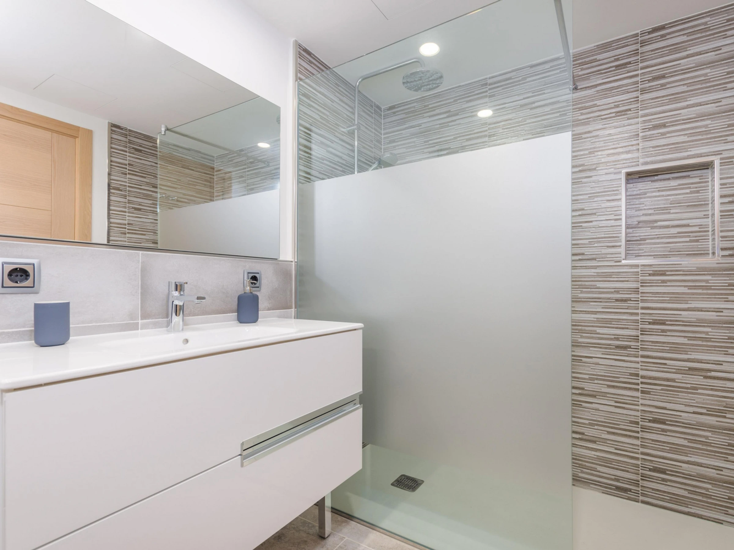El interior del apartamento desborda puro lujo y modernidad, así como mucha amplitud en todas sus estancias, especialmente en una impresionante cocina-sala-comedor. Este espacio se convierte en un lugar muy funcional para que puedan charlar o ver la televisión por satélite mientras comen o cocinan. La zona de la cocina ofrece una encimera de inducción en una fantástica isla con taburetes, así como horno, microondas y mucho más. La lavandería es independiente y ofrece una lavadora, tabla de planchar y plancha. Un bonito pasillo les conduce hacia un baño con ducha y tres dormitorios con armario, uno con cama doble y baño en-suite también con ducha, y otros dos con dos camas individuales. Hay disponibilidad para una cuna y una trona en cualquiera de ellos. En cuanto al aclimatado, toda la vivienda dispone de aire acondicionado por conducto.