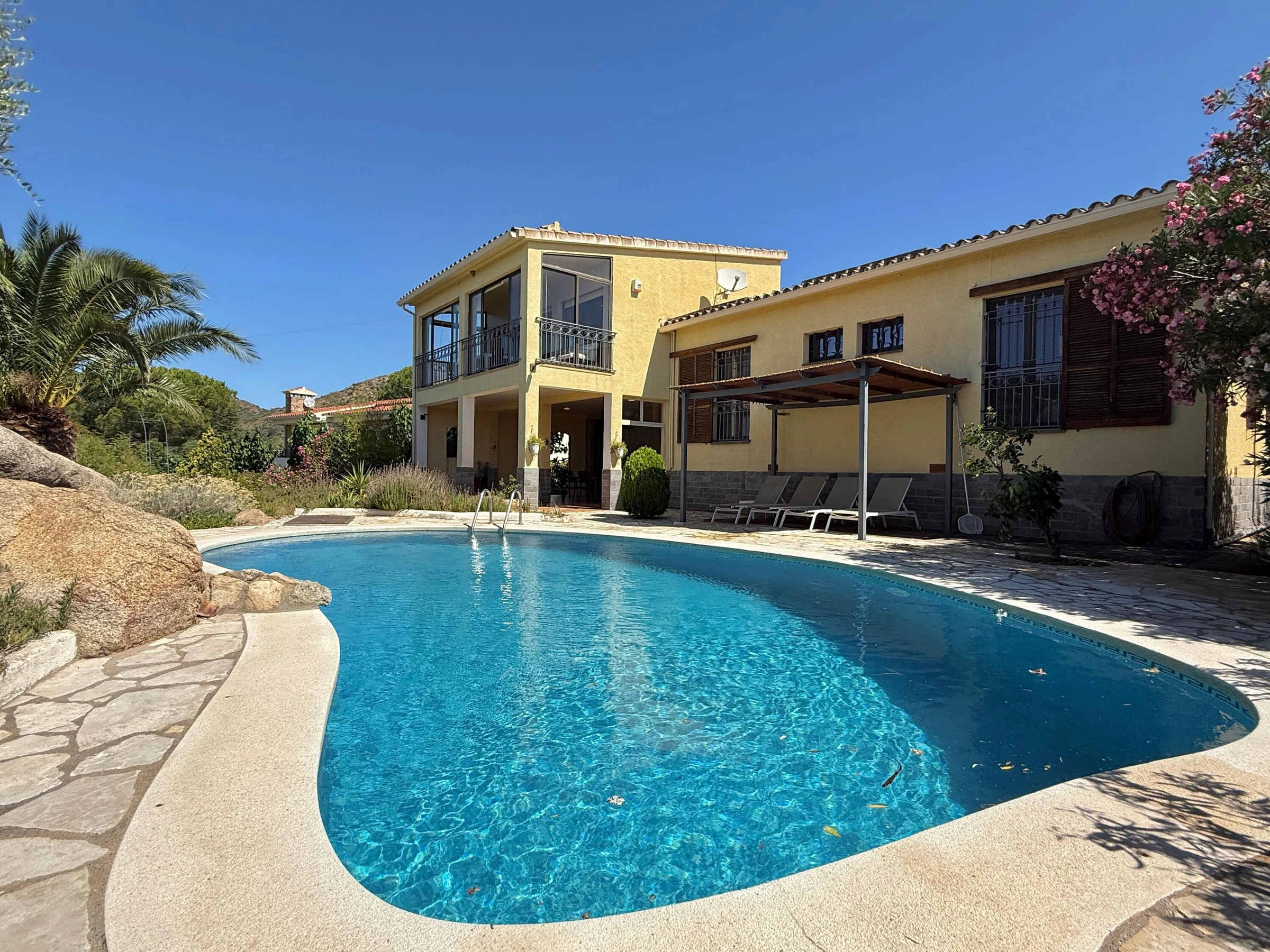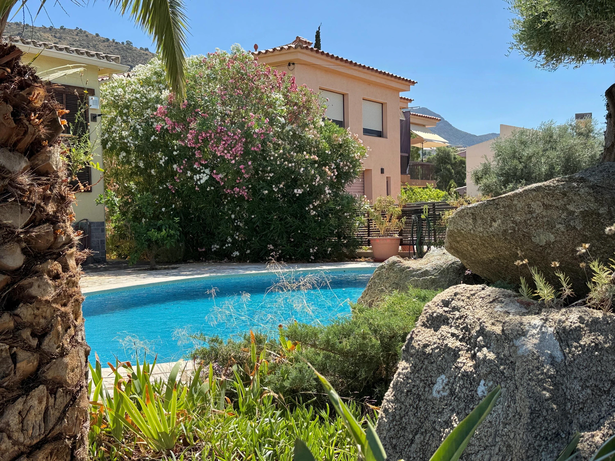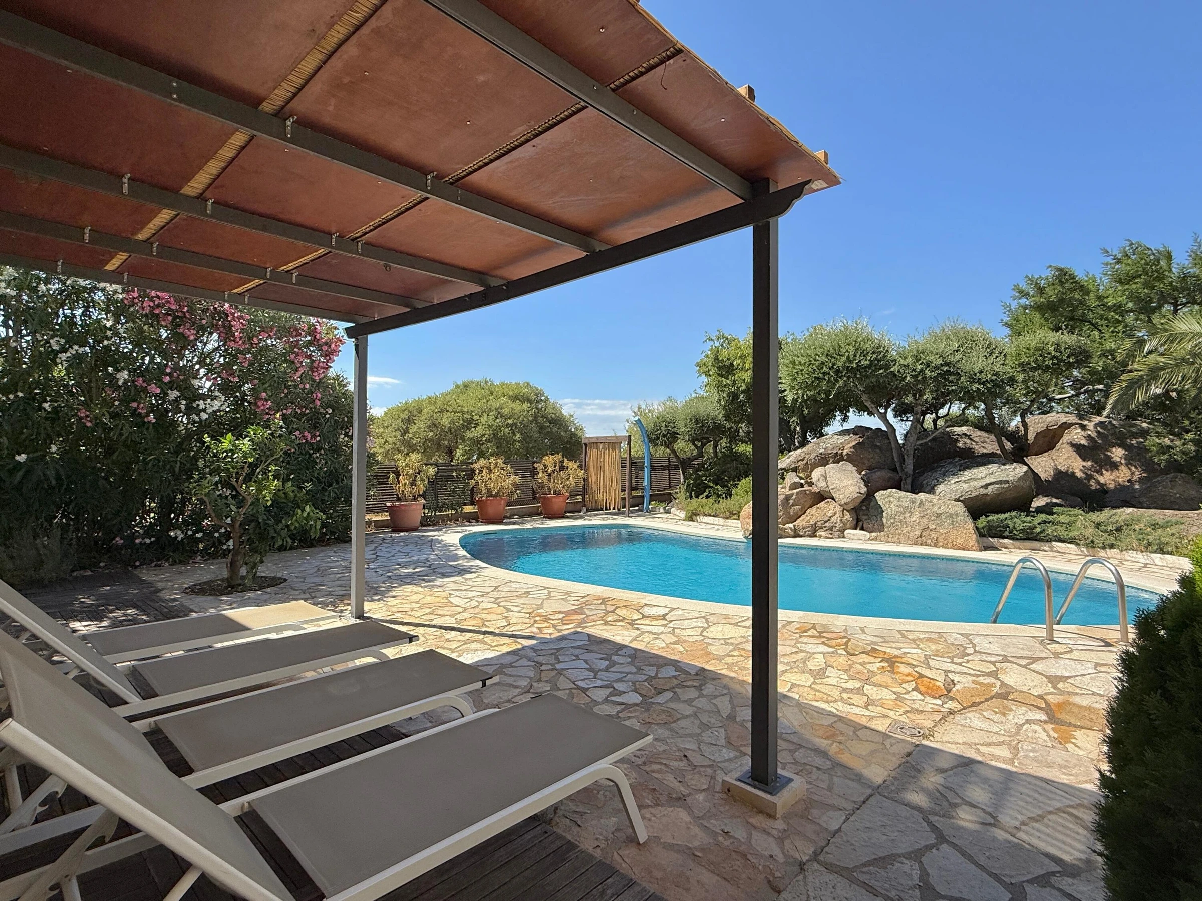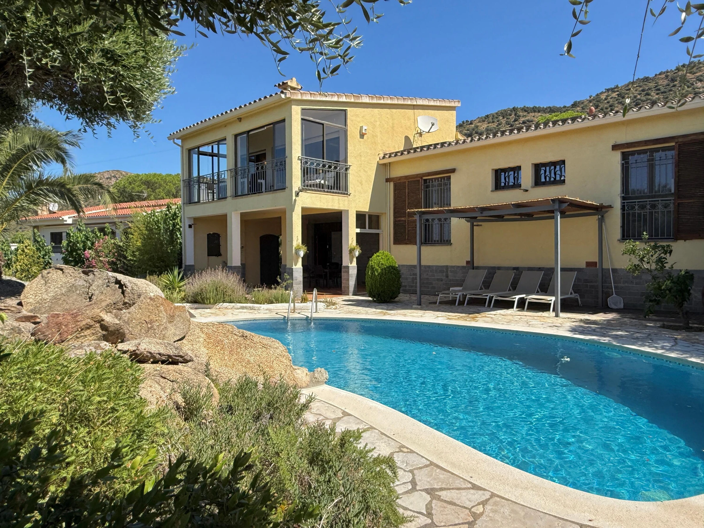 Alquiler de espaciosa casa en privilegiada zona residencial cercana a Roses y Empuriabrava Casa de amplias estancias, con bonitas vistas sobre la bahía, dispone de 1 dormitorio suite, 1 dormitorio doble y un 3er dormitorio con 2 camas individuales: ideal para familias. El salón es muy luminoso y abierto: aire acondicionado en estas estancias. Cocina, comedor y terraza quedan en un nivel algo más elevado a unos pocos peldaños. En la planta baja un gran porche con la barbacoa de obra a escasos pasos y cerca de la piscina, la combinación perfecta para pasar agradables momentos al aire libre. El jardín con su particular zona de rocas no deja a nadie indiferente y resguarda la piscina. La parcela está totalmente vallada. Las mascotas bien adiestradas son aceptadas bajo petición, siempre y cuando sean respetuosas con el interior y el exterior de la casa. Casa Mestral es acogedora y familiar. Está situada en la tranquila urbanización "Els Olivars" en Pau. A escasos minutos en coche se llega a un formidable parque acuático, a las extensas playas de arena, también a las hermosas calas, típicas de la Costa Brava, el bullicio, los comercios y restaurantes, casi todo lo que se necesita para unas vacaciones [hidden] SE ADMITEN GRUPOS DE JOVENES MENORES DE 25 AÑOS Pau está situado en el noreste de España, en Cataluña, a unos 5 km de Roses y 7 km de la playa más cercana. En el municipio de Pau se cultivan aceitunas y vino. Las uvas y las aceitunas se procesan en la cooperativa local de "Empordàlia". El vino se vende bajo la Denominación de Origen Empordà Costa Brava y la marca "Sinols". El aceite de oliva se vende bajo el nombre de "Oli de Pau". Descanso y relajación están garantizados. La oferta deportiva incluye no sólo todos los deportes acuáticos, también senderismo, ciclismo, tenis o paracaidismo. Los campos de golf están a unos 20-30 minutos. . • Restaurantes de todos los precios y categorías • Una gran variedad de • 3 reservas naturales: Cap de Creus, los Aiguamolls, Albera, ideal para largas caminatas y paseos en bicicleta. • Localidades muy interesantes (Roses, Cadaqués, Empuriabrava, Peralada, Figueres, el monasterio de San Pere de Rhodes, las ruinas de Empúries ..) • Cualquier persona que esté interesado en el arte, la cultura y / o de la historia, debería visitar la casa y el Museo de Dalí, los diversos conciertos de verano en la ciudadela de Rosas y en Perelada, los pueblos medievales de Pals y Castelló d'Empúries. • Un viaje de un día a la capital de la provincia de Girona con el impresionante barrio judío y la Catedral o a Barcelona (150km) para un día inolvidable. IMPORTANTE: Los viajeros deben contar con su seguro de responsabilidad civil, robo de sus efectos personales y otros posibles accidentes. Se aceptan MASCOTAS bajo petición, ver suplemento Contactar para más detalles y aceptación de mascotas. TASA TURÍSTICA: no incluida en el alquiler, a pagar a la llegada según tarifa vigente, consúltenos. CONSUMO DE ELECTRICIDAD: el alquiler incluye un paquete de consumo de electricidad por día. Si se supera el precio fijado, los kw excedidos se facturarán al precio de kw en el momento de la estancia. Con NRA: ESFCTU00001700800022942100000000000000[hidden]1