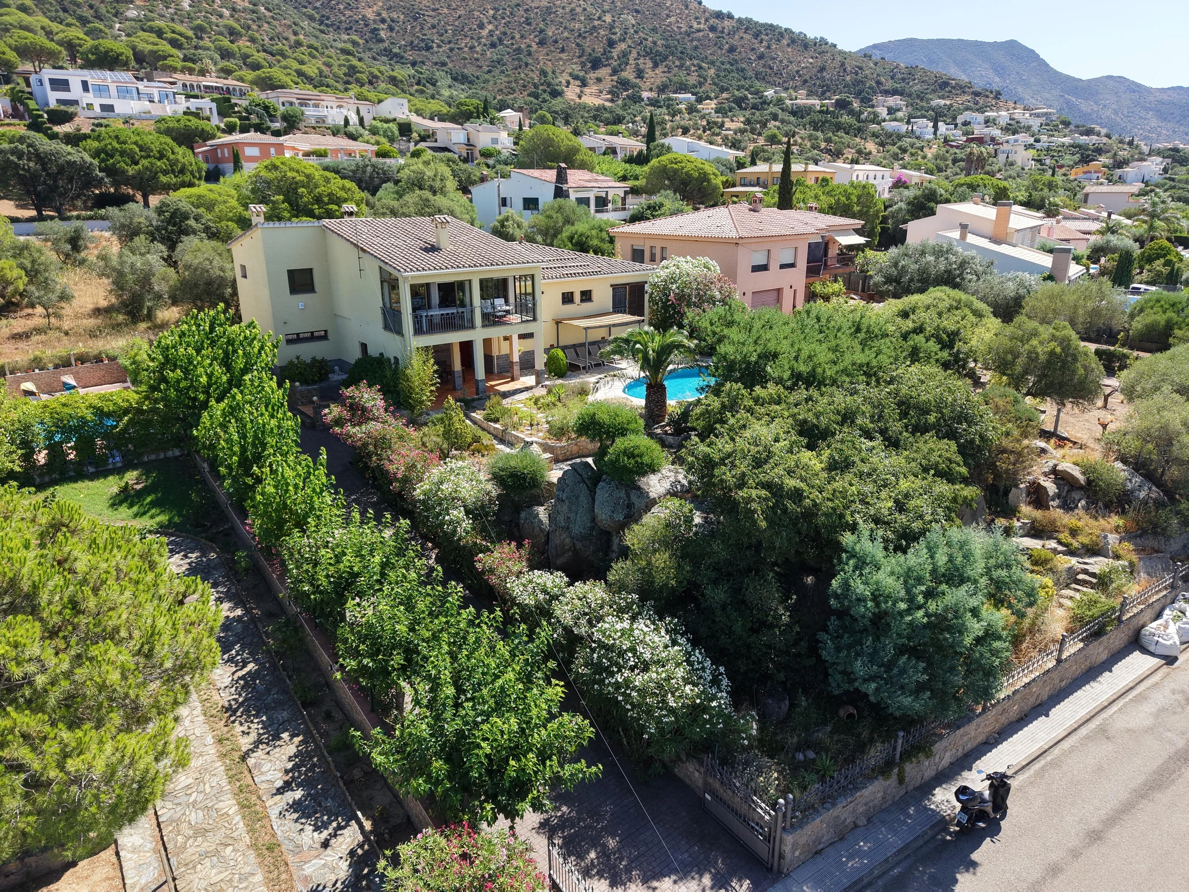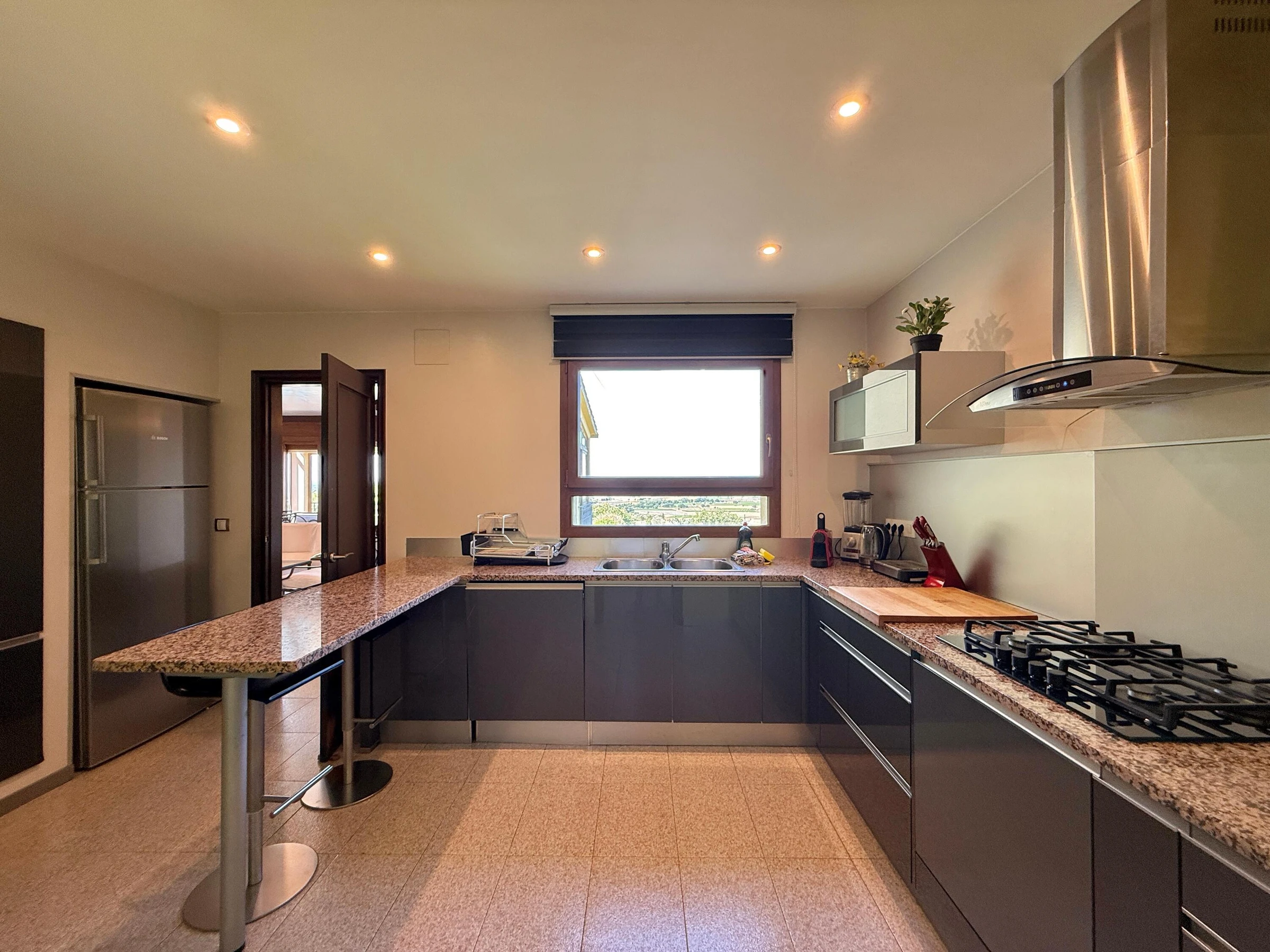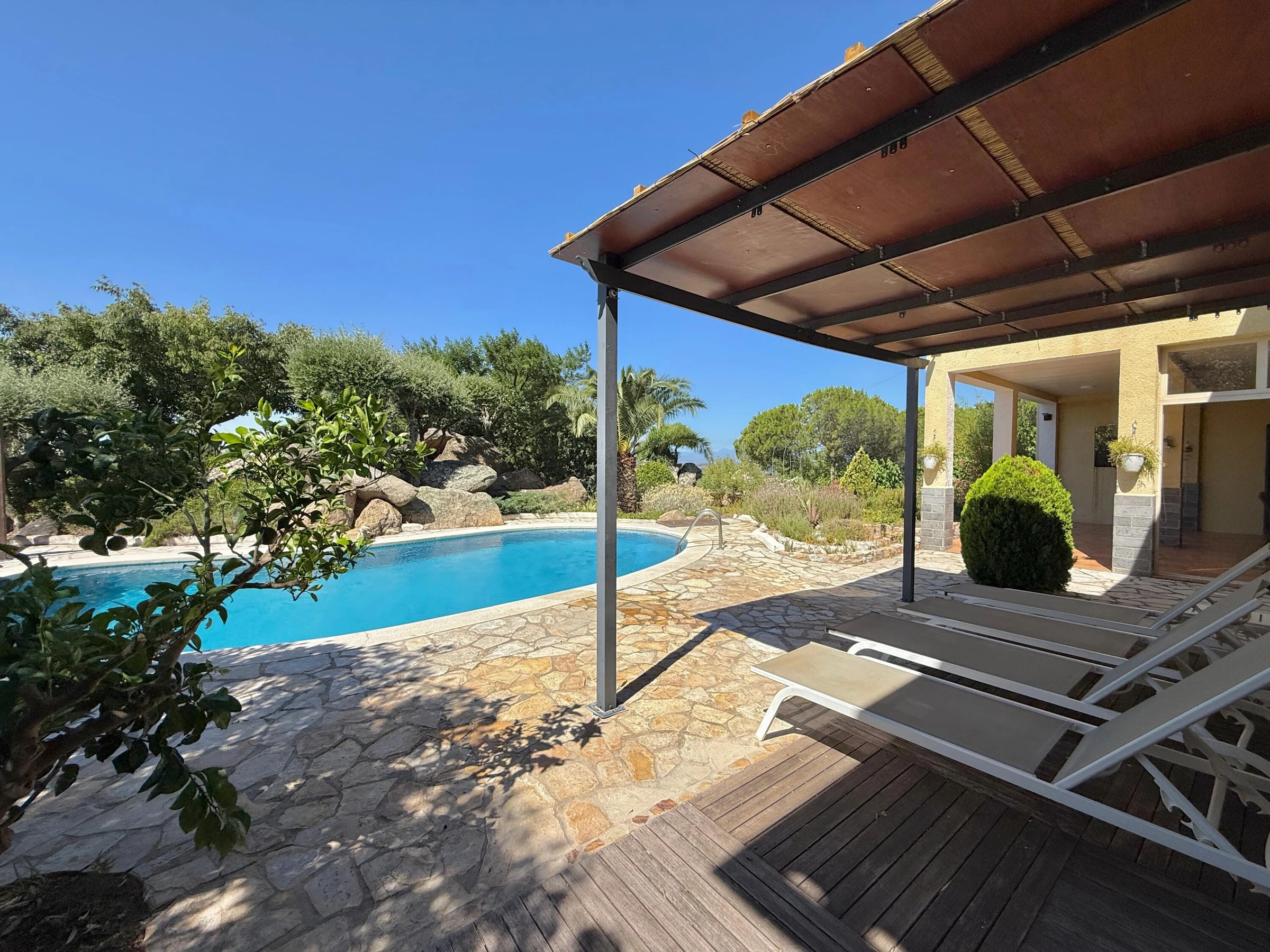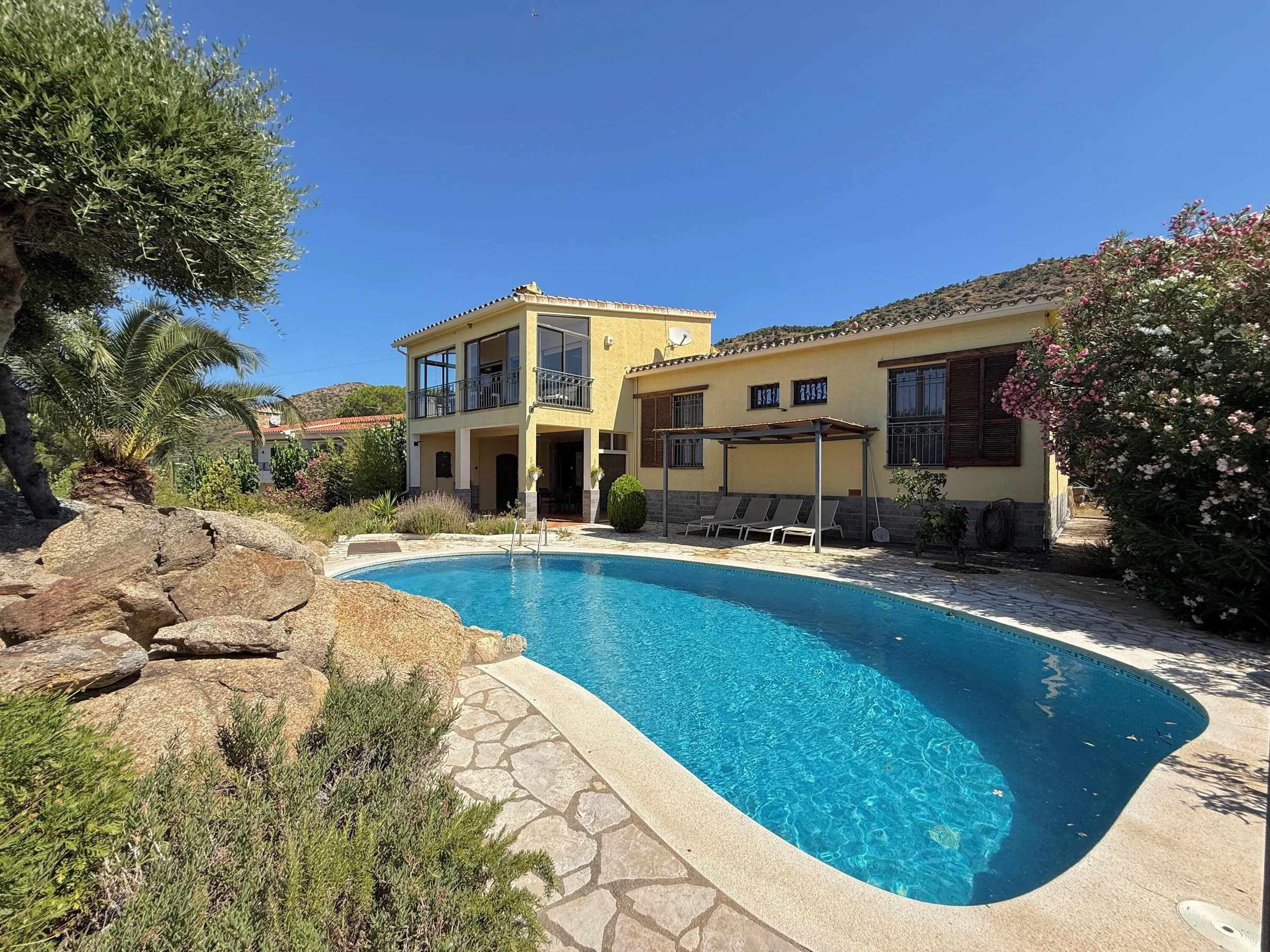 Alquiler de espaciosa casa en privilegiada zona residencial cercana a Roses y Empuriabrava Casa de amplias estancias, con bonitas vistas sobre la bahía, dispone de 1 dormitorio suite, 1 dormitorio doble y un 3er dormitorio con 2 camas individuales: ideal para familias. El salón es muy luminoso y abierto: aire acondicionado en estas estancias. Cocina, comedor y terraza quedan en un nivel algo más elevado a unos pocos peldaños. En la planta baja un gran porche con la barbacoa de obra a escasos pasos y cerca de la piscina, la combinación perfecta para pasar agradables momentos al aire libre. El jardín con su particular zona de rocas no deja a nadie indiferente y resguarda la piscina. La parcela está totalmente vallada. Las mascotas bien adiestradas son aceptadas bajo petición, siempre y cuando sean respetuosas con el interior y el exterior de la casa. Casa Mestral es acogedora y familiar. Está situada en la tranquila urbanización "Els Olivars" en Pau. A escasos minutos en coche se llega a un formidable parque acuático, a las extensas playas de arena, también a las hermosas calas, típicas de la Costa Brava, el bullicio, los comercios y restaurantes, casi todo lo que se necesita para unas vacaciones [hidden] SE ADMITEN GRUPOS DE JOVENES MENORES DE 25 AÑOS Pau está situado en el noreste de España, en Cataluña, a unos 5 km de Roses y 7 km de la playa más cercana. En el municipio de Pau se cultivan aceitunas y vino. Las uvas y las aceitunas se procesan en la cooperativa local de "Empordàlia". El vino se vende bajo la Denominación de Origen Empordà Costa Brava y la marca "Sinols". El aceite de oliva se vende bajo el nombre de "Oli de Pau". Descanso y relajación están garantizados. La oferta deportiva incluye no sólo todos los deportes acuáticos, también senderismo, ciclismo, tenis o paracaidismo. Los campos de golf están a unos 20-30 minutos. . • Restaurantes de todos los precios y categorías • Una gran variedad de • 3 reservas naturales: Cap de Creus, los Aiguamolls, Albera, ideal para largas caminatas y paseos en bicicleta. • Localidades muy interesantes (Roses, Cadaqués, Empuriabrava, Peralada, Figueres, el monasterio de San Pere de Rhodes, las ruinas de Empúries ..) • Cualquier persona que esté interesado en el arte, la cultura y / o de la historia, debería visitar la casa y el Museo de Dalí, los diversos conciertos de verano en la ciudadela de Rosas y en Perelada, los pueblos medievales de Pals y Castelló d'Empúries. • Un viaje de un día a la capital de la provincia de Girona con el impresionante barrio judío y la Catedral o a Barcelona (150km) para un día inolvidable. IMPORTANTE: Los viajeros deben contar con su seguro de responsabilidad civil, robo de sus efectos personales y otros posibles accidentes. Se aceptan MASCOTAS bajo petición, ver suplemento Contactar para más detalles y aceptación de mascotas. TASA TURÍSTICA: no incluida en el alquiler, a pagar a la llegada según tarifa vigente, consúltenos. CONSUMO DE ELECTRICIDAD: el alquiler incluye un paquete de consumo de electricidad por día. Si se supera el precio fijado, los kw excedidos se facturarán al precio de kw en el momento de la estancia. Con NRA: ESFCTU00001700800022942100000000000000[hidden]1