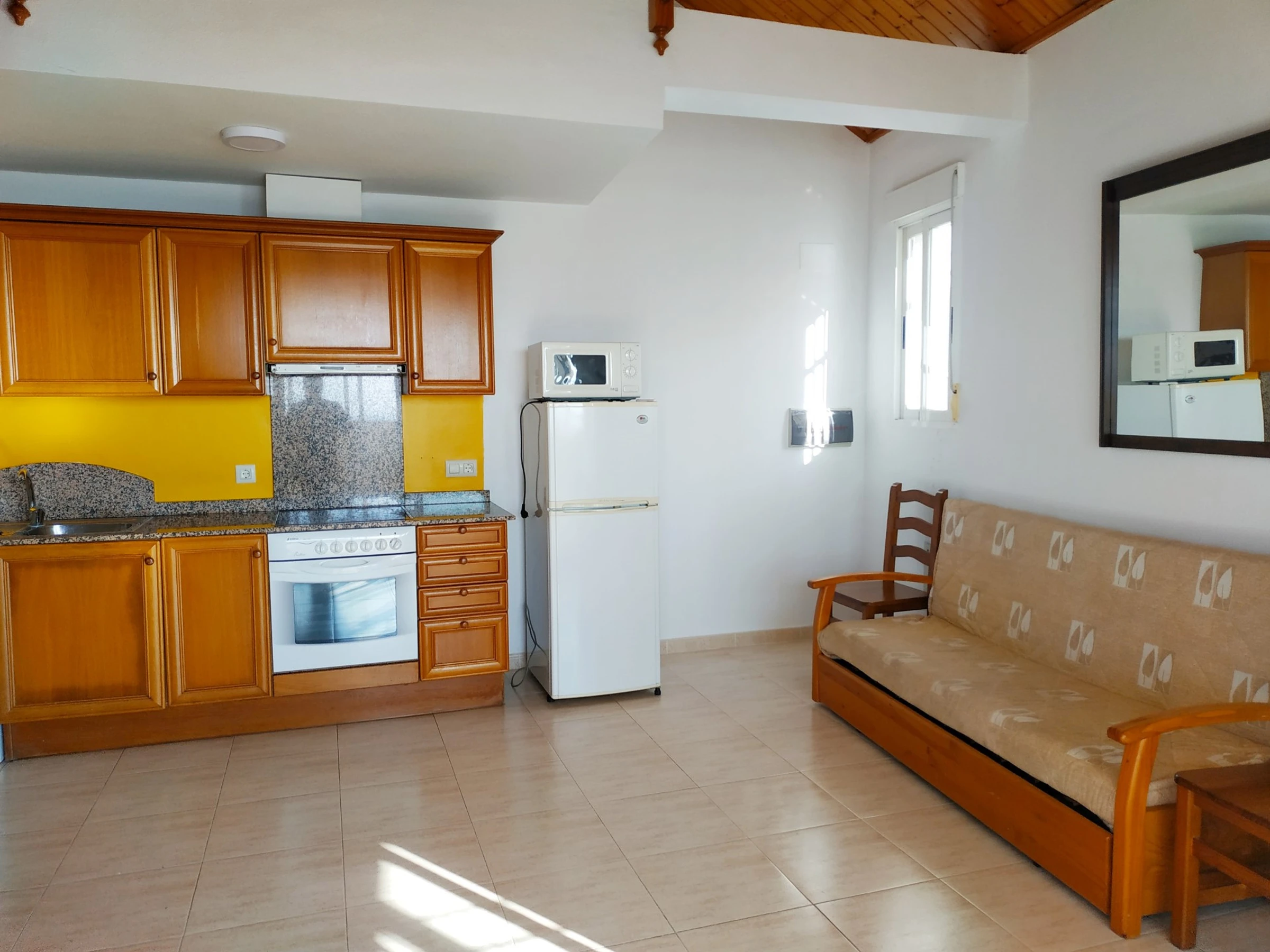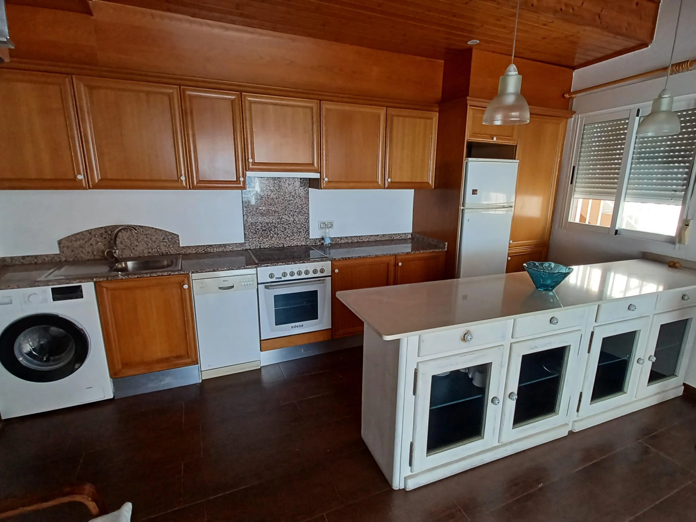 Cuentan con dos dormitorios equipados con una cama doble y dos camas individuales, ideal para grupos o familias. Dispone de dos baños, uno con ducha y otro con bañera, facilitando la convivencia durante tu estancia. La cocina americana está completamente equipada con electrodomésticos como nevera, lavadora, horno, microondas, cafetera y lavavajillas.