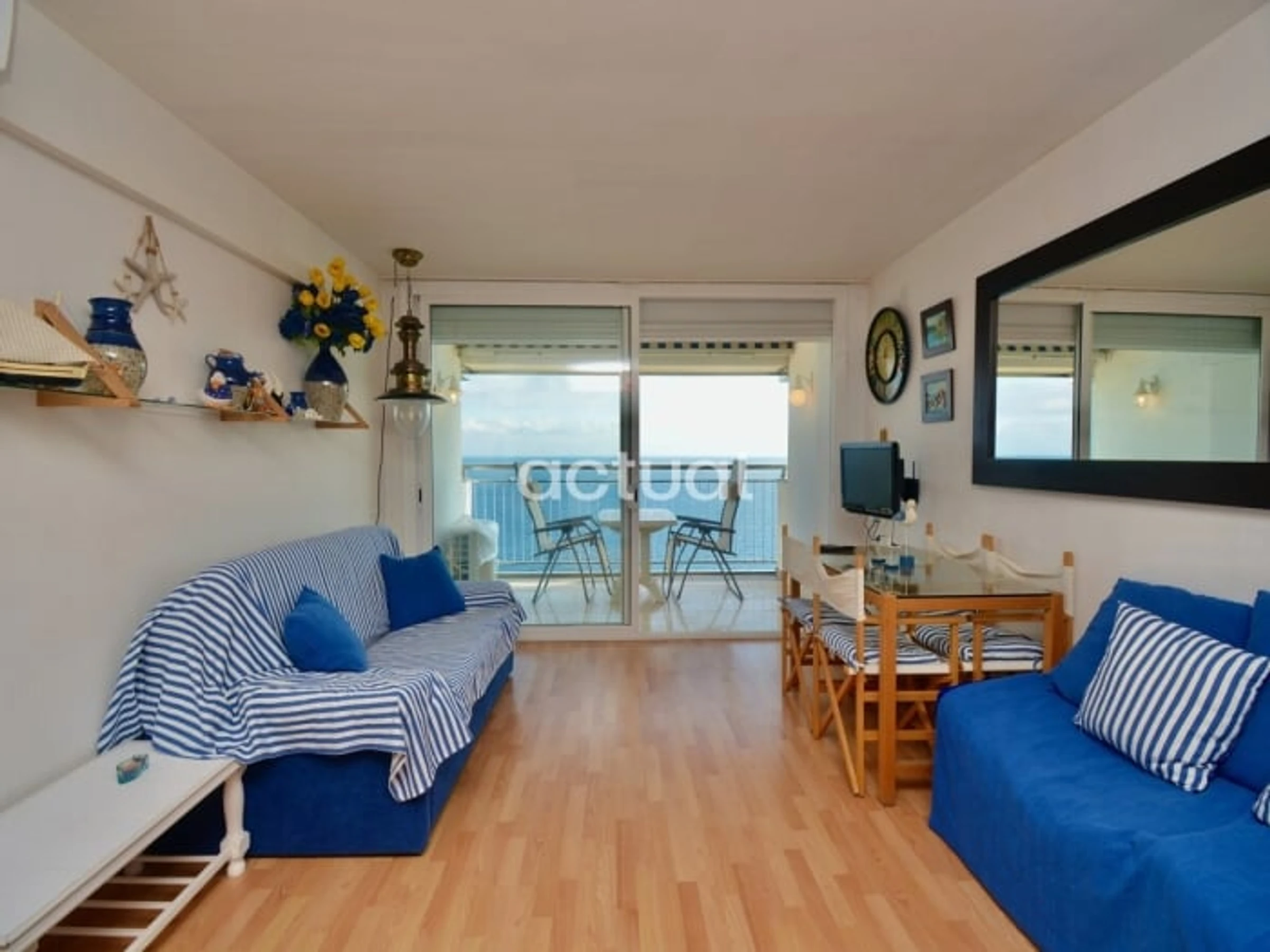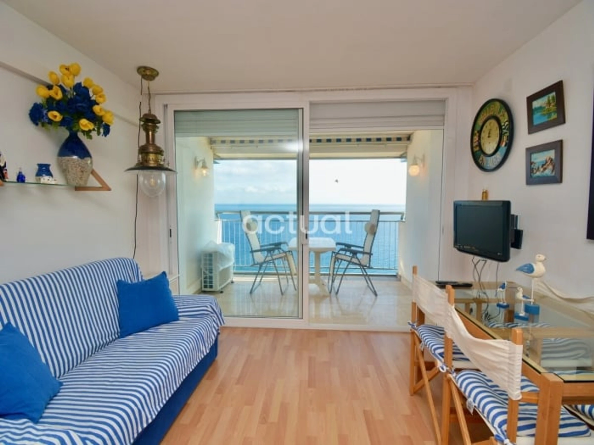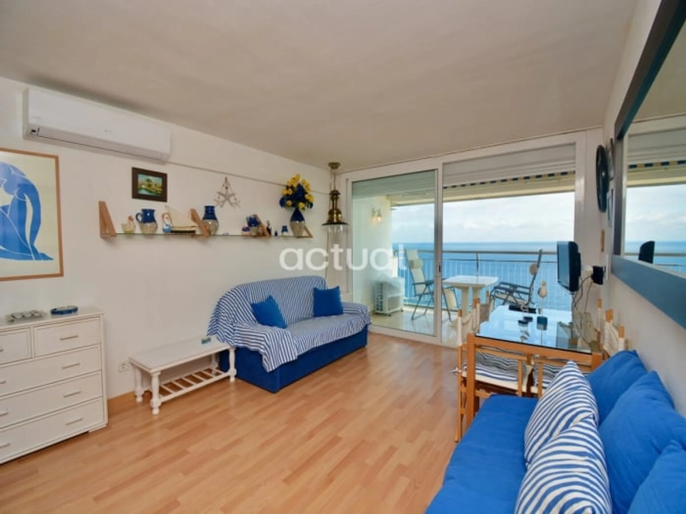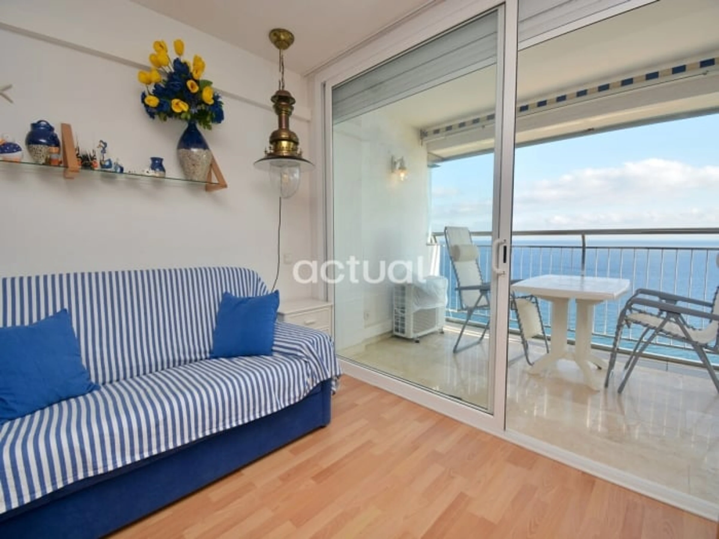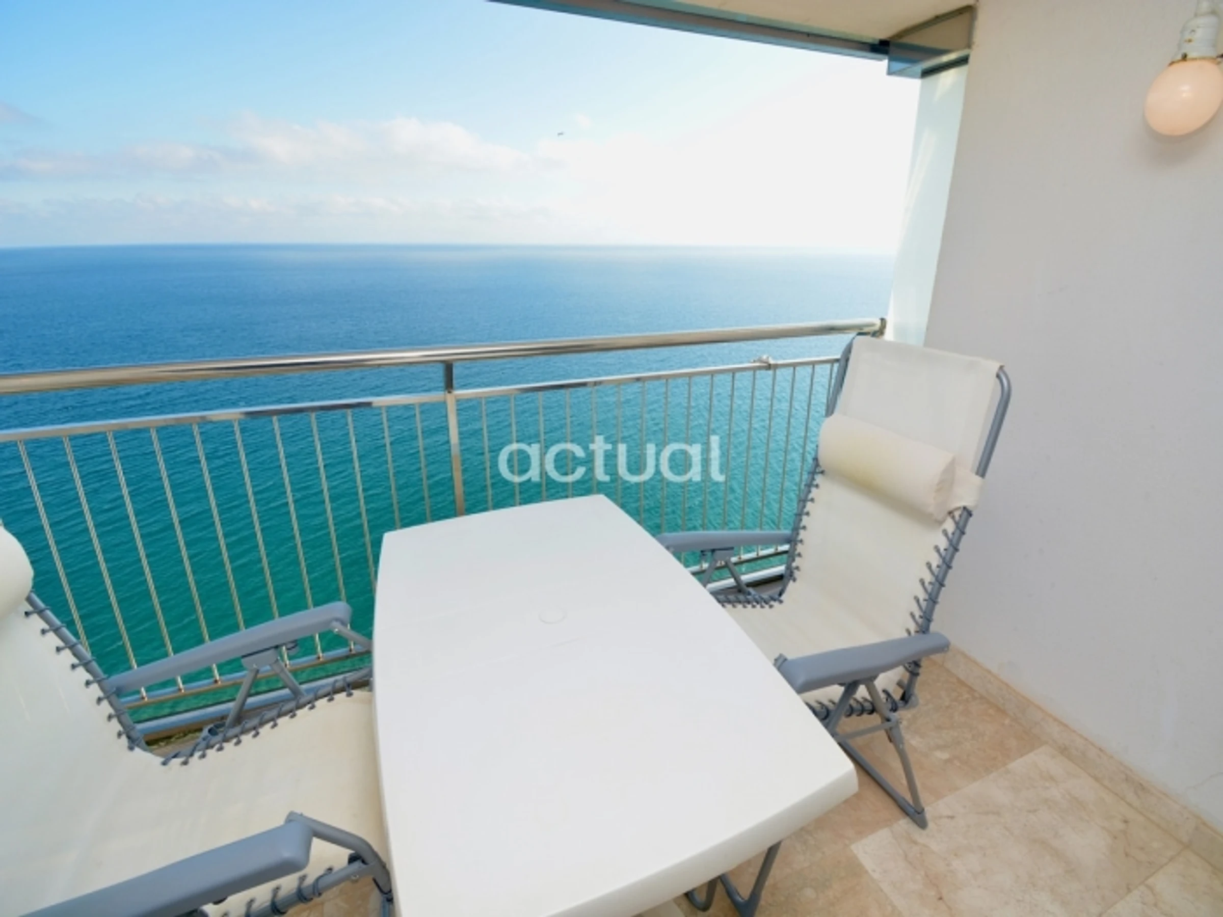 Estudio situado en el edificio Elypalace en la playa. Compuesto por 1 baño, cocina, salón-habitación con salida a la terraza y vistas frontales al mar. 18ª planta con ascensor. Semi-renovado. Cuenta con 1 sofá-cama, 1 plegatín, ducha, vitrocerámica, microondas, lavadora y TV. WIFI comunitario. Aire acondicionado (opcional).