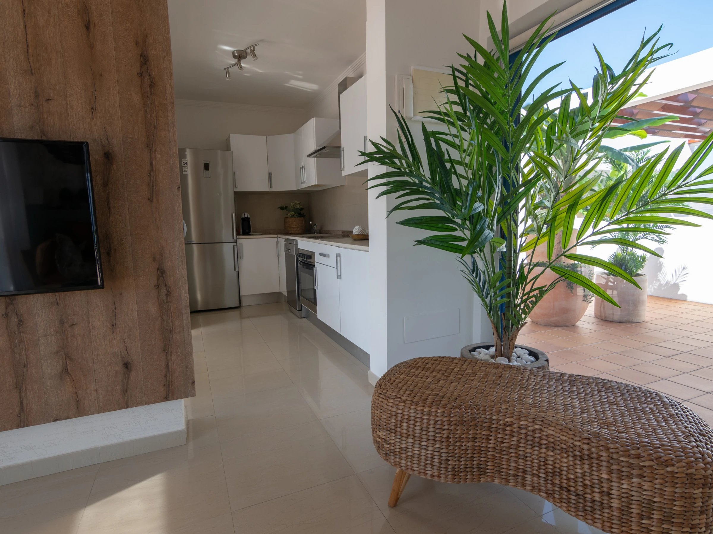 Consta de 2 dormitorios muy acogedores y 2 baños; el dormitorio principal con cama de matrimonio de 1.50 x 1.90 y baño en suite y un segundo dormitorio con 2 camas individuales. Salón comedor muy luminoso gracias a los grandes ventanales que tiene y con acceso directo a la zona exterior. Cocina completamente equipada para que tengas todo lo necesario para disfrutar de ella con los tuyos.