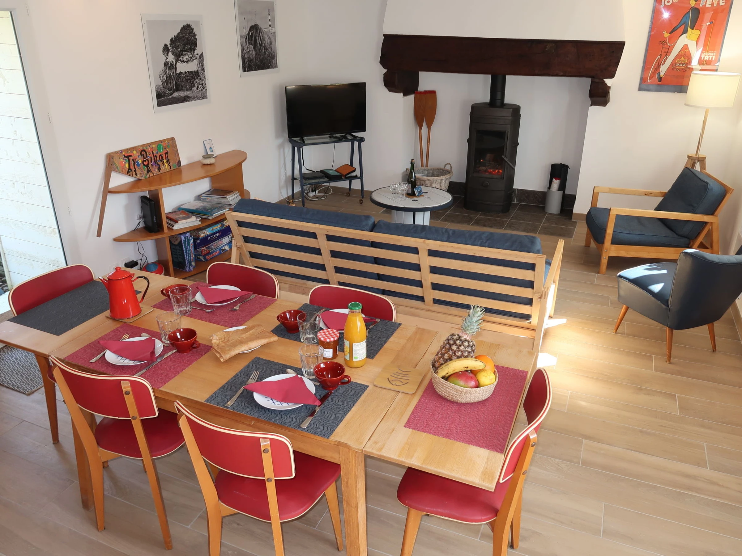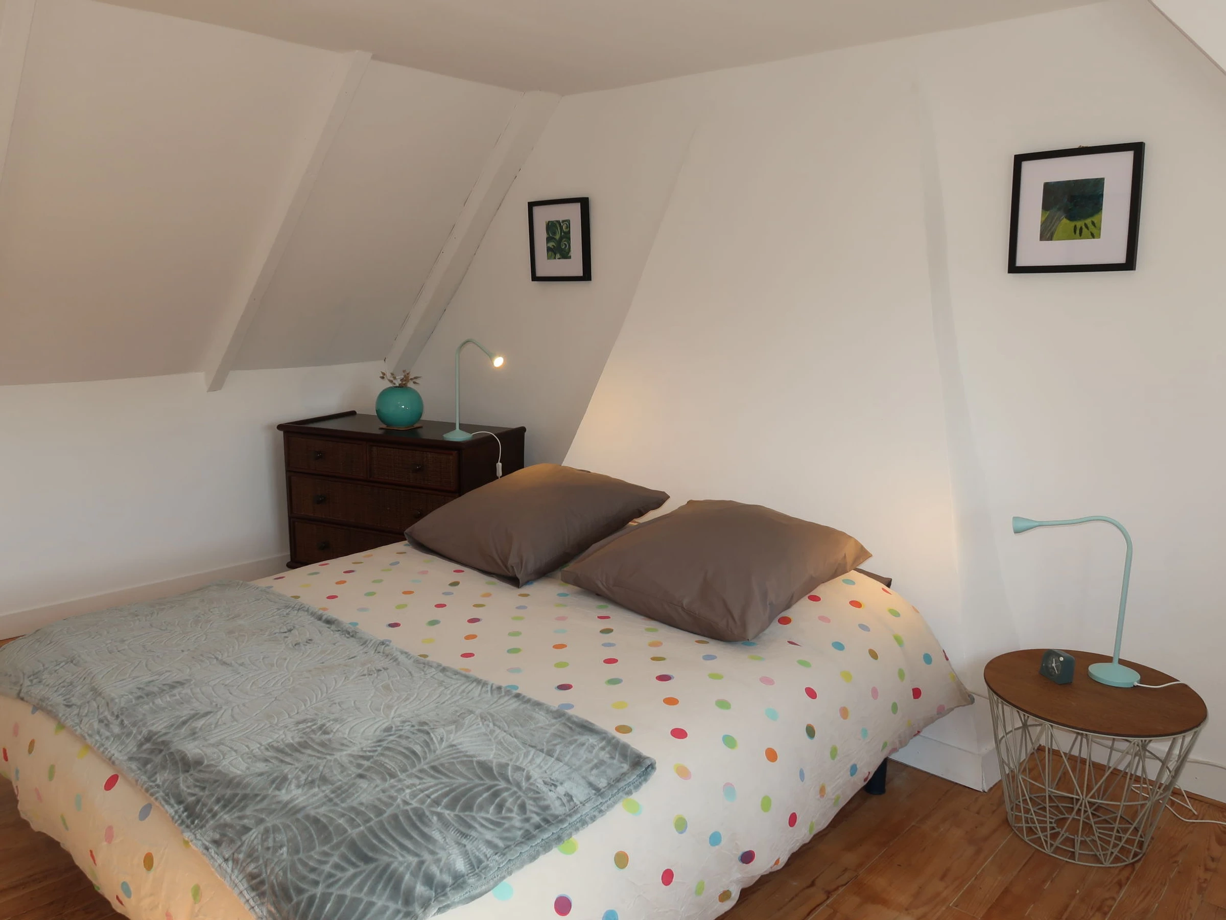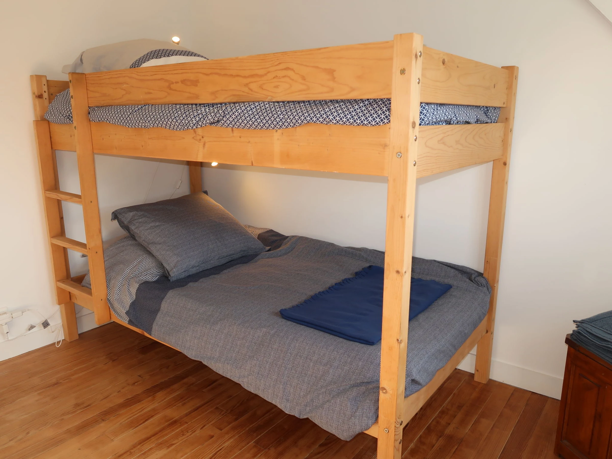 "Ty Bihan", casa 4 estancias 75 m2 en 2 plantas. Con mobiliario bonito: salón-comedor abierto con chimenea, rincón-comedor y TV (pantalla plana), DVD. Salida al jardín. Cocina abierta (horno, lavavajillas, 3 placas de vitrocerámica, tostadora, hervidor de agua eléctrico, microondas, congelador, cafetera eléctrica, Cápsulas de café (Nespresso) extra, horno Raclette). Ducha/WC. Calefacción eléctrica. Planta superior: 1 dorm. con 1 cama de matrimonio (160 cm, 200 cm de longitud). 1 dorm. con 1 cama de matrimonio (140 cm, 190 cm de longitud). 1 dorm. con 1 x 2 literas (90 cm, 190 cm de longitud). Suelo de parquet. Muebles de terraza, barbacoa, tumbonas (2). El alojamiento dispone de: lavadora, plancha, trona, cuna hasta 2 años, secador de pelo. Internet (Wifi). A tener en cuenta: casa para no fumadores. Detector de humo. [hidden]